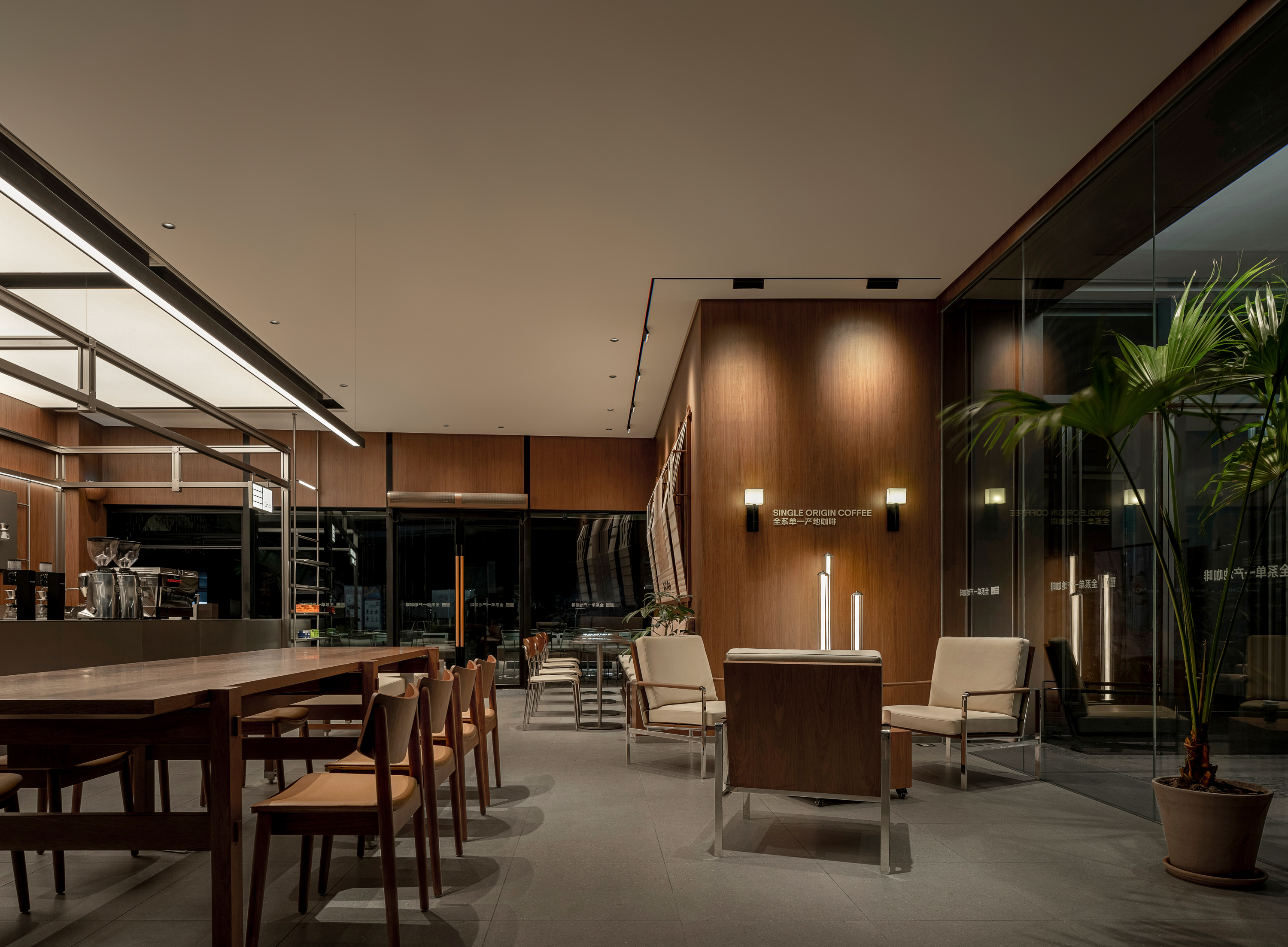 디자이너는 바 카운터 공간을 중심으로 디자인했다. 조도를 조절할 수 있는 조명, 가변적인 레이아웃은 향후 카페에서 진행될 이벤트에 따라 전체 공간을 유연하고 빠르게 변화시킬 수 있다. 바 카운터의 조명은 시간대나 매장에서 운영하는 이벤트 테마에 따라 색상과 밝기를 변경할 수 있어 각 이벤트만의 감성과 이야기를 전달한다. 매장 내 테이블과 좌석은 중국 전통의 장부 맞춤 기술을 적용하여 전통 공예의 미학을 현대적인 감각으로 더했다. 매장의 외부와 내부를 매끄럽게 연결한 디테일한 레이아웃은 실내에서도 야외에서 커피를 즐기는 듯한 분위기를 연출한다.
