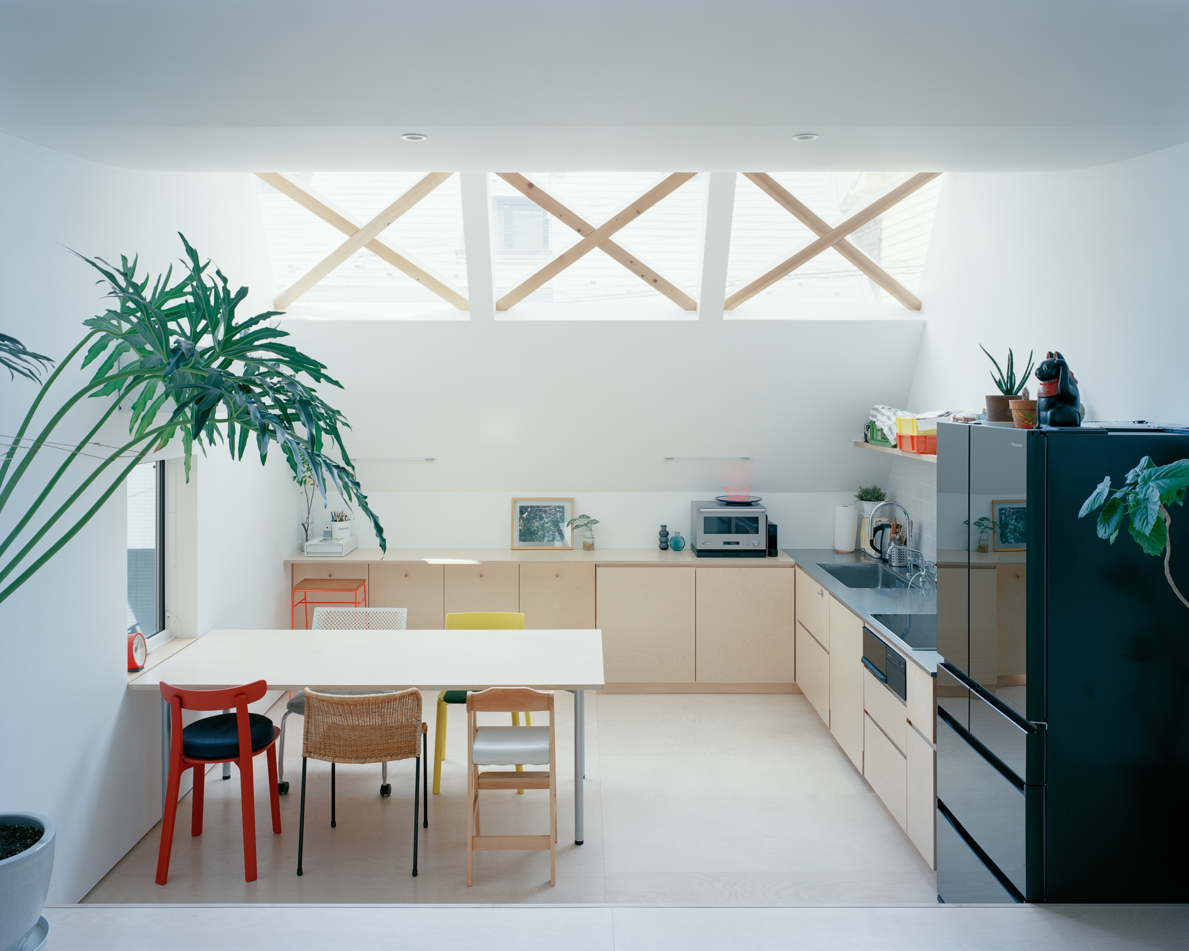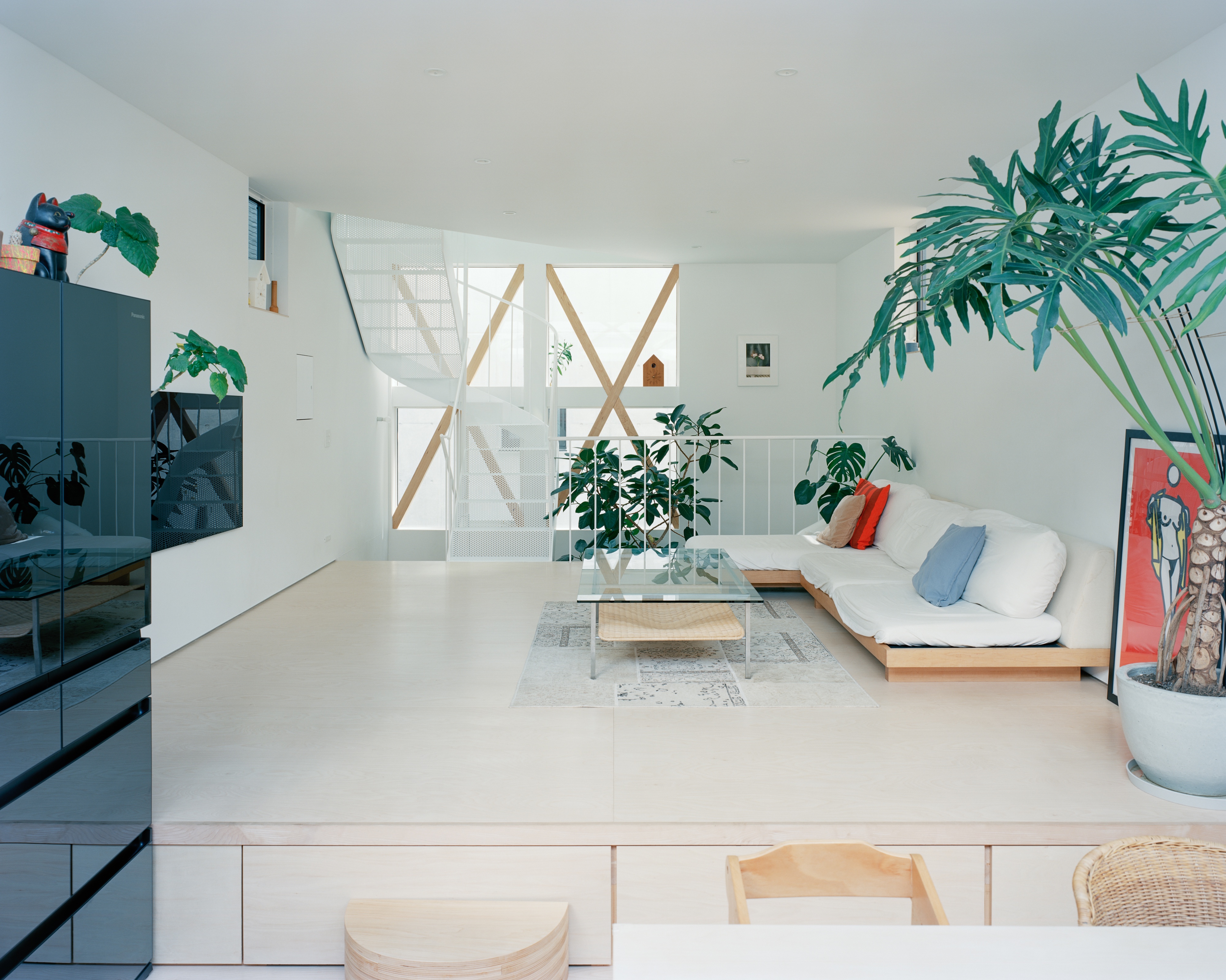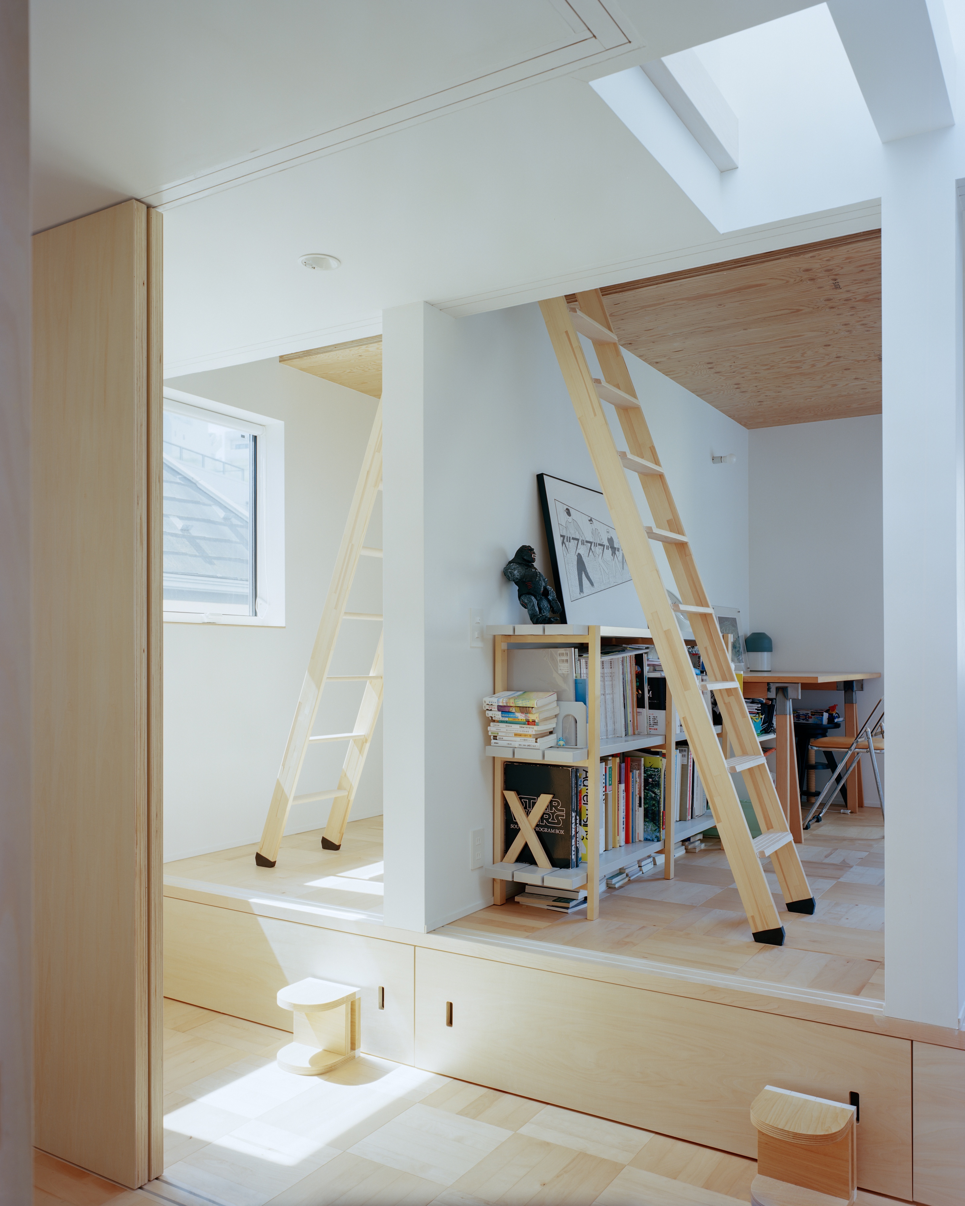 시부야에 위치한 하츠 하우스는 전형적으로 좁은 도시의 대지에 지어진 단독주택이다. 도로와 마주한 좁은 전면부의 1층에 주차 공간을 마련해야 했다. 디자이너는 이러한 제약을 해결하기 위해 전체적으로 개방적이면서도 효율적인 구조를 제안했다. 각 층은 사용자의 일상생활에서 중요한 프로그램의 우선순위에 따라 겹겹이 쌓아 올려져 하나의 응집력 있는 집으로 완성된다.