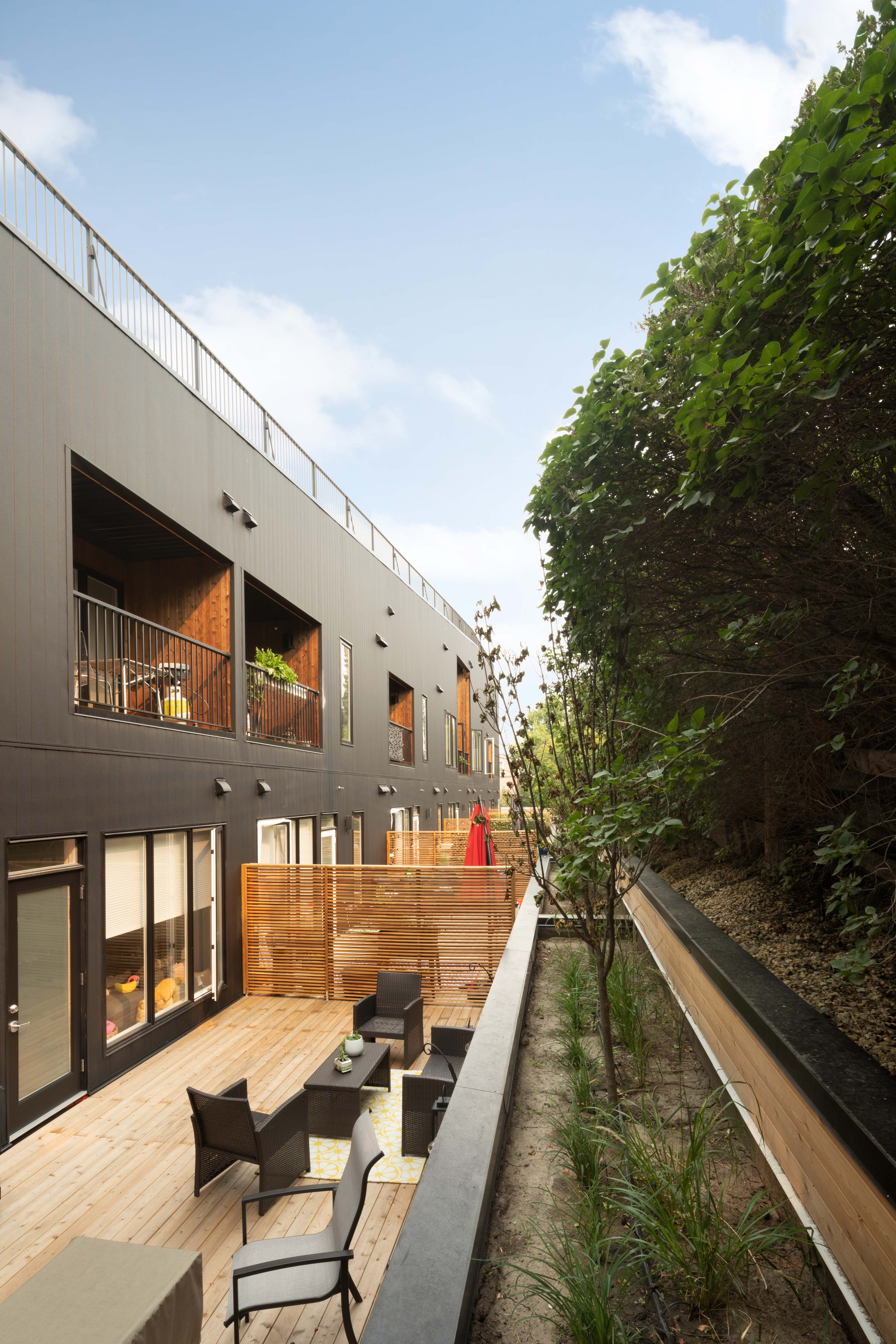 거주자들은 봄철의 파종, 텃밭의 유지 및 관리 그리고 캘거리 지역 사회와 함께 수확을 준비하고 판매하는 과정에 참여하게 된다. 그로우는 차선이 없는 도심에 위치하고 있으며, 부지의 북서쪽에서 남동쪽으로 20피트의 고도 변화가 있다. 건축 후퇴선과 높이 제한 등의 제약을 활용해 유닛별로 경사를 활용한 테라스를 만들고, 각 유닛에 채광과 전망을 제공하여 공유주택으로써의 디자인 전략을 풍부하게 적용했다.