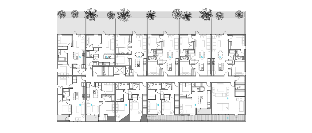 그로우의 각 유닛은 다양한 인구 구성원의 사회적 상호작용을 지원하기 위해 작은 스튜디오, 복층 구조, 2층 규모의 타운하우스 등 다양한 타입으로 마련되어 있다. 이러한 다양한 유닛 타입은 노부부와 그들의 자녀들이 각각의 세대에 거주하거나, 1인 가구의 학생과 직장인이 서로 이웃이 될 수 있도록 장려하여 소셜 커뮤니티를 강화한다. 그로우는 공유주택에서의 사유화 개념을 재해석한 프로젝트다. 일반적으로 공유주택에서의 사회적인 교류는 복도나 우편함 앞에서 이루어지는데, 그로우는 유닛의 다양성과 원예 공간이 마련되어 있어 주민들간의 교류를 자연스럽게 유도한다.