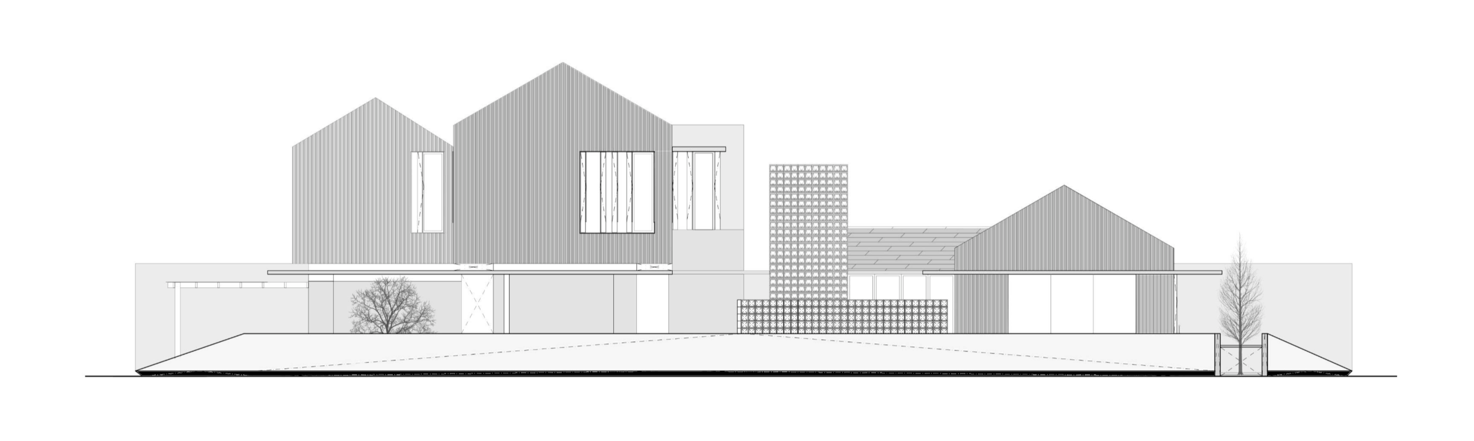이 프로젝트는 코너 부지에 자리한 주택이다. 두 주택은 하나는 건축주의 가족을 위한 집, 다른 하나는 할머니를 위한 휴식 공간으로 두 건물은 공용 중정을 통해 연결된다.