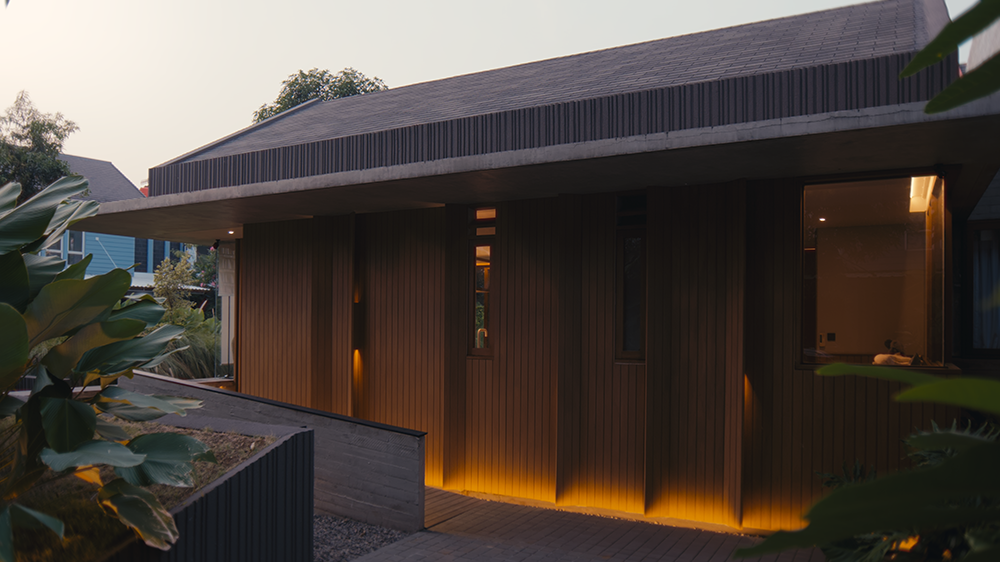 이 설계의 핵심은 지속 가능성으로, 거주자와 자연의 연결을 목표로 한다. 네 면에 배치된 큰 창문은 자연 환기를 극대화하며, 노출된 철목과 나뭇결이 드러나는 콘크리트 같은 천연 소재는 건축물의 자연스러운 노화 과정을 극대화한다.