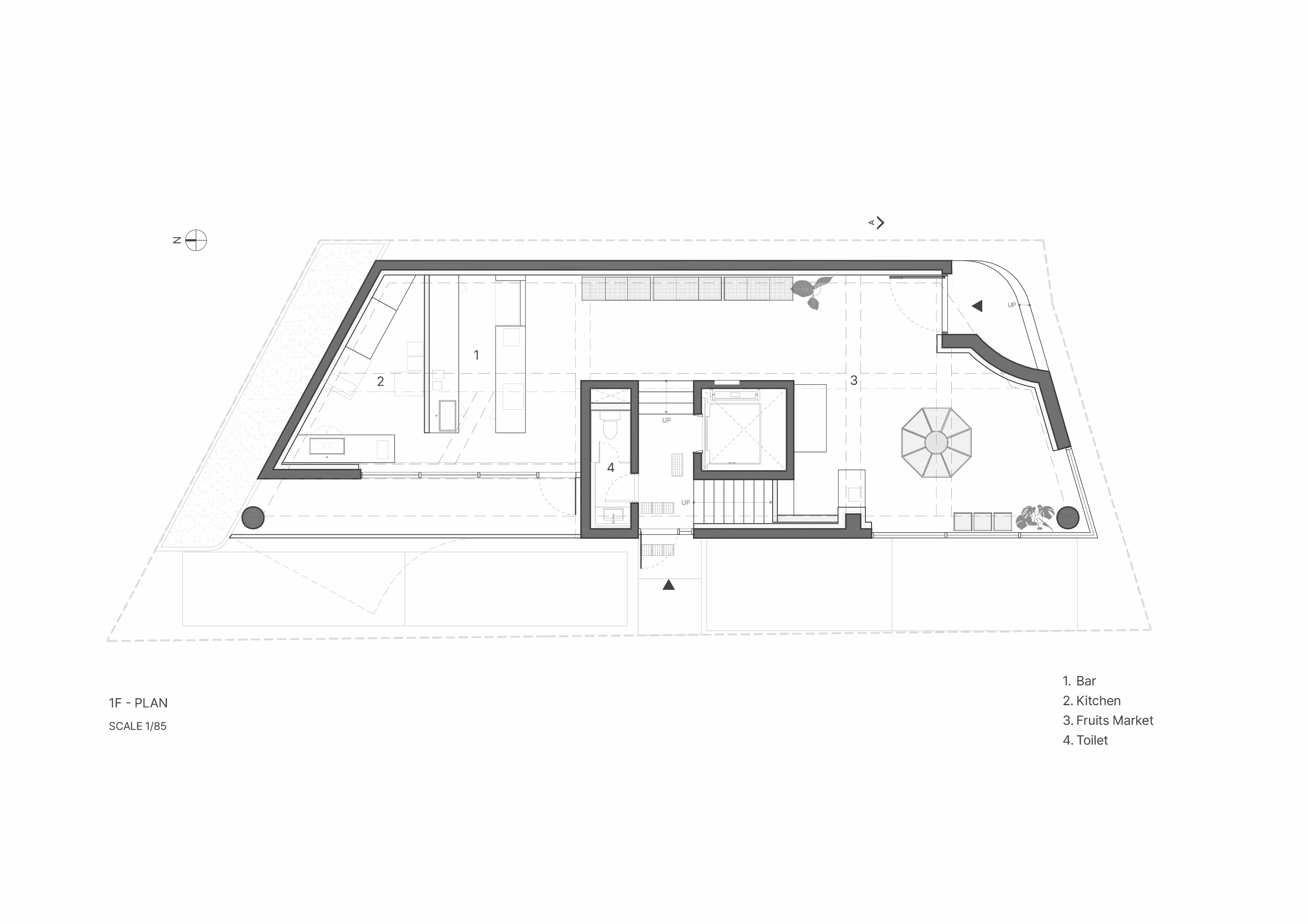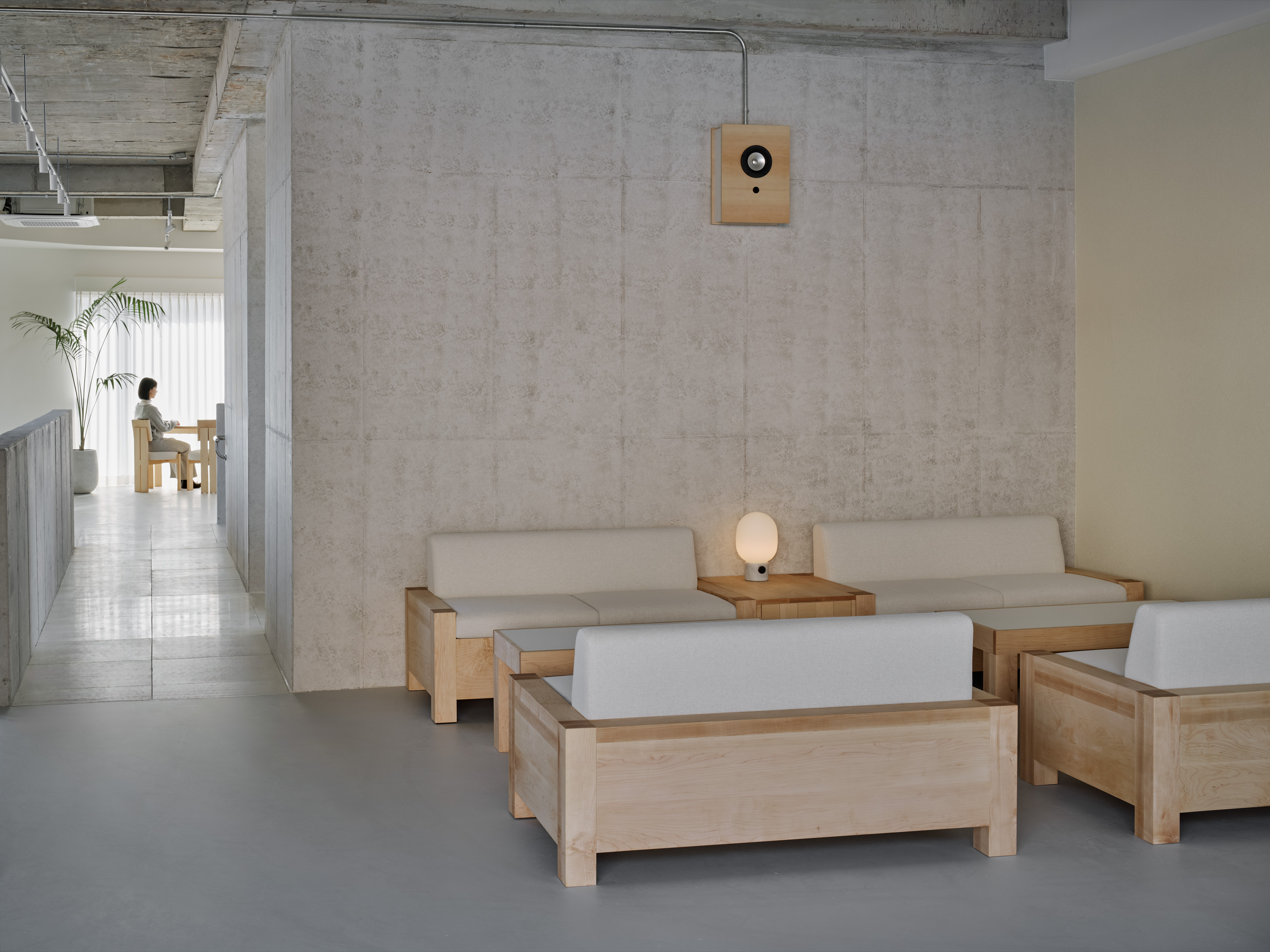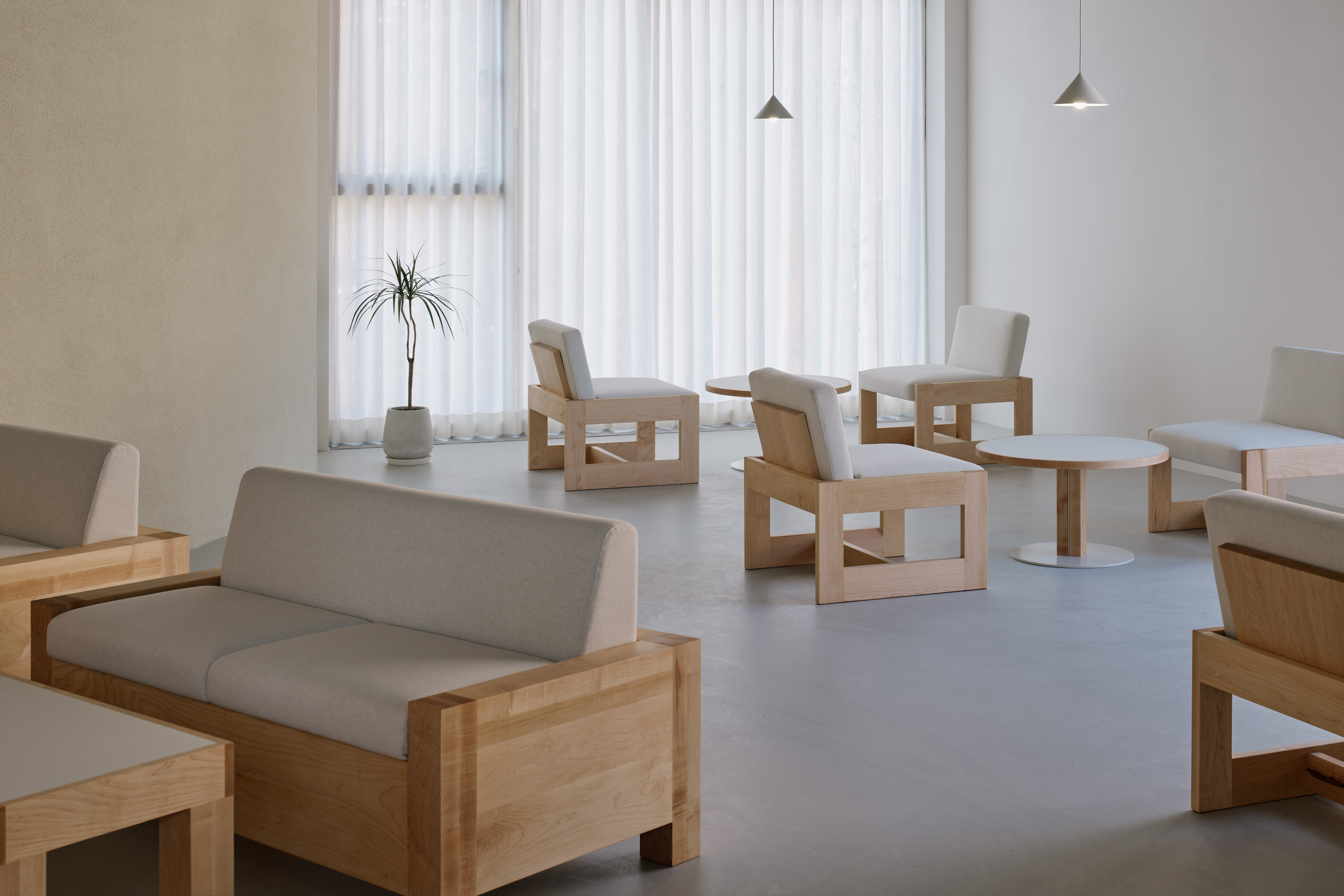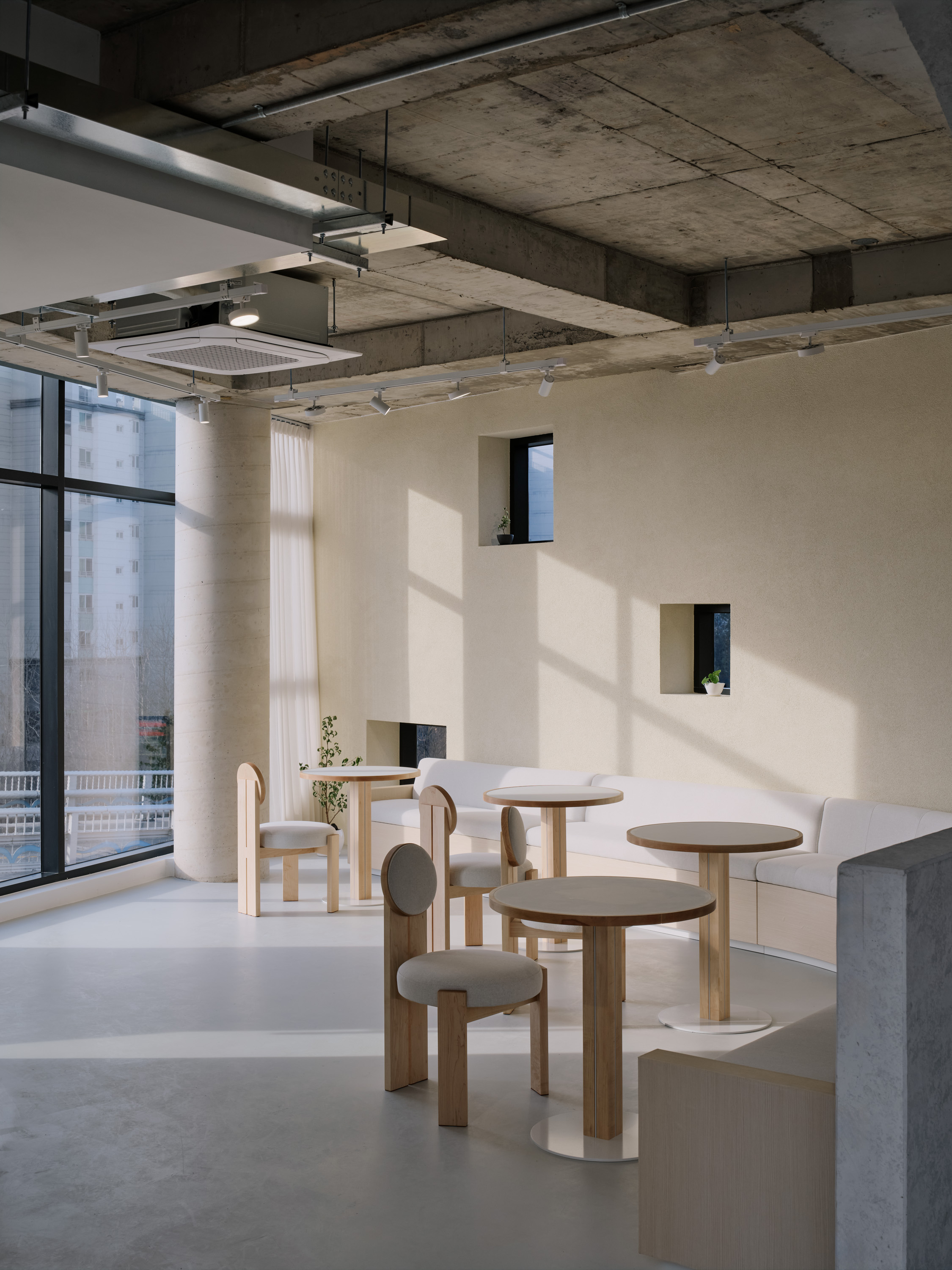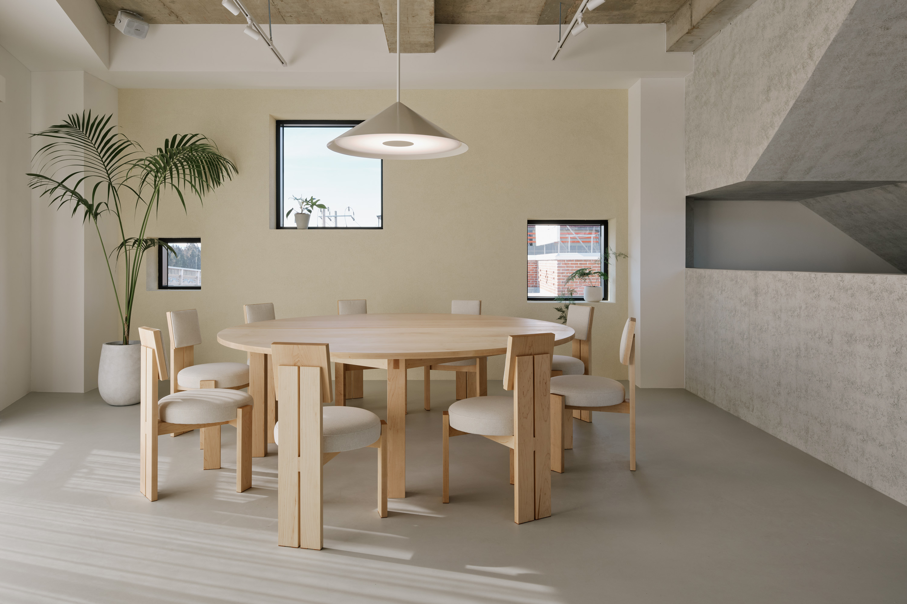 이를 위해 기존의 콘크리트 마감 면을 최대한 살리되 공간의 주재료인 메이플 원목이 시각적, 정서적 균형을 이루도록 계획하였다. 이는 형형색색의 과일들이 비치되었을 때 비로소 그 감각을 전달한다. 이러한 연결성은 1층뿐만 아니라 위층까지 이어진다. 곳곳에 배치된 각기 다른 크기의 식물들이 과일을 대신해 그 균형을 유지하며, 공간 안에 약간의 온기와 질감을 더하도록 기획하였다.