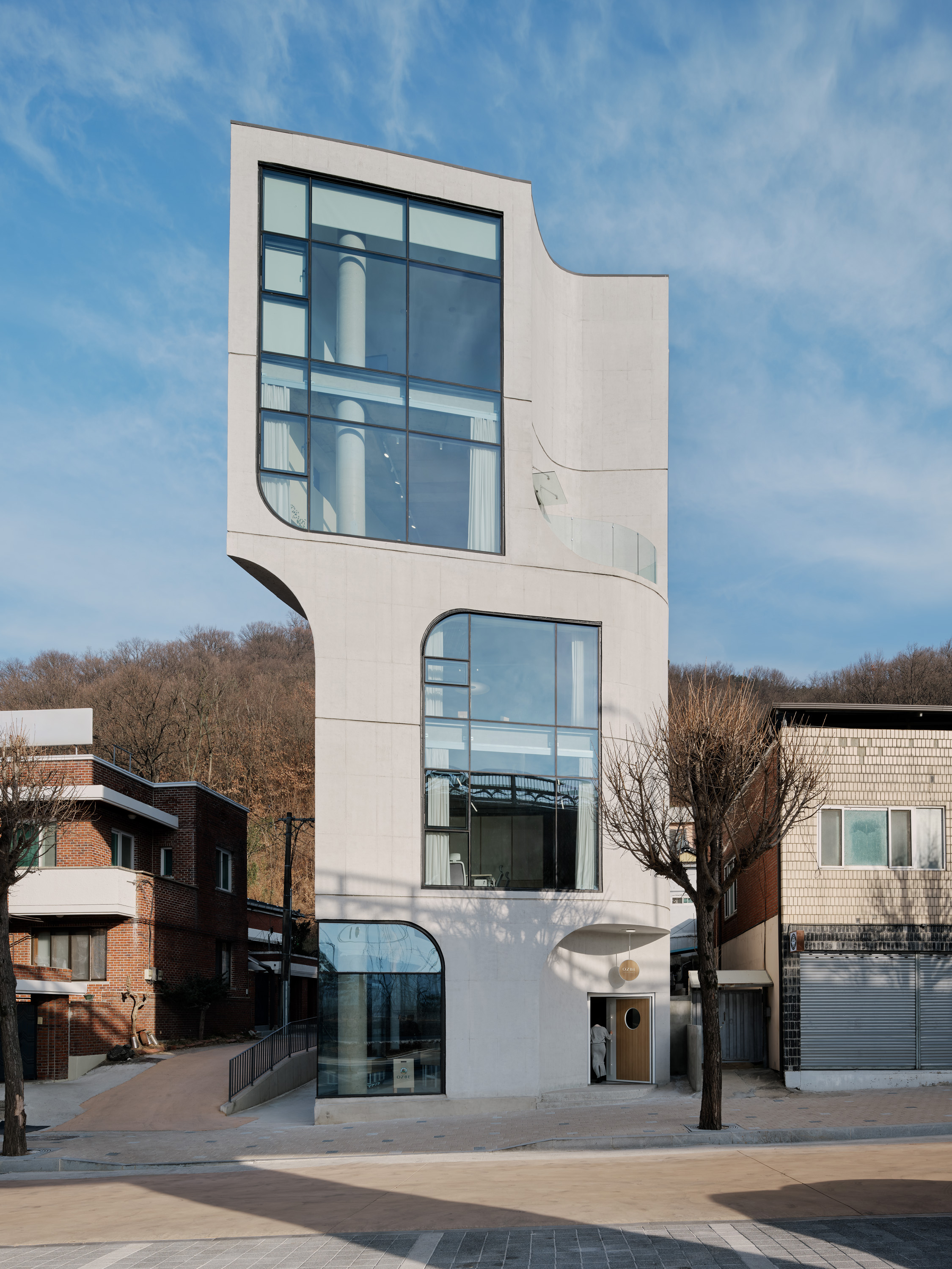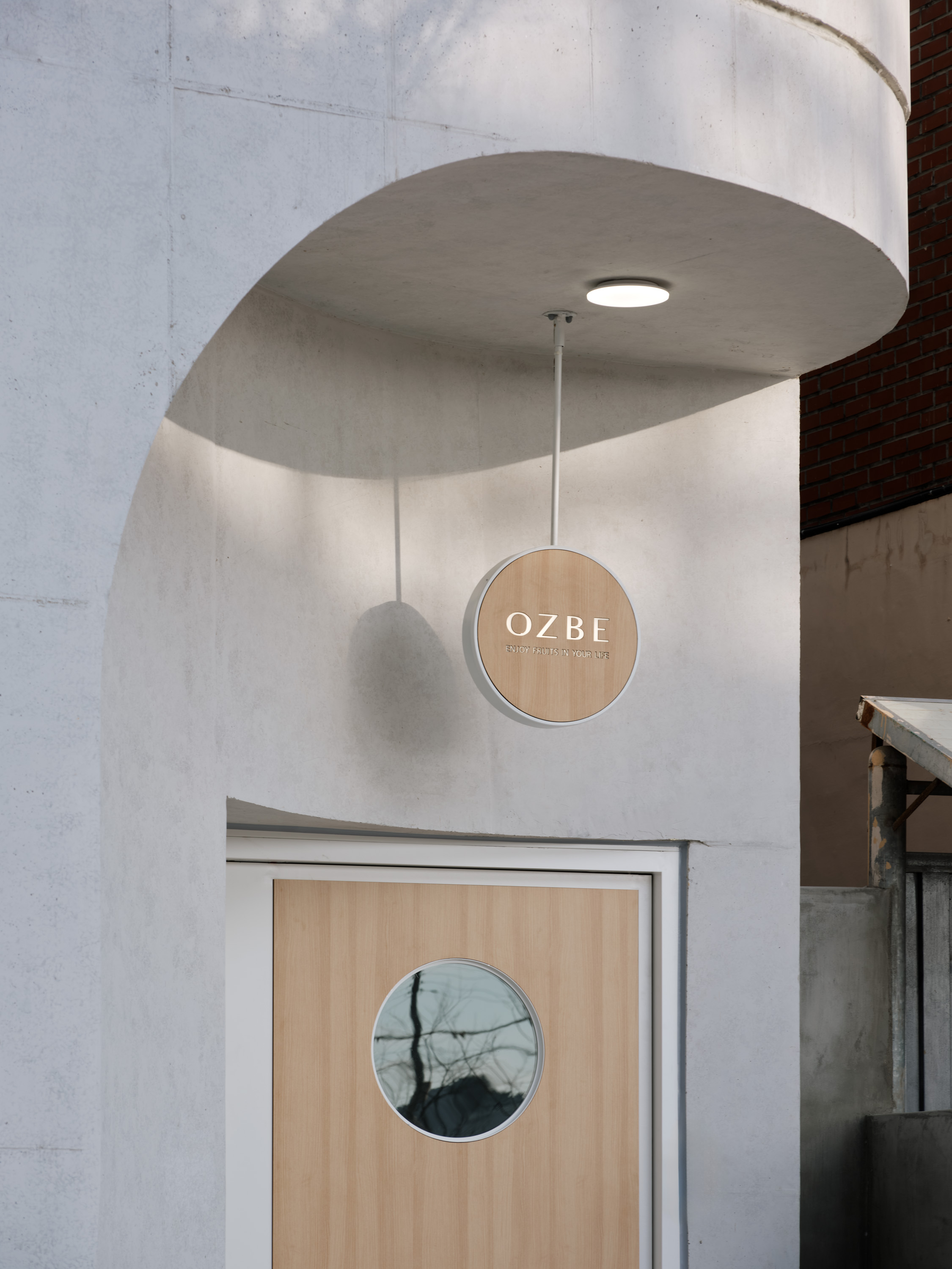 오즈베(OZBE)는 프리미엄 과일을 판매하고 그 과일을 현장에서 직접 착즙하거나 플레이팅하여 서비스하는 신생 카페 브랜드이다. 건축물은 총 4개층으로, 1층은 과일 마켓, 2층은 사무공간, 3층과 4층은 고객들을 위한 라운지 공간으로 계획되었다.