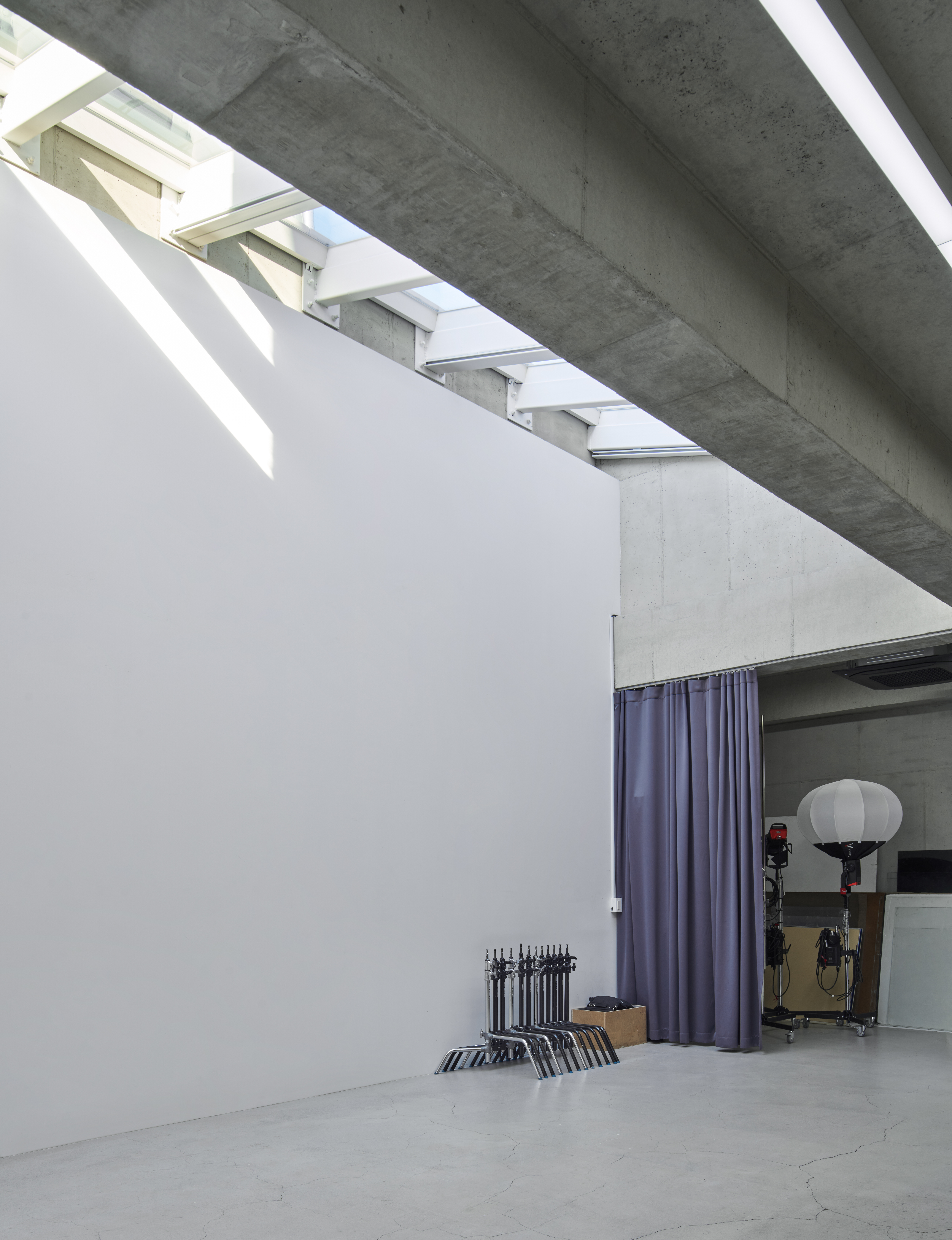 지하층과 2층은 사진 촬영을 위한 스튜디오로 사용되기 때문에 층고를 최대한 높게 했다. 부분적으로 천장을 만들어서 자연광이 실내로 유입되도록 설계했다. 일조권 사선제한에 의한 제약 요소를 최대한 활용하여 천장 높이는 최대한 높였다. 근린생활시설 용도의 임대 공간은 추후 임대자가 스스로 인테리어를 할 것을 고려하여 벽과 천장에 최대한 마감을 하지 않고 부분적으로 노출 콘크리트 보수로 마감했다.