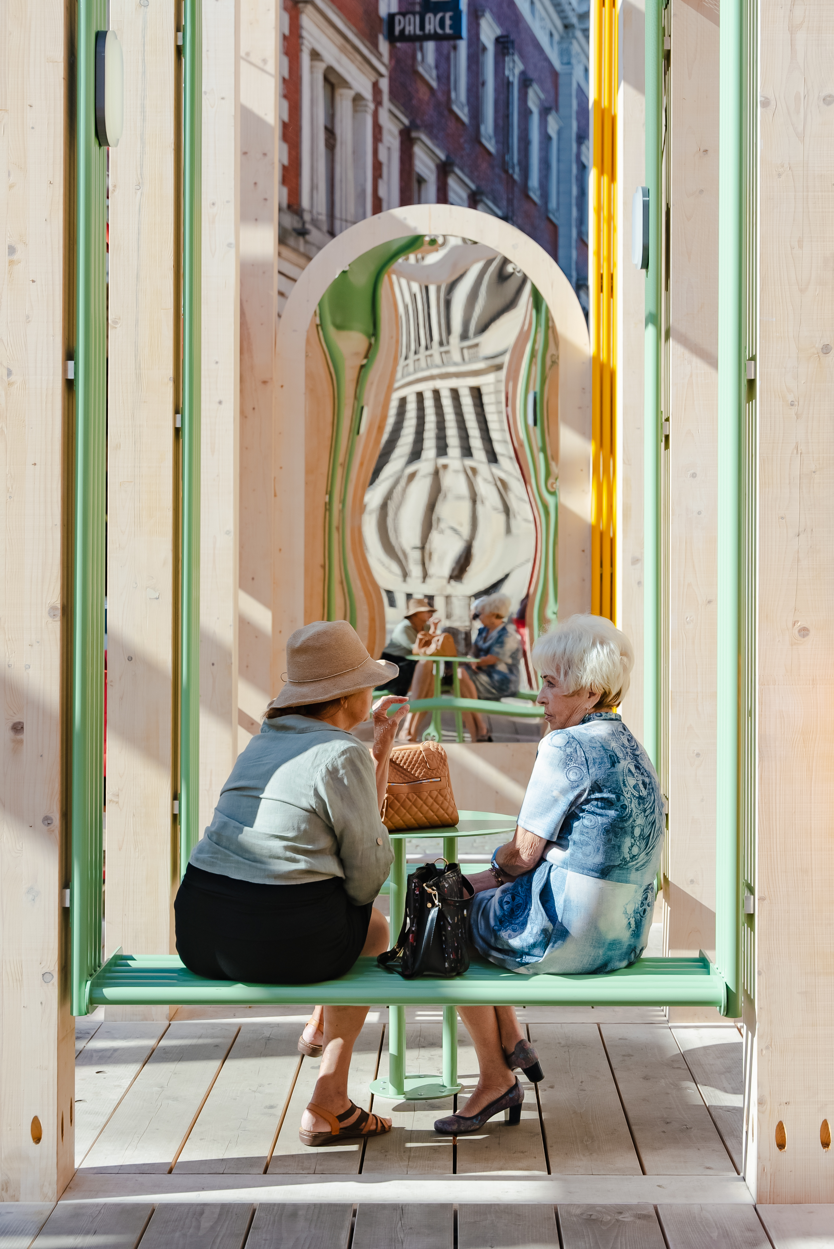 주요 하중을 지탱하는 조립식 구조물은 수년간 지속될 수 있도록 설계되었다. 이 구조물은 강하고 견고할 뿐만 아니라 재사용이 가능하여 환경 친화적이다. 돔 성당의 회랑에서 영감을 받은 5m 높이의 목재 그리드는 돔 광장의 베레타주 지상층과 일치하며, 중앙에는 작은 안뜰이 있다.