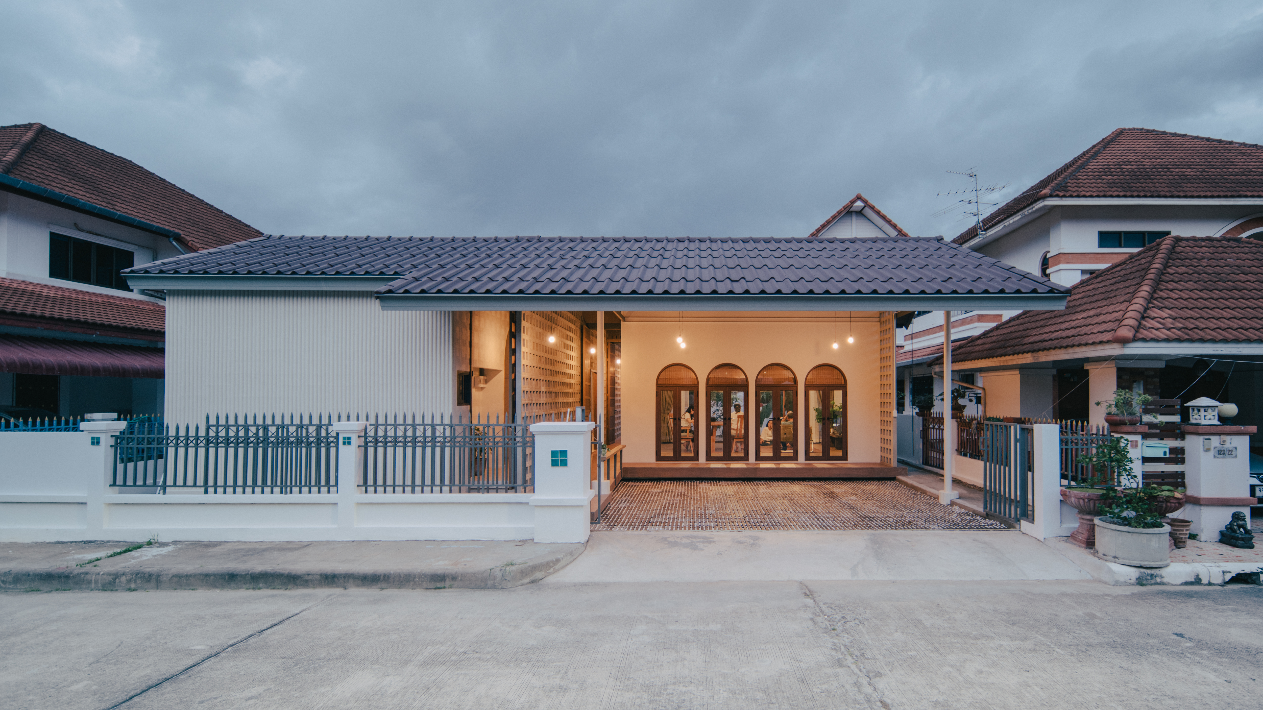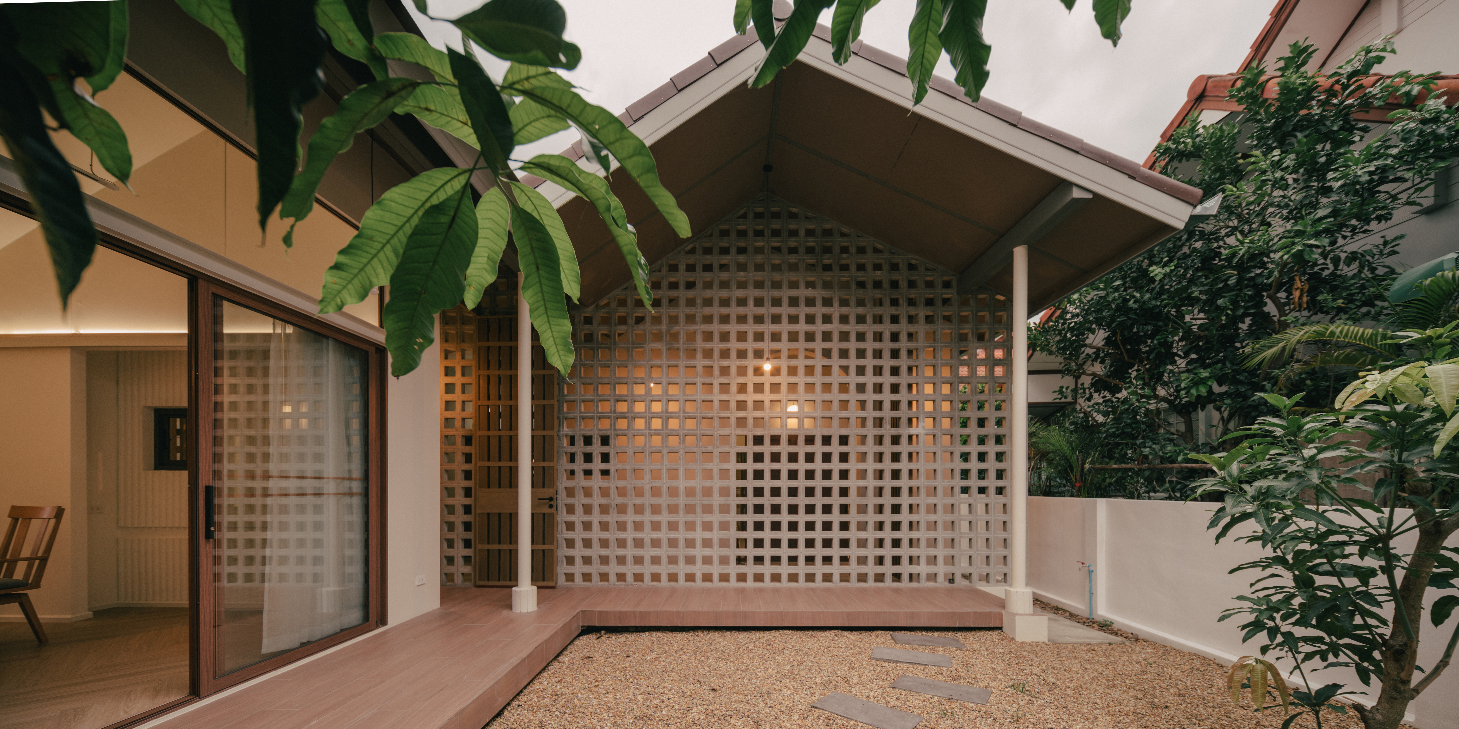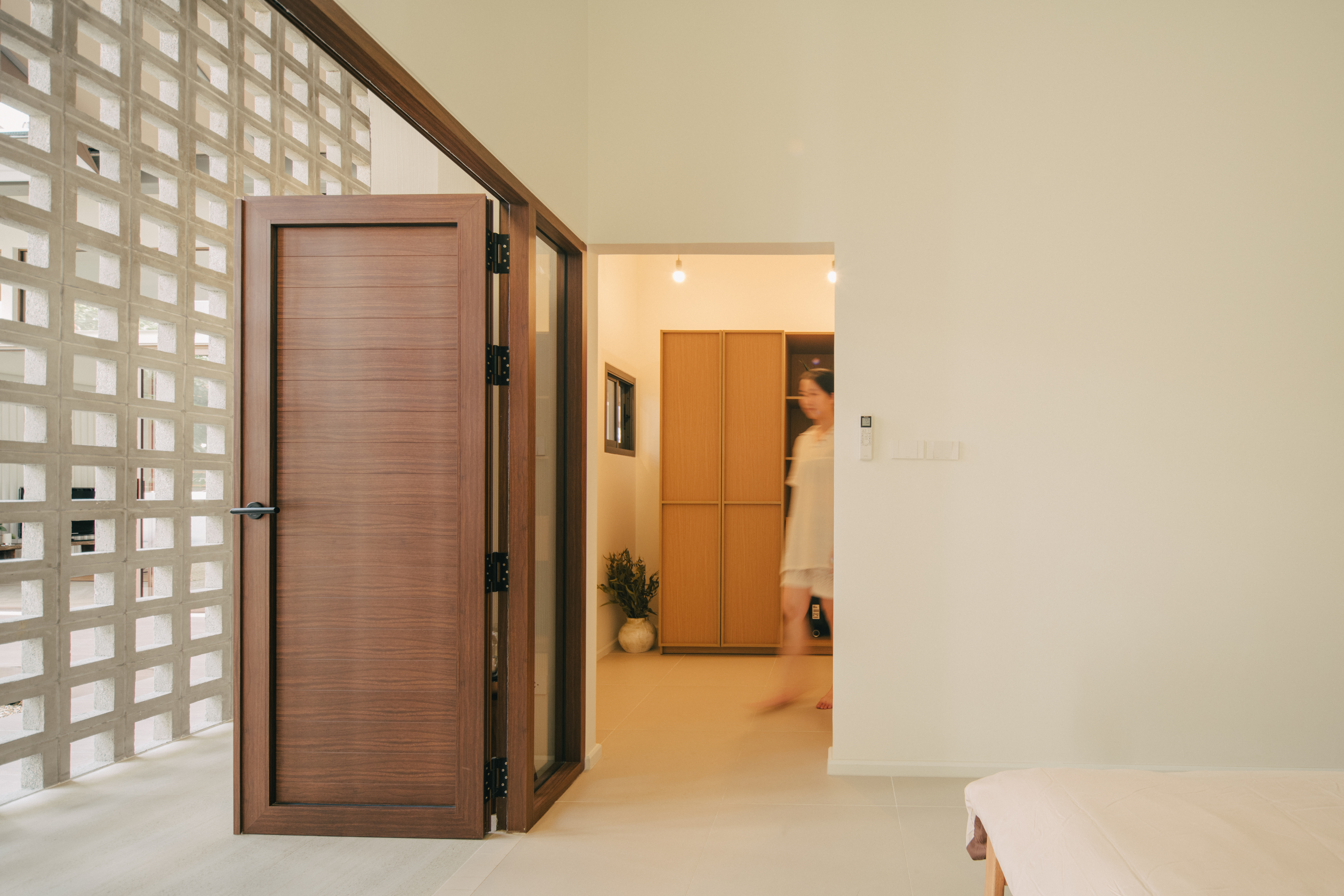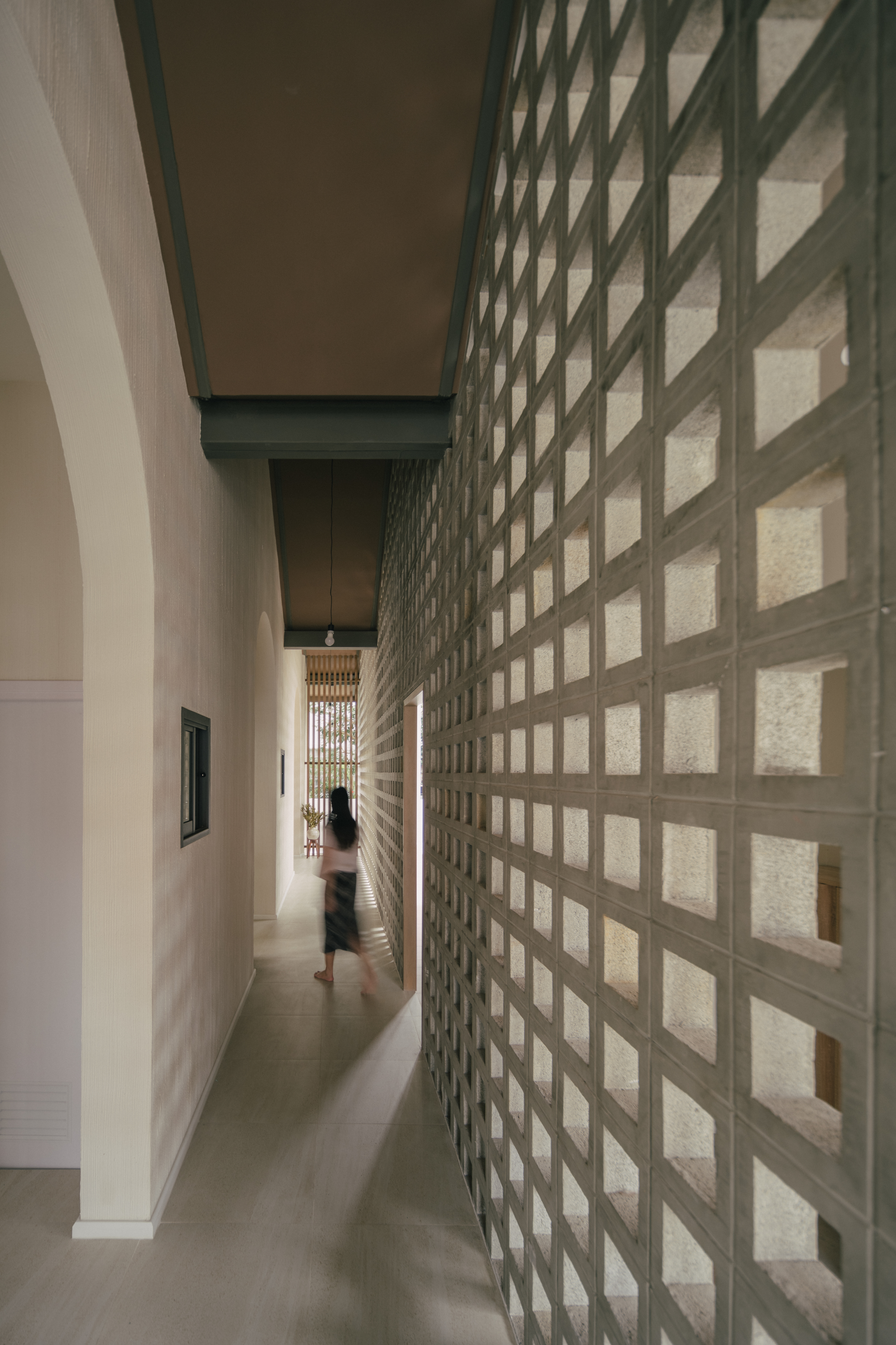 이 통로를 따라 중앙에 콘크리트 블록 벽을 계획하여 프라이버시를 보호하면서 공기가 블록을 통해 흐를 수 있도록 했다. 이 곳은 주민들이 신선한 공기와 콘크리트 블록의 시각적인 매력, 필터링된 햇살을 즐길 수 있게 하고, 거실의 프라이버시를 보장한다.