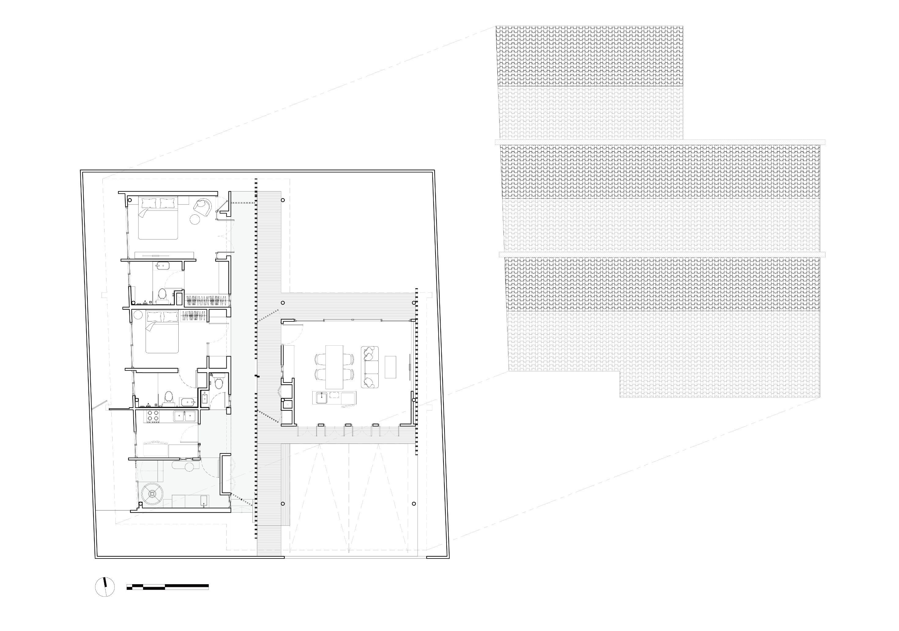 건축가는 순환공간을 반 외부 공간으로 설계하여 유지보수를 최소화 하고자 했다. 순환공간을을 방과 자연 사이의 전환 공간으로 계획하여 공간의 기능은 유지하고, 퀄리티는 높였다. 이를 바탕으로, 주요 순환 공간은 집의 중앙에 배치되어 부지의 앞쪽에서 뒤쪽으로 이어지는 직선형 통로를 만든다. 이 직선형 통로는 프라이버시의 그라데이션을 만들어낸다.