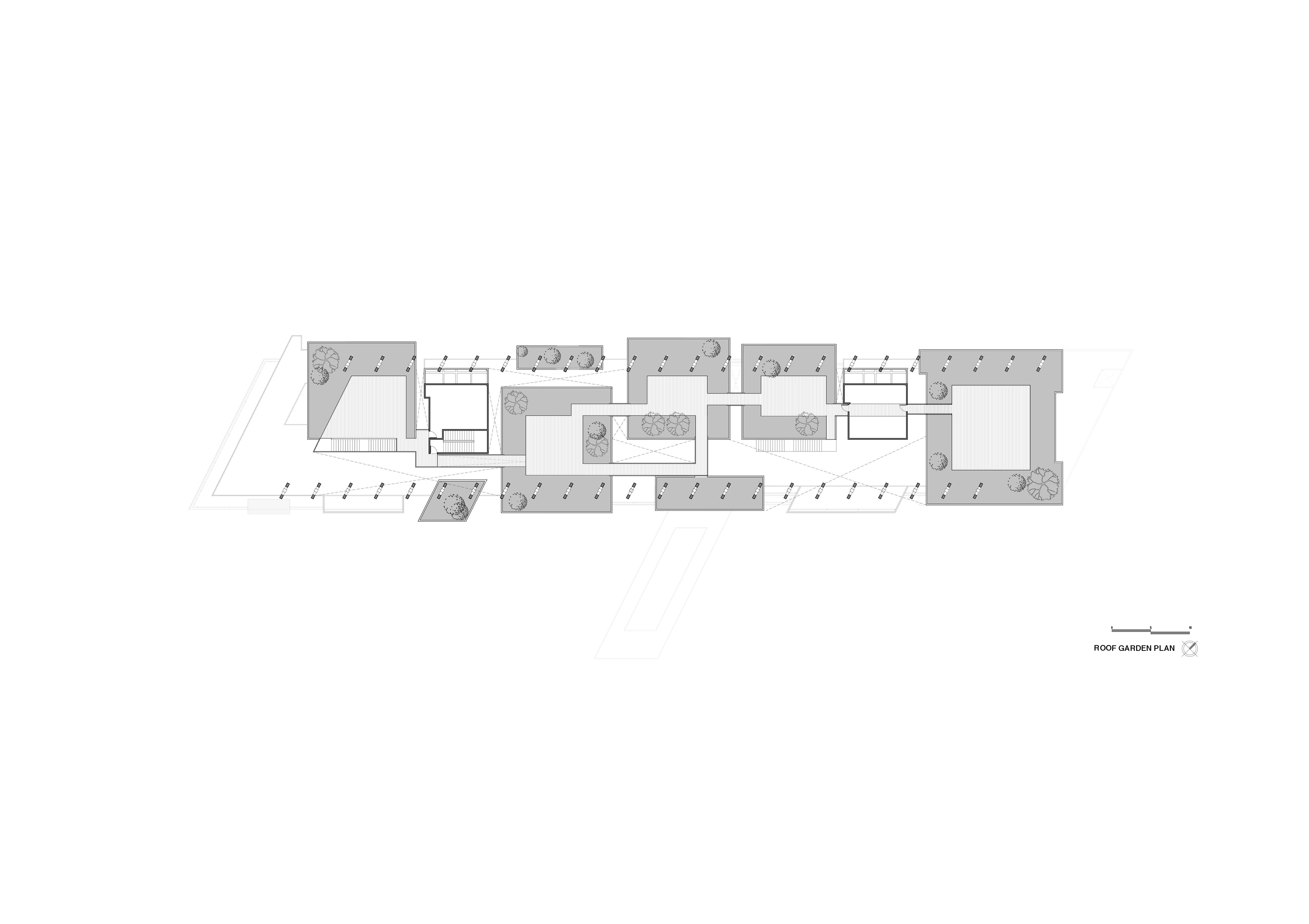 1층에는 상업 공간과 발리 유산을 전시하는 ‘발리 어보드 박물관’이 있다. 2층과 3층에는 코워킹 스페이스와 강의실이 있으며, 3층에는 개인 사무실, 다목적 홀, 미디어룸이 마련되었다. 실내 및 실외 원형 극장은 비공식적인 모임 공간을 만들며, 거대한 지붕 아래 있는 데크에서는 주변 섬의 경관을 감상할 수 있다. 폐쇄적인 벽돌 구조물과 지붕 아래 열린 공용 공간이 상호 작용하며 독특한 공간 경험을 창출한다. 이를 통해 건물 이용자들은 시각적, 청각적으로 역동적인 공간과 소통할 수 있다.