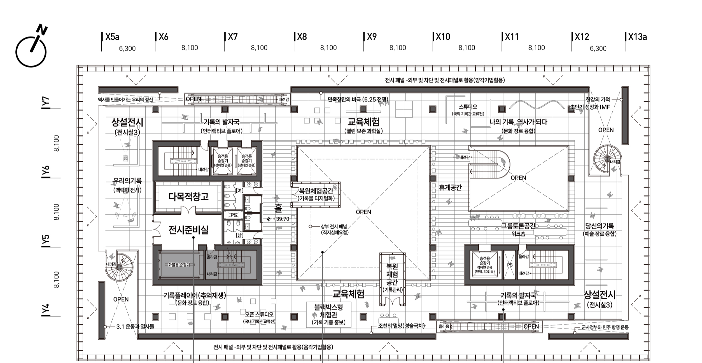 전시 벽의 외측부를 통해 자연 재료에 새겨지는 양각과 음각 기법을 입힌 전시 월은 차양 역할을 하고 내부의 기록물도 보호한다. 전시 월 덕분에 건물 밖에서 국가기록박물관의 정체성을 확인할 수 있고, "기록은 투명성과 정직함이다"라는 기록의 정의를 드러내는 요소 중 하나다. 내측 벽은 아날로그와 디지털을 넘나들며 다양한 기록 전시로 채워질 수 있게 만들어 준다. 이처럼 건물 자체가 하나의 기록물이 되는 박물관은 시간성에 따라 표정이 바뀌는 전시 형태의 새로운 변화를 끌어낸다. 국가기록박물관이 기록의 가치와 역사를 켜켜이 기록하고 재조명하는 차별화된 형태의 박물관이 되길 기대한다. 멈추지 않는 시간 속에서 백지 위에 새로운 기록을 써 내려가듯 유의미한 역사가 번져 나갈 것이며, 방문하는 관람객들이 이곳을 통해 기록에 대한 중대함을 알아가고, 개인의 기록을 경험함으로써 소중한 기록의 가치를 일깨우길 진심으로 바란다.