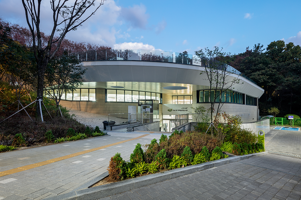 방배숲환경도서관은 서초구 방배동 서리풀 공원에 위치한 구립도서관으로 2023년에 개관했다. 숲의 둔덕이 감싸고 있는 대지는 오랜 기간 비워져 있었으며, 그 자체로 인근 주민들의 쉼터 역할을 하고 있었다. 이러한 대지에 지나치게 존재감을 드러내는 건축물을 디자인하기보다 최대한 환경과 조화를 이루며 아늑한 공공시설을 마련하고자 했다.