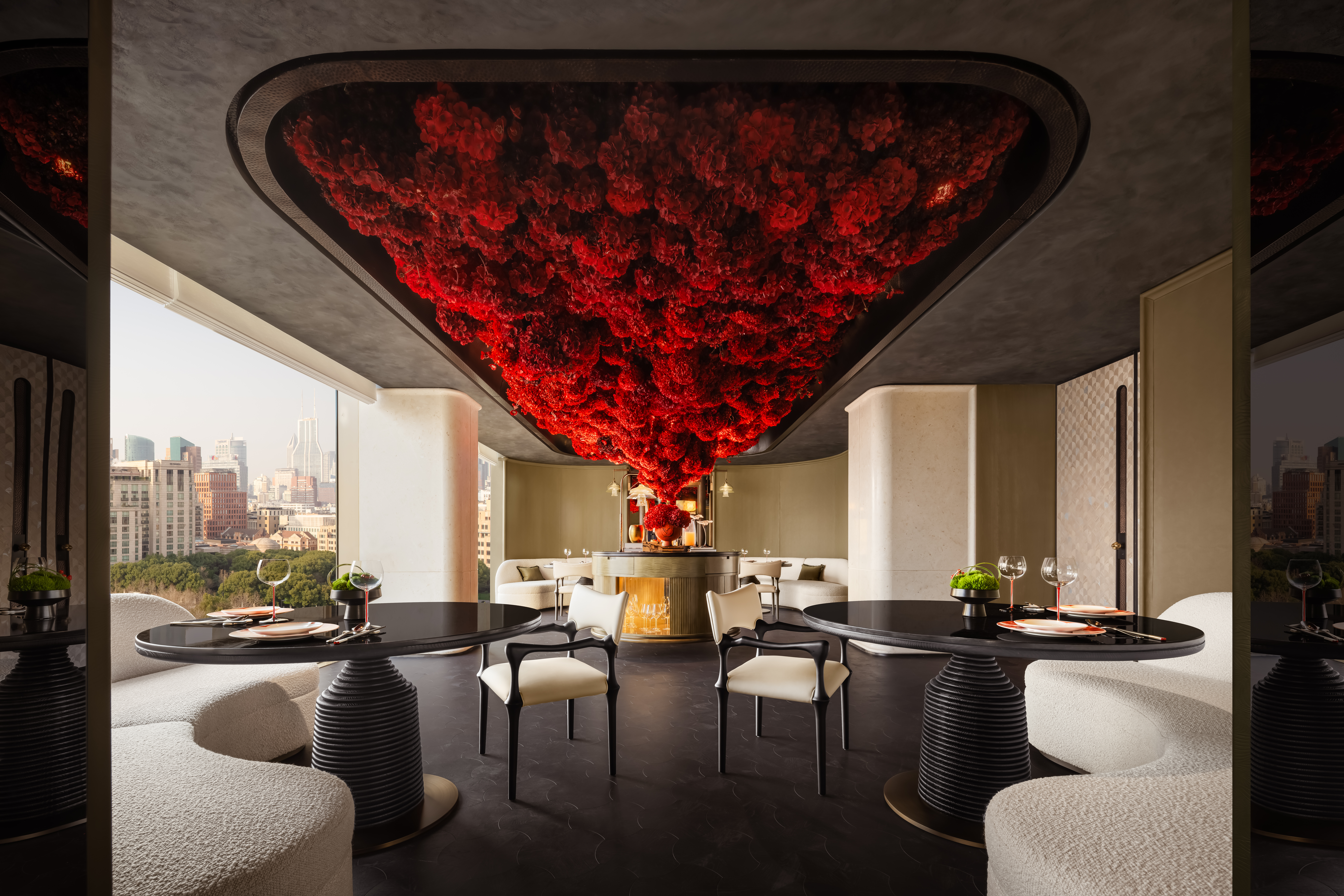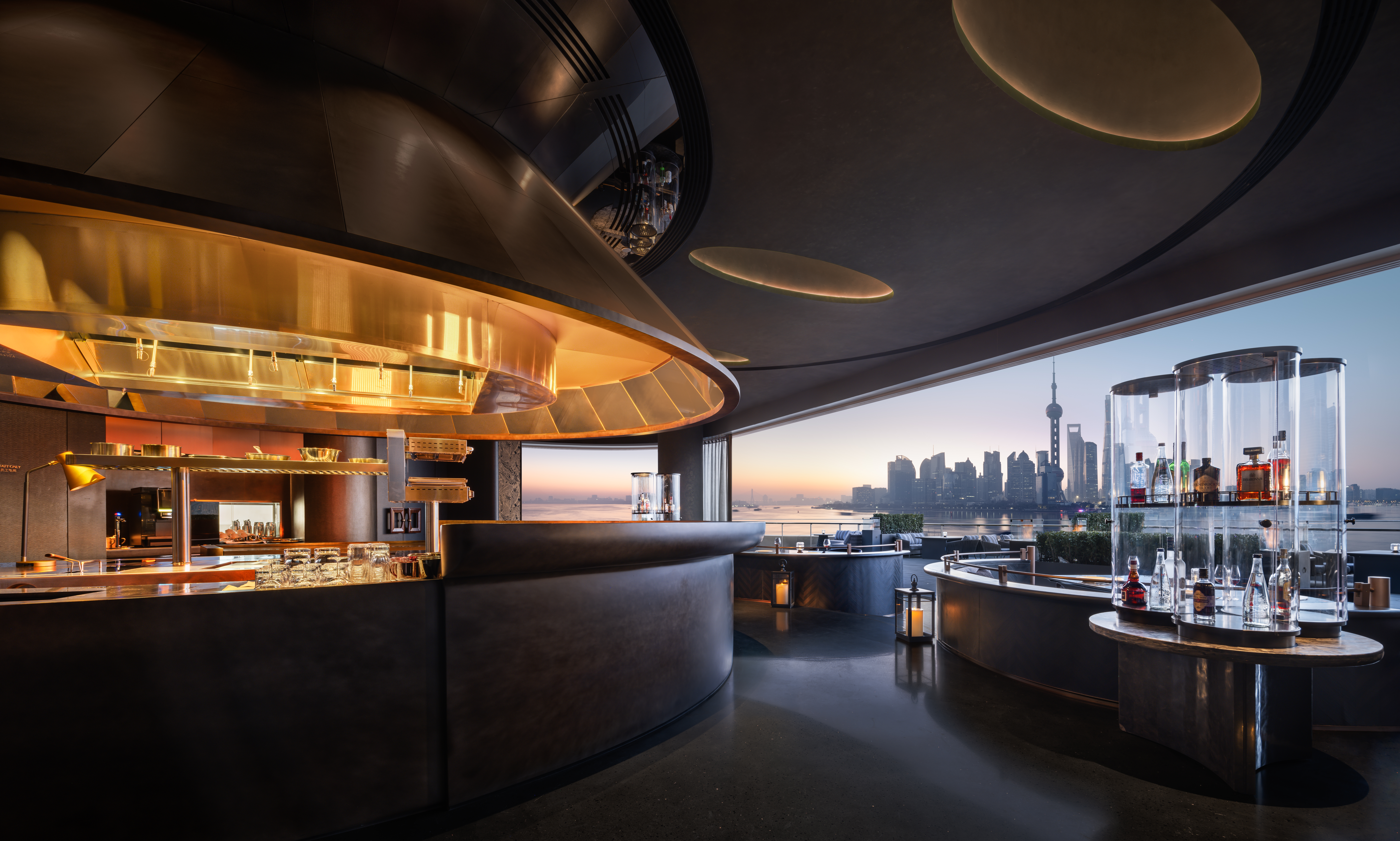 상하이의 파노라마 뷰의 스카이라인을 감상할 수 있는 바는 금속 패널과 기하학적인 형태의 조합을 통해 미래적인 분위기를 연출했다. 객실은 상하이의 야경 조명할 수 있도록 창가에 욕조를 둘 수 있도록 새로운 레이아웃을 도입했다.