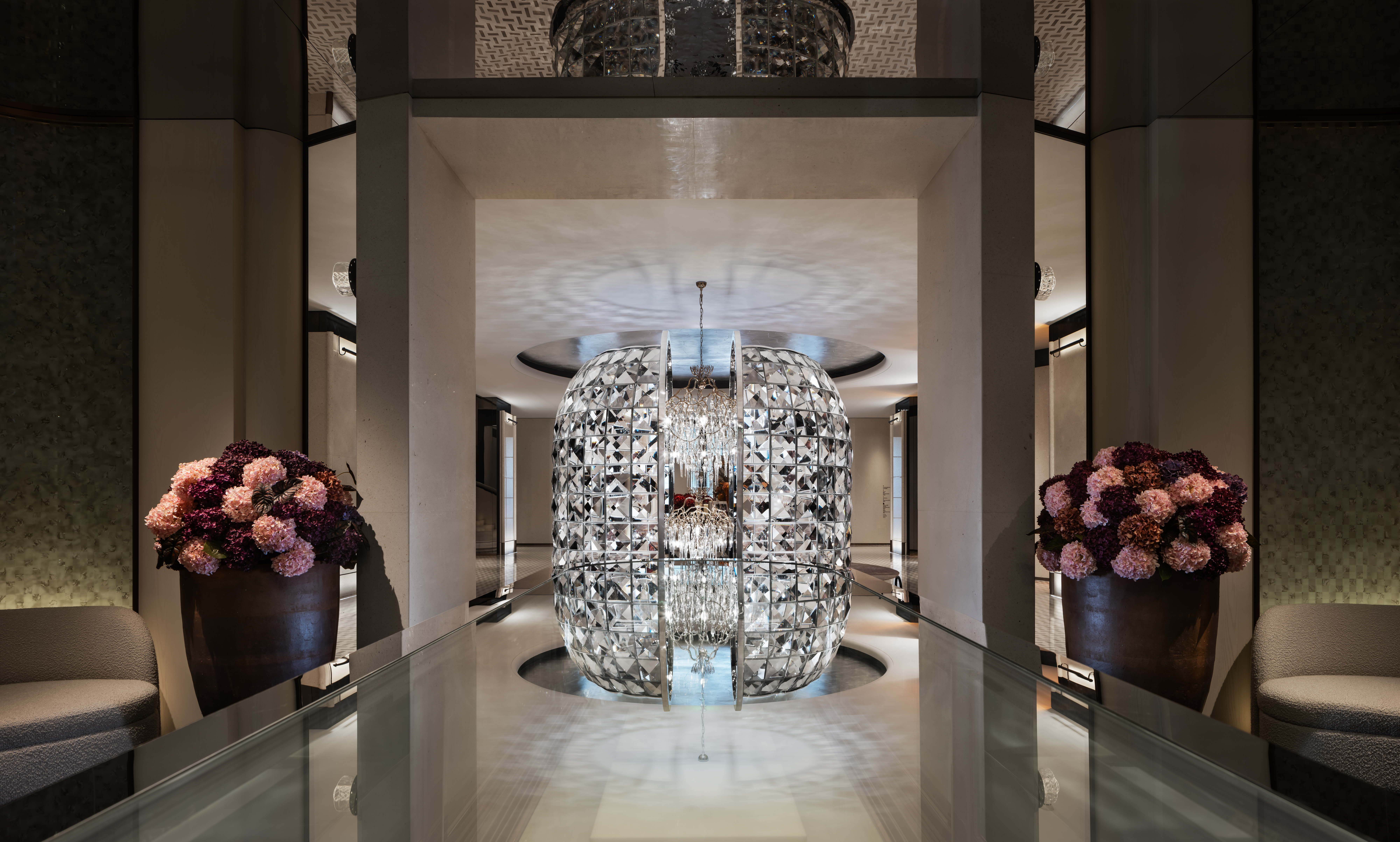 호텔의 내부는 상하이의 번잡한 거리 속에서 고요한 분위기의 휴식을 경험할 수 있도록 디자인됐다. 로비의 이중문은 옛 상하이 건물에서 보여주던 창문의 격자 무늬에서 영감을 받은 것이다. 로비의 나선형 계단은 흑색의 벽과 대비되는 흰색이며, 세심하게 새공된 다이아몬드 컷 기법이 적용된 오목한 원형 천장과 꽃봉오리 모양의 샹들리에가 조화를 이룬다.