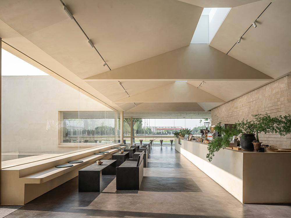 송몬트 스페이스에 적용된 개념은 ‘프레임 중정’이다. 다양한 프레임을 도입하여 자연 채광과 환기를 최적화하고, 실내외 풍경의 새로운 관계를 창출하며 전통적인 공간의 경계를 허물 수 있게 했다. 중정을 둘러싼 벽은 다양한 기능의 공간과 연결할 수 있도록 여러 개의 프레임으로 설계됐다. 중정에는 하늘을 투영하는 반사 수경을 배치되어 있다. 카페 공간의 수평 프레임은 개방감을 더하고 방문객이 야외 경치를 감상하며 휴식할 수 있게 한다.