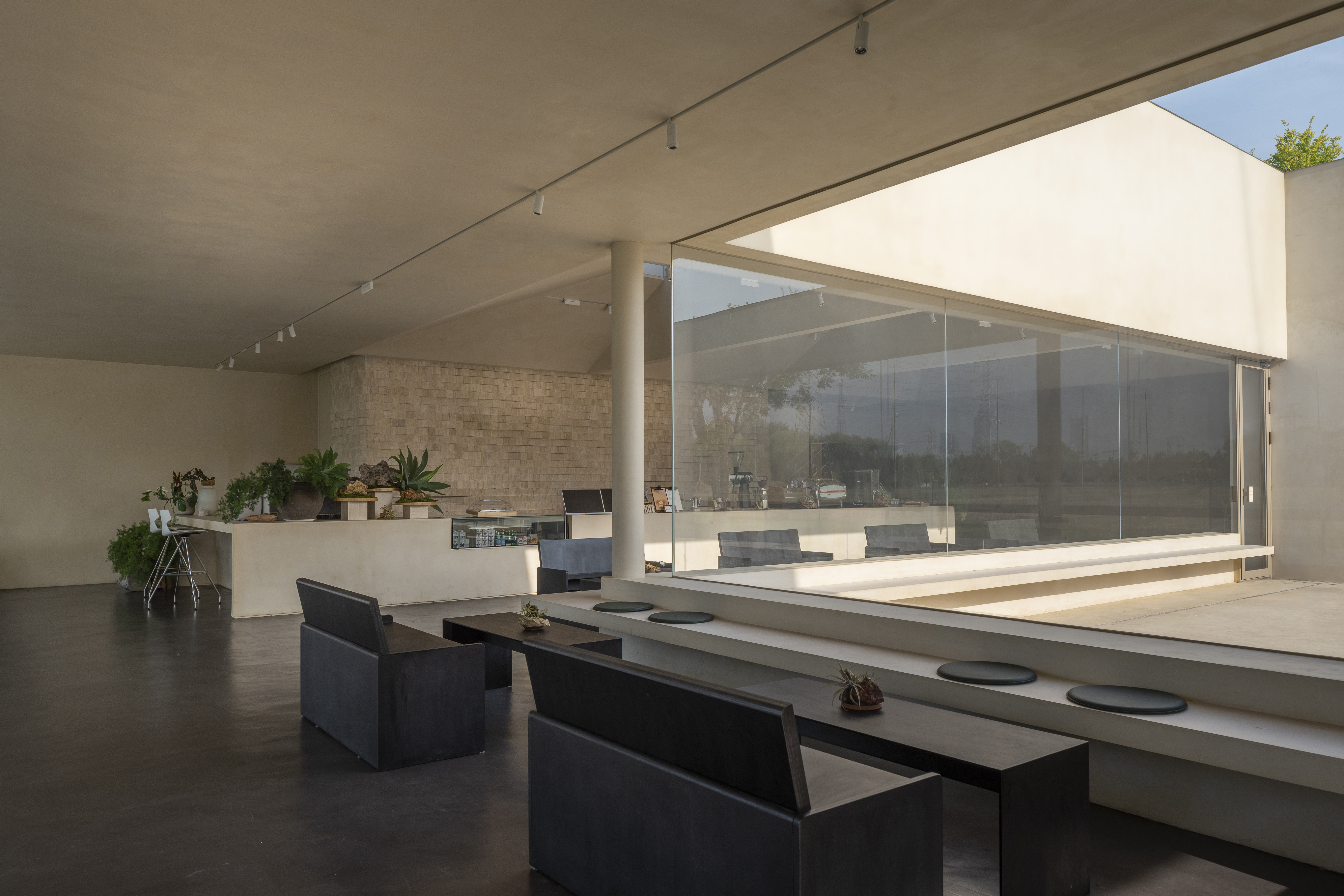 송몬트 스페이스에 적용된 개념은 ‘프레임 중정’이다. 다양한 프레임을 도입하여 자연 채광과 환기를 최적화하고, 실내외 풍경의 새로운 관계를 창출하며 전통적인 공간의 경계를 허물 수 있게 했다. 중정을 둘러싼 벽은 다양한 기능의 공간과 연결할 수 있도록 여러 개의 프레임으로 설계됐다. 중정에는 하늘을 투영하는 반사 수경을 배치되어 있다. 카페 공간의 수평 프레임은 개방감을 더하고 방문객이 야외 경치를 감상하며 휴식할 수 있게 한다.