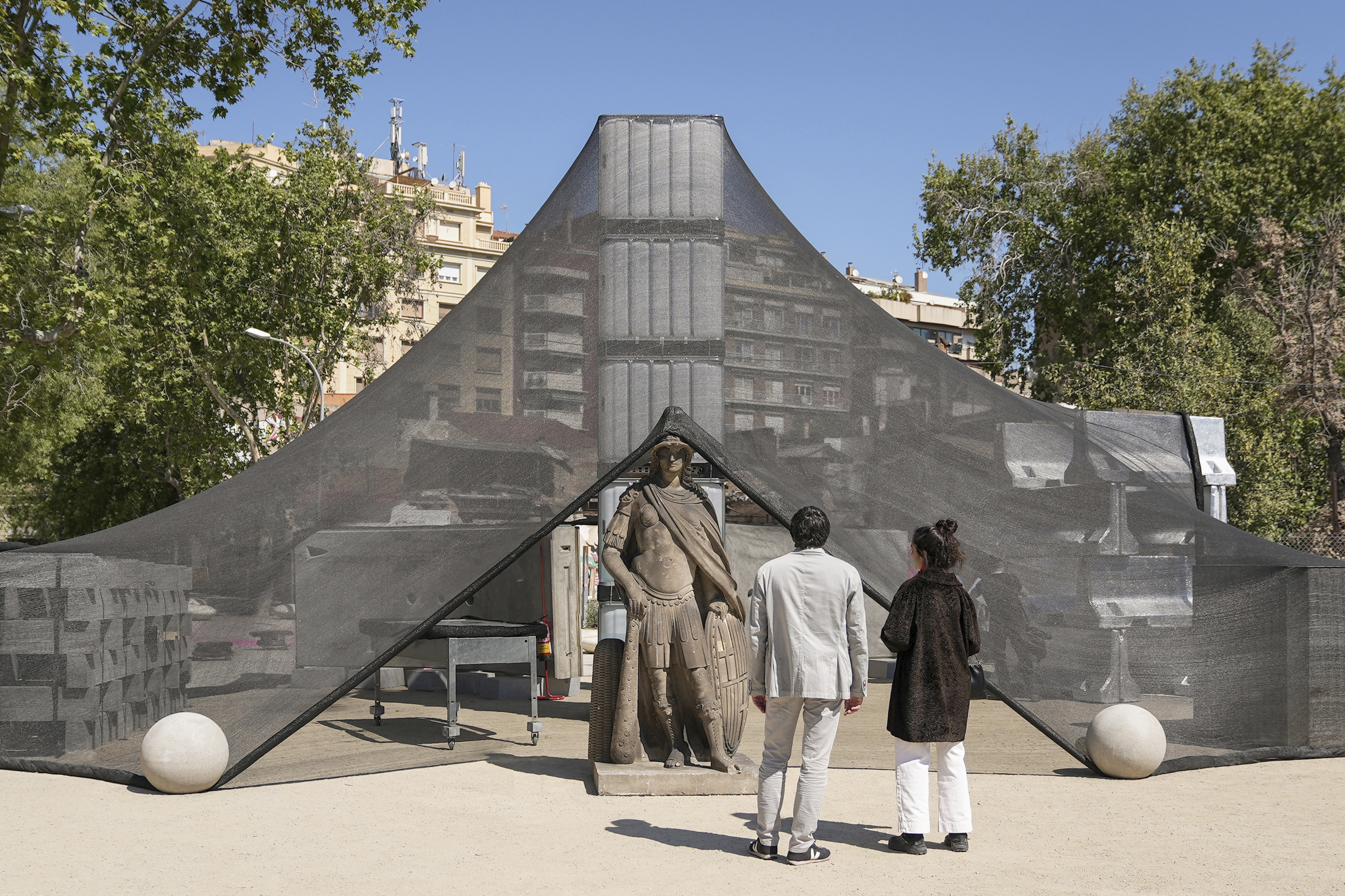 퍼머넌틀리 템포러리 파빌리온은 수직의 구성 요소로 조합됐다. 바르셀로나 외곽 지역의 저장소들을 상징하는 제각각 다른 모양의 구조물이 모여 하나의 파빌리온을 형성한다. 시민들은 파빌리온에서 자유롭게 자재를 가져가거나 자신의 자재를 둘 수 있다. 이로써 워크숍이자 정보 제공 장소의 역할을 하며, 토론을 위한 장소가 되기도 한다. 사용된 재료들은 영구적으로 접착되거나 용접되거나 잘리거나 변형되지 않았기 때문에 전시가 종료된 후 각각 분리되어 원래의 자재 창고로 돌아갈 수 있다. 이를 통해 건축 자재의 순환적 생애와 그들의 미래 재사용을 상징하는 파빌리온이 되었다.