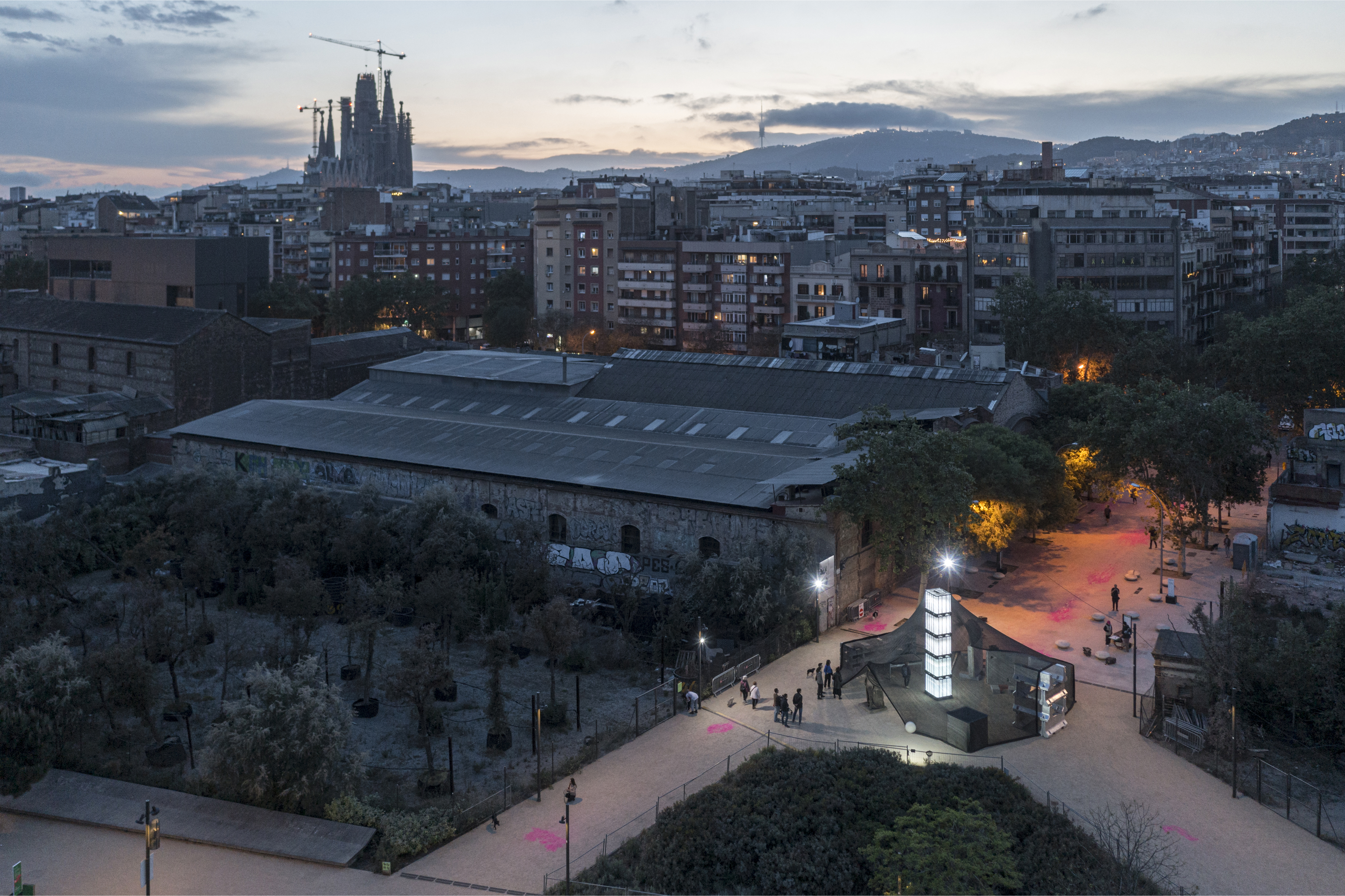 퍼머넌틀리 템포러리 파빌리온은 수직의 구성 요소로 조합됐다. 바르셀로나 외곽 지역의 저장소들을 상징하는 제각각 다른 모양의 구조물이 모여 하나의 파빌리온을 형성한다. 시민들은 파빌리온에서 자유롭게 자재를 가져가거나 자신의 자재를 둘 수 있다. 이로써 워크숍이자 정보 제공 장소의 역할을 하며, 토론을 위한 장소가 되기도 한다. 사용된 재료들은 영구적으로 접착되거나 용접되거나 잘리거나 변형되지 않았기 때문에 전시가 종료된 후 각각 분리되어 원래의 자재 창고로 돌아갈 수 있다. 이를 통해 건축 자재의 순환적 생애와 그들의 미래 재사용을 상징하는 파빌리온이 되었다.