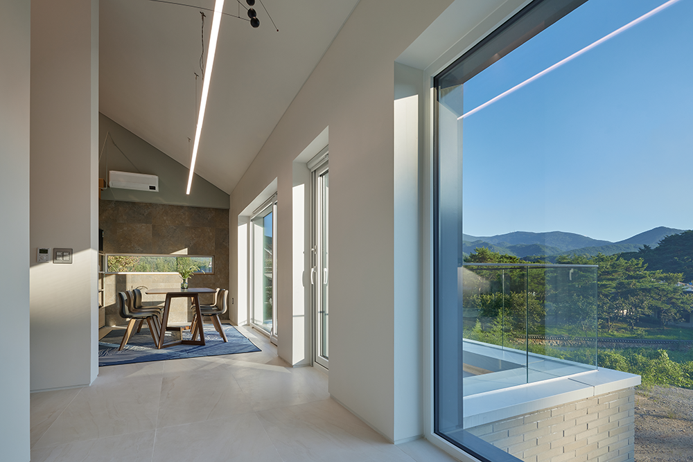 반 층 위에는 아이들의 침실과 다락, 가족실이 있으며 아래에는 부부의 침실이 있다. 동서로 긴 건축물의 남측 입면은 무등산 및 가사문학관의 조망을 담고 채광의 효율을 높이기 위해 큰 개구부 위주로 계획됐다. 또한, 서로 다른 세 개의 층에 각각 외부 테라스를 두었다. 대나무 숲이 우거진 북측면에는 대나무를 차경할 수 있도록 작은 정사각형 형태의 창과 천장이 계획됐다.
