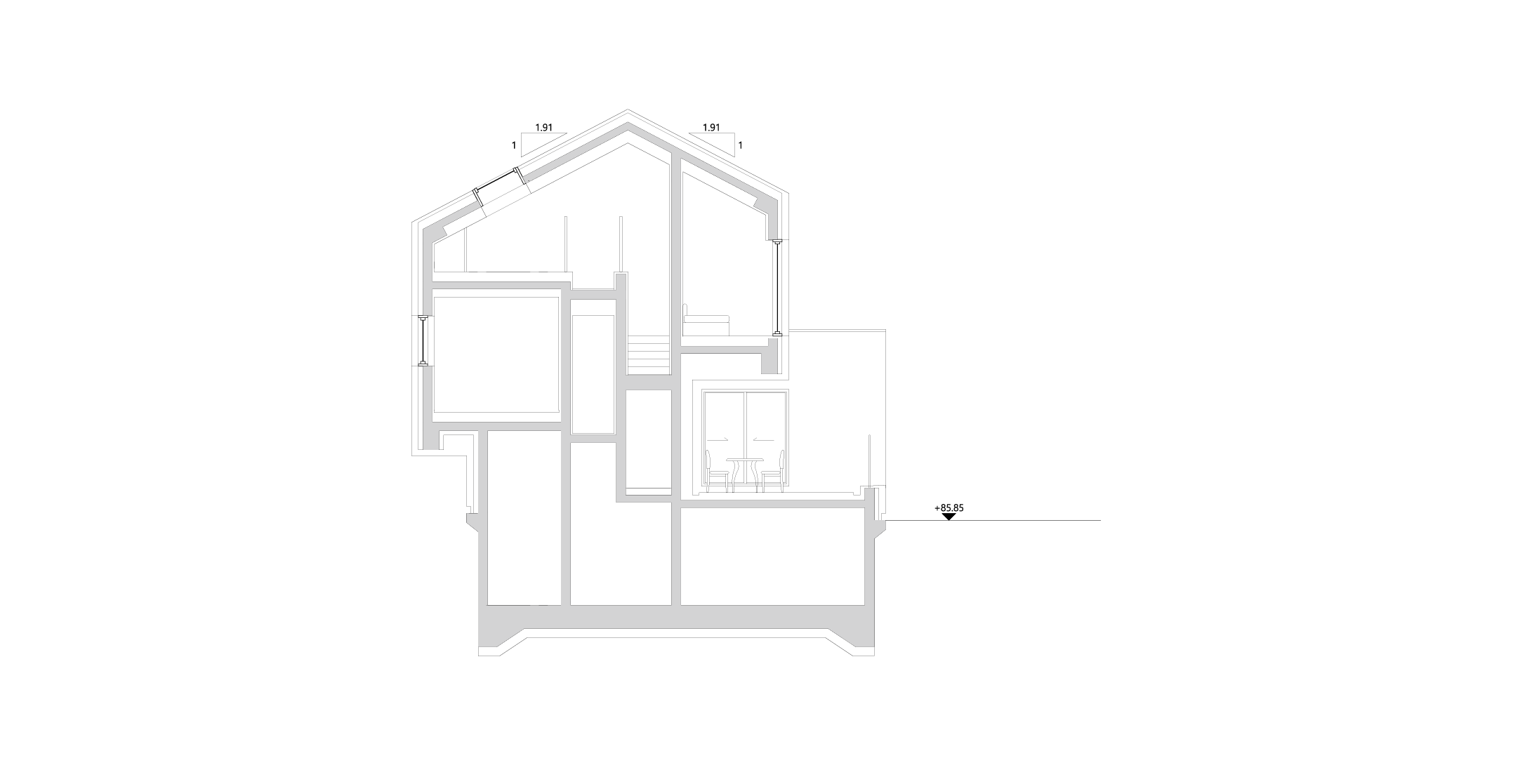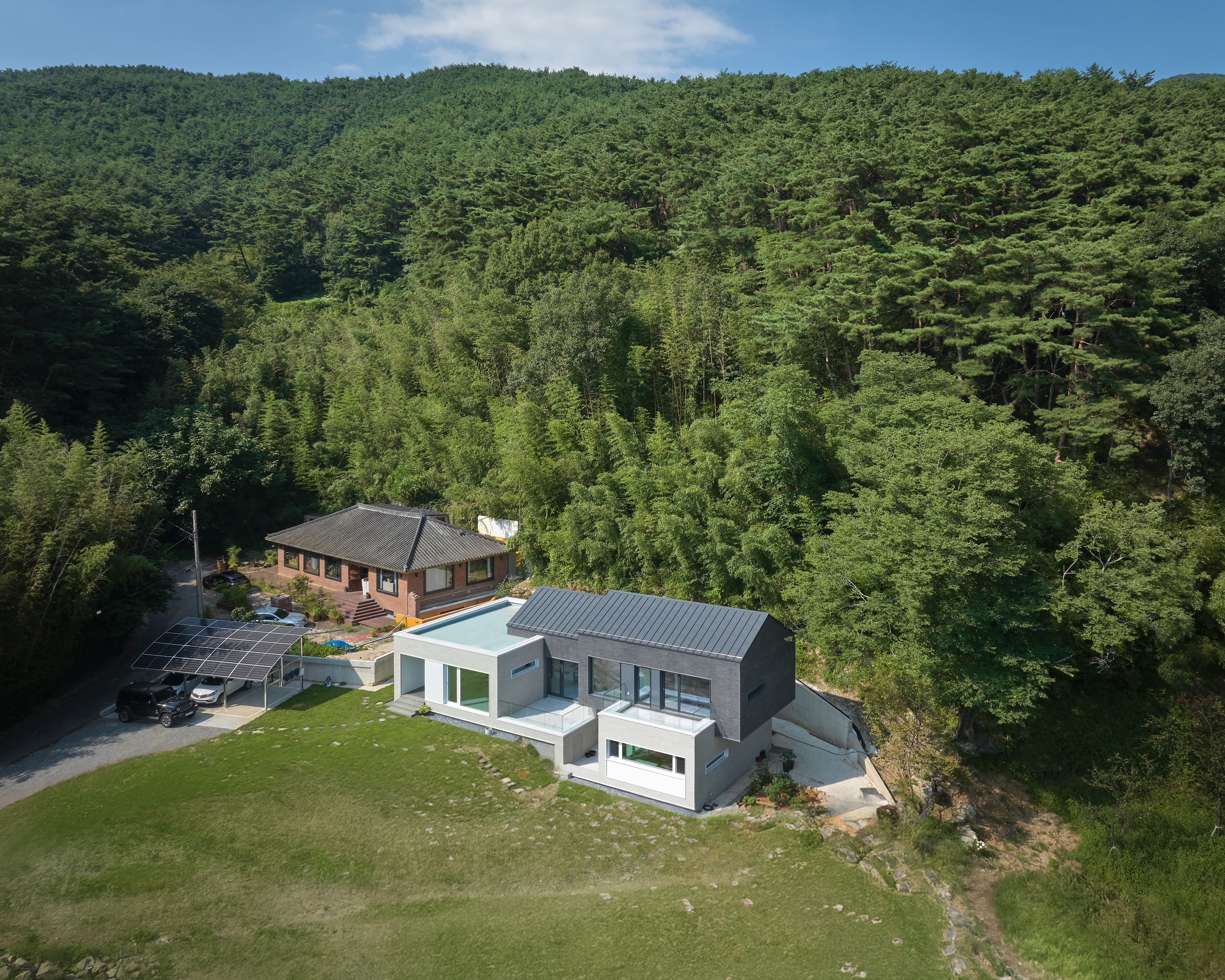 반 층 위에는 아이들의 침실과 다락, 가족실이 있으며 아래에는 부부의 침실이 있다. 동서로 긴 건축물의 남측 입면은 무등산 및 가사문학관의 조망을 담고 채광의 효율을 높이기 위해 큰 개구부 위주로 계획됐다. 또한, 서로 다른 세 개의 층에 각각 외부 테라스를 두었다. 대나무 숲이 우거진 북측면에는 대나무를 차경할 수 있도록 작은 정사각형 형태의 창과 천장이 계획됐다.