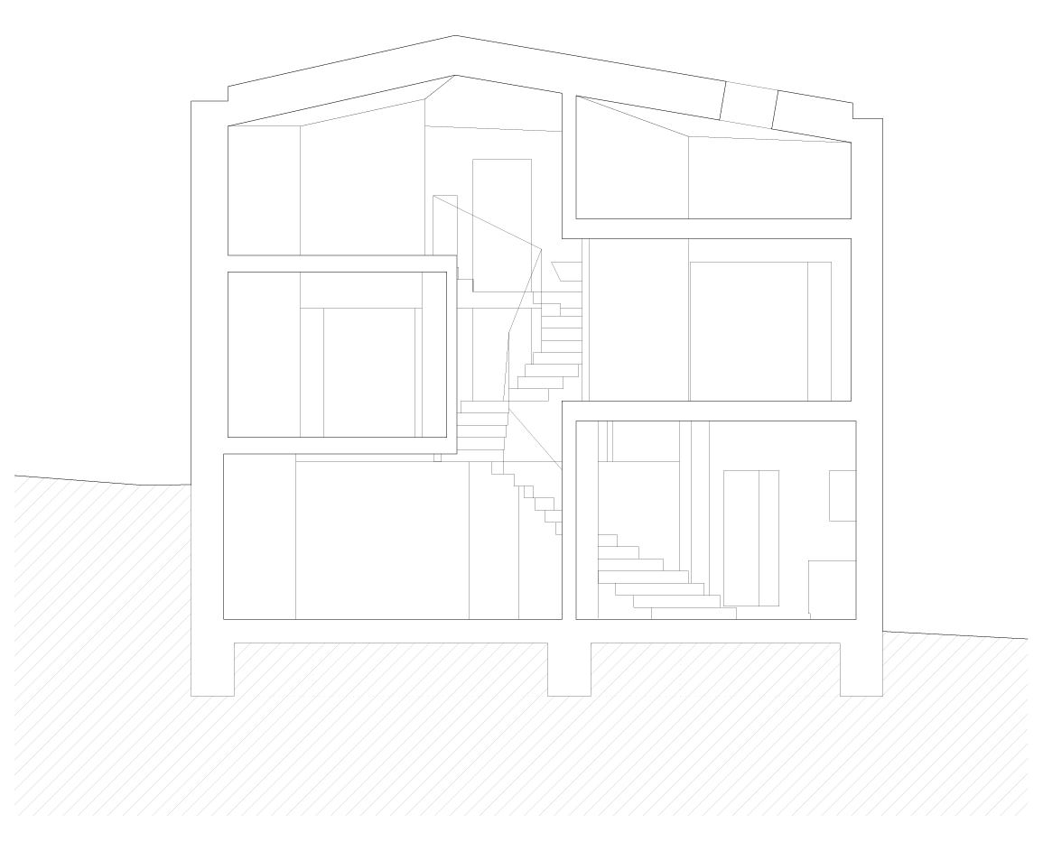 7개 층의 주택은 경사진 대지에 지어진 7층 규모의 건축물이다. 건축물의 매스는 벽과 슬래브로 이루어진 콘크리트 구조로 인해 결정되었다. 평면은 불규칙한 대지를 따라 오각형 형태가 되었는데, 이로 인해 지형과 주변 풍경을 향해 다양한 전망을 가진다. 대지 면적은 한 가족을 위한 주택을 짓기에는 다소 작은 면적이었으나, 7개의 층을 쌓아 가능한 많은 면적과 정원을 남겼다.