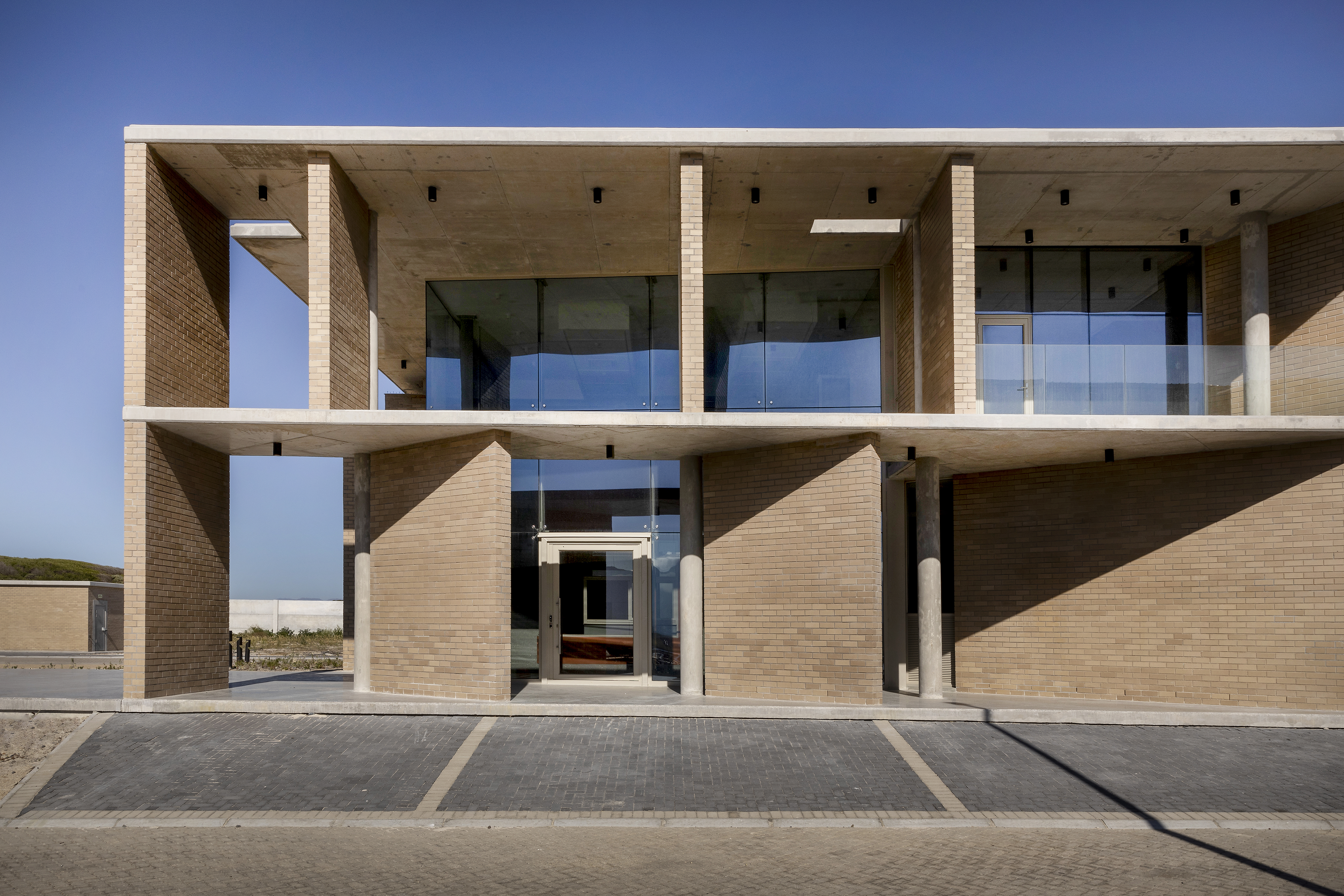 케이프 플랫츠 대수층 관리형 함양(MAR) 시설은 케이프타운의 물 위기에 대응하기 위한 선구적인 해결책으로, 도시의 미래 수자원을 보호하는 방안을 제시한다. 이 시설은 펠리칸 공원의 폴스 베이 자연 보호구역에 위치하며, 처리된 방류수를 식수 수준으로 정화한 후 케이프 플랫츠 대수층에 재주입하는 방식으로 운영된다. 이곳은 평탄한 모래 지형으로, 모래 언덕에 둘러싸여 있으며 강한 남동풍과 부식성이 높은 해안 환경의 영향을 받는다. 이러한 환경적 조건은 시설 설계에 중요한 요소로 작용한다. 이 프로젝트의 핵심은 케이프 플랫츠 대수층을 보존하고 보충하는 과정이다. 처리된 방류수를 정화하여 대수층에 재주입함으로써 수위를 안정적으로 유지한다. 이 과정은 4개의 직선형 정수 건물을 통해 이루어지며, 건물들은 인공 경사면을 따라 배치되어 중력의 흐름을 이용한 자연적인 정수 시스템을 형성한다. 가장 높은 곳에 있는 정수 건물에서 정화가 시작되며, 물은 차례로 낮은 곳으로 흘러가면서 정화 과정을 거친다. 마지막 정수 건물에서는 최종적으로 깨끗해진 물이 대수층으로 되돌아간다. 각 정수 건물의 동서 방향 정면은 각진 벽돌 핀과 남향의 좁은 창문으로 구성되어 있어 빛을 효과적으로 걸러내고 조류 발생을 방지하는 역할을 한다. 이 외벽은 단순한 필터 역할을 넘어, 정수 과정을 건축적 상징 요소로 승화시키는 디자인적 특징을 갖는다.