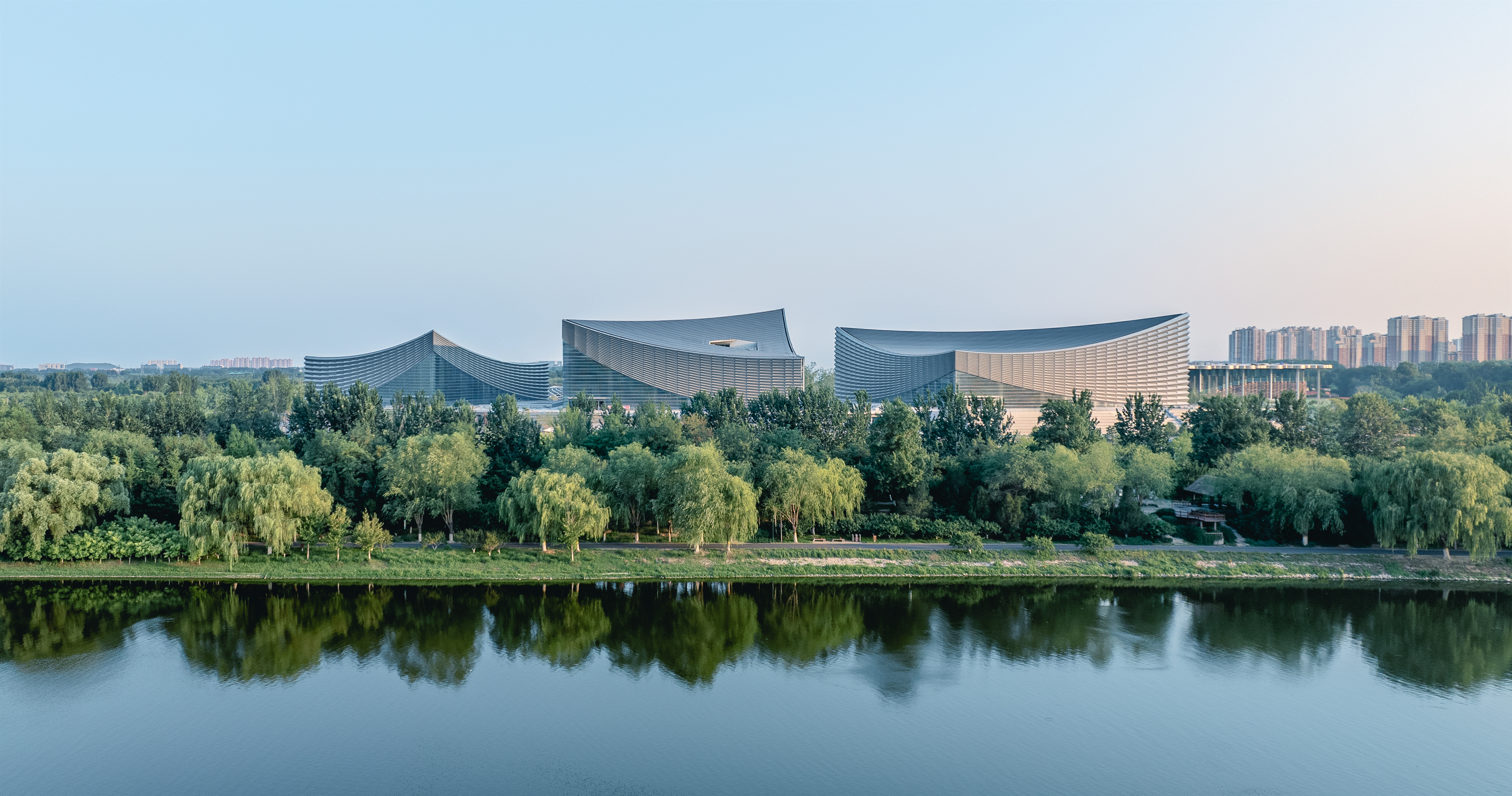 건축물의 매스는 퉁저우 지역에서 전통적으로 이루어졌던 운송 사업의 선박과 퉁저우 지역의 미래를 상징하는 랜턴을 모티브로 했다. 입면에서 접혀 올려지듯 드러난 유리창은 공연을 시작할 때 무대의 커튼이 열리는 모습을 연상시킨다.