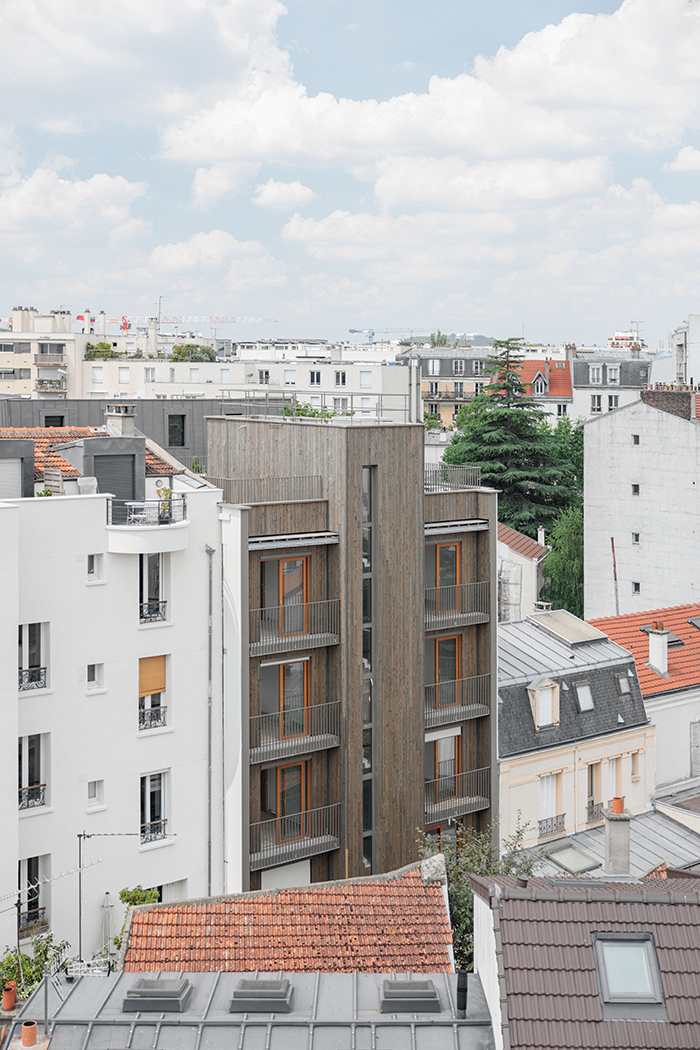 17 루에 데스 콰트레-케미네에스 레지던스는 지상층의 두 개의 출입구를 통해 상업 공간과 주거 공간이 각각 독립적으로 형성된 건축물이다. 대지의 후면은 조경을 통해 연결성을 유지했으며, 정원을 마주한 계단은 풍부한 자연광을 확보할 수 있도록 설계됐다. 도로변을 향한 창문은 남서향으로 빛을 최대한 받을 수 있도록 사선으로 설계됐으며, 침실은 남동향으로 배치되어 있어 햇볕이 잘 드는 발코니와 연결된다. 이중 향을 고려한 디자인 덕분에 각 유닛에서는 풍부한 일광과 자연 환기를 확보할 수 있다.