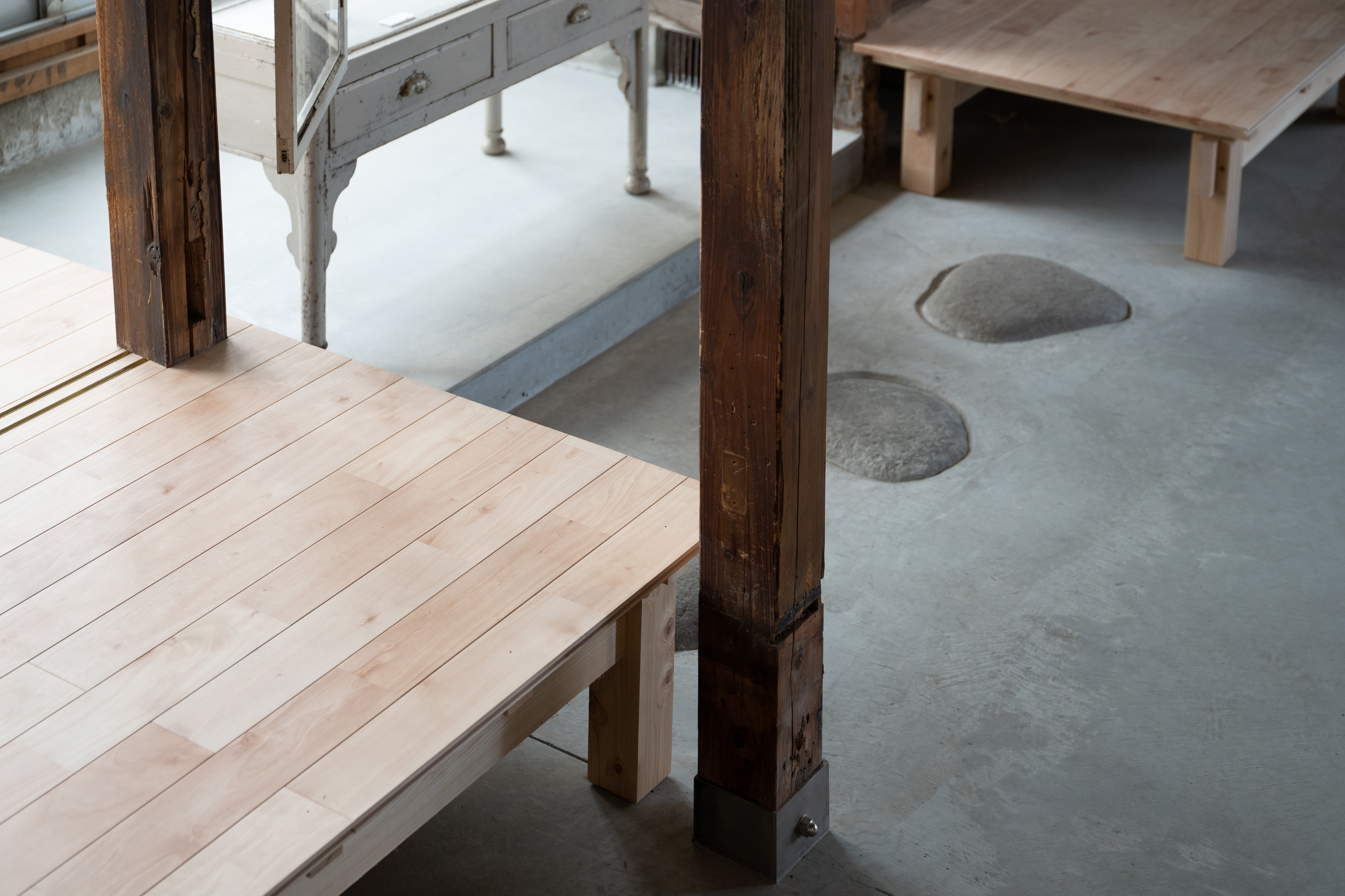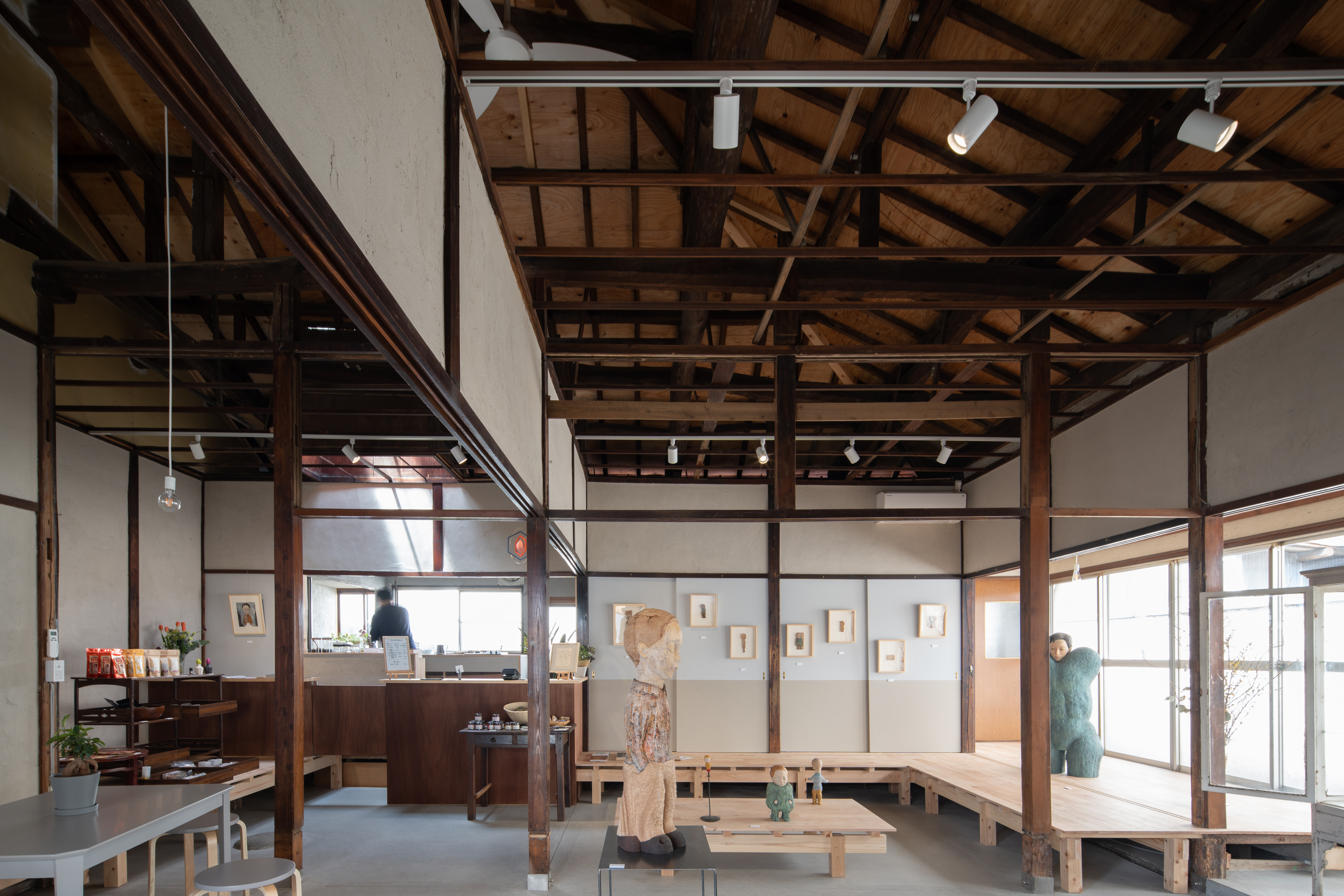 우리는 오래된 민가의 잠재력을 믿으며, 건축 고유의 구조를 드러내고 유연하게 활용 가능한 공간으로 탈바꿈시켰다. 내부의 문틀과 칸막이를 걷어내면서 넓은 전시 공간이 생겨났고, 지붕의 강한 목구조는 오래된 가옥 특유의 세월의 깊이를 전달한다. 이미 충분히 매력적인 공간이었기에 불필요한 손을 대기보다는, 뒤틀린 천장과 낡은 다다미 바닥을 철거하는 것만으로 대부분의 계획을 실현할 수 있었다.