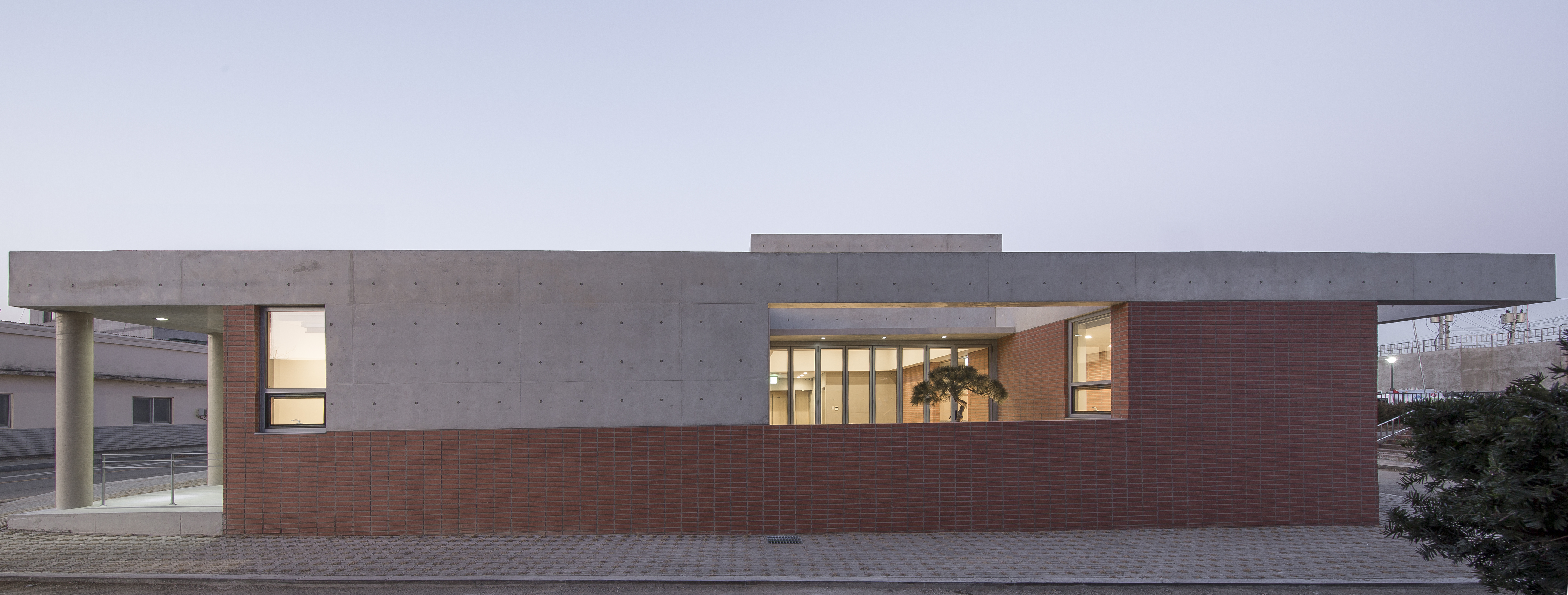 건물은 단층 구조지만, 각 부분의 높이를 달리하여 외관에 리듬을 부여하고, 내부에서는 천장 고저차를 통해 각기 다른 공간감을 경험할 수 있도록 했다. 도로와 맞닿은 전면에는 필로티 공간을 마련해 도시의 흐름을 건물 안쪽으로 끌어들이며, 그 자리에 설치된 벤치는 이웃들이 잠시 머물 수 있는 새로운 도시의 일상 공간으로 작동한다.