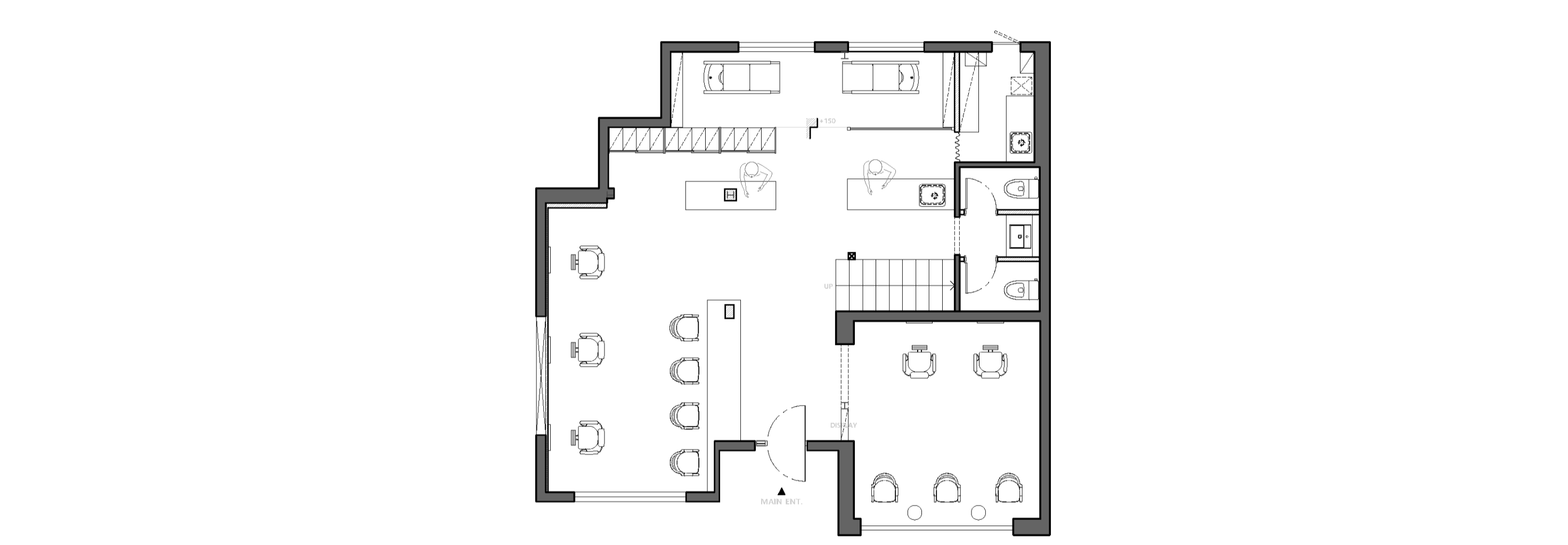 이 프로젝트는 오랜 세월을 간직한 단독주택을 개조한 형태로, 과거의 흔적과 현재의 디자인이 조화를 이루도록 설계되었다. 철거 과정에서 드러난 조적 기둥은 의도적으로 남겨졌으며, 이를 감싸는 맞춤 테이블이 함께 배치되어 서로 다른 물성의 공존을 시각적으로 드러낸다. 이러한 디테일은 브랜드가 지향하는 ‘엮임’의 개념을 공간 속에 자연스럽게 녹여낸다.