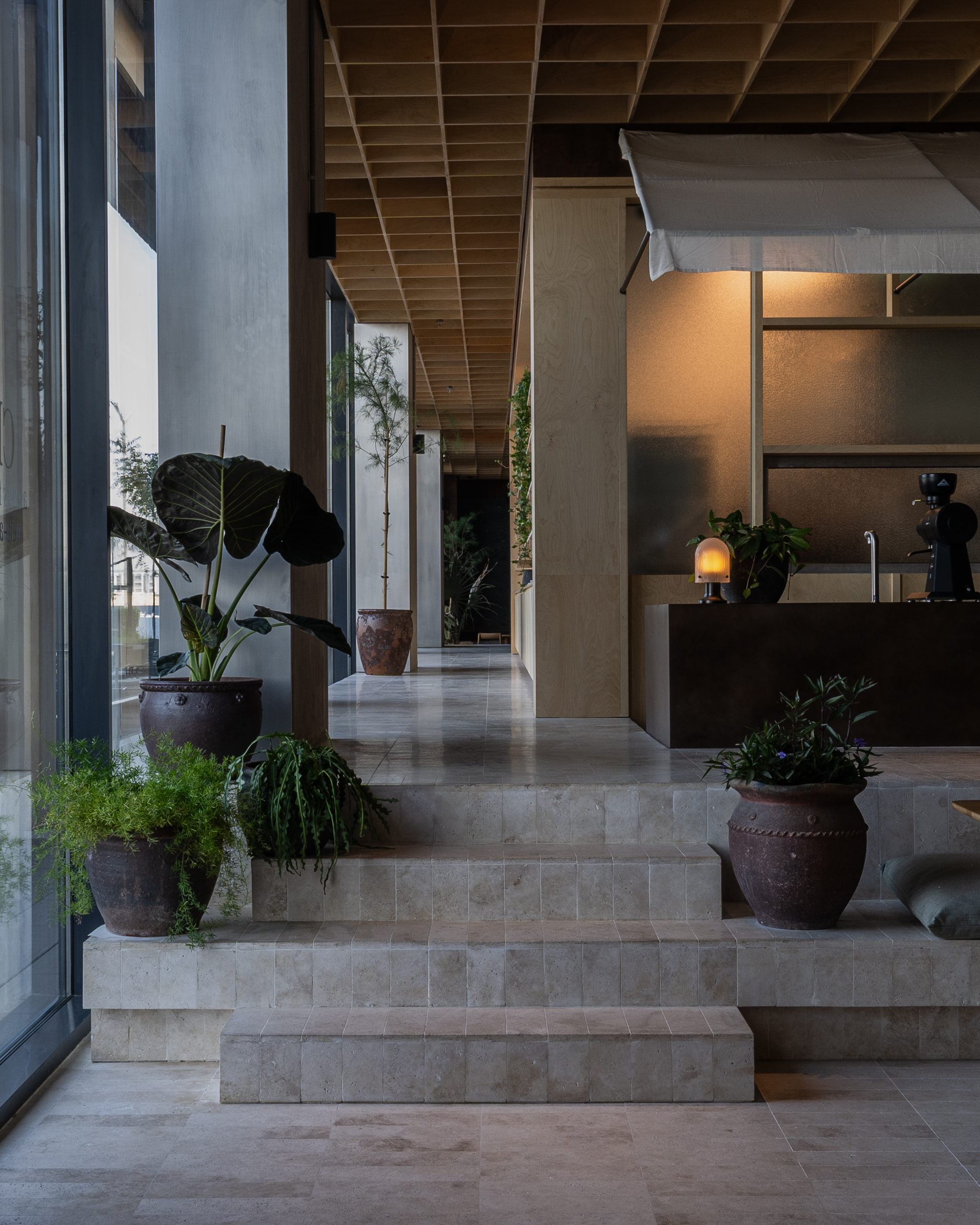 실내와 실외는 유기적으로 연결되어 있으며, 현지에서 재배된 식물을 활용한 녹지 공간은 도시 안에서도 자연의 평온함을 느끼게 한다. 마감재 선택 역시 대비의 미학을 중심으로 이뤄졌다. 따뜻한 목재와 자연 소재는 차가운 콘크리트, 철재와 조화를 이루며 절제된 고급스러움을 완성한다. 곳곳에 배치된 그린 마블 같은 독특한 재료는 디자인에 깊이를 더하고, 시각적 리듬을 형성한다.