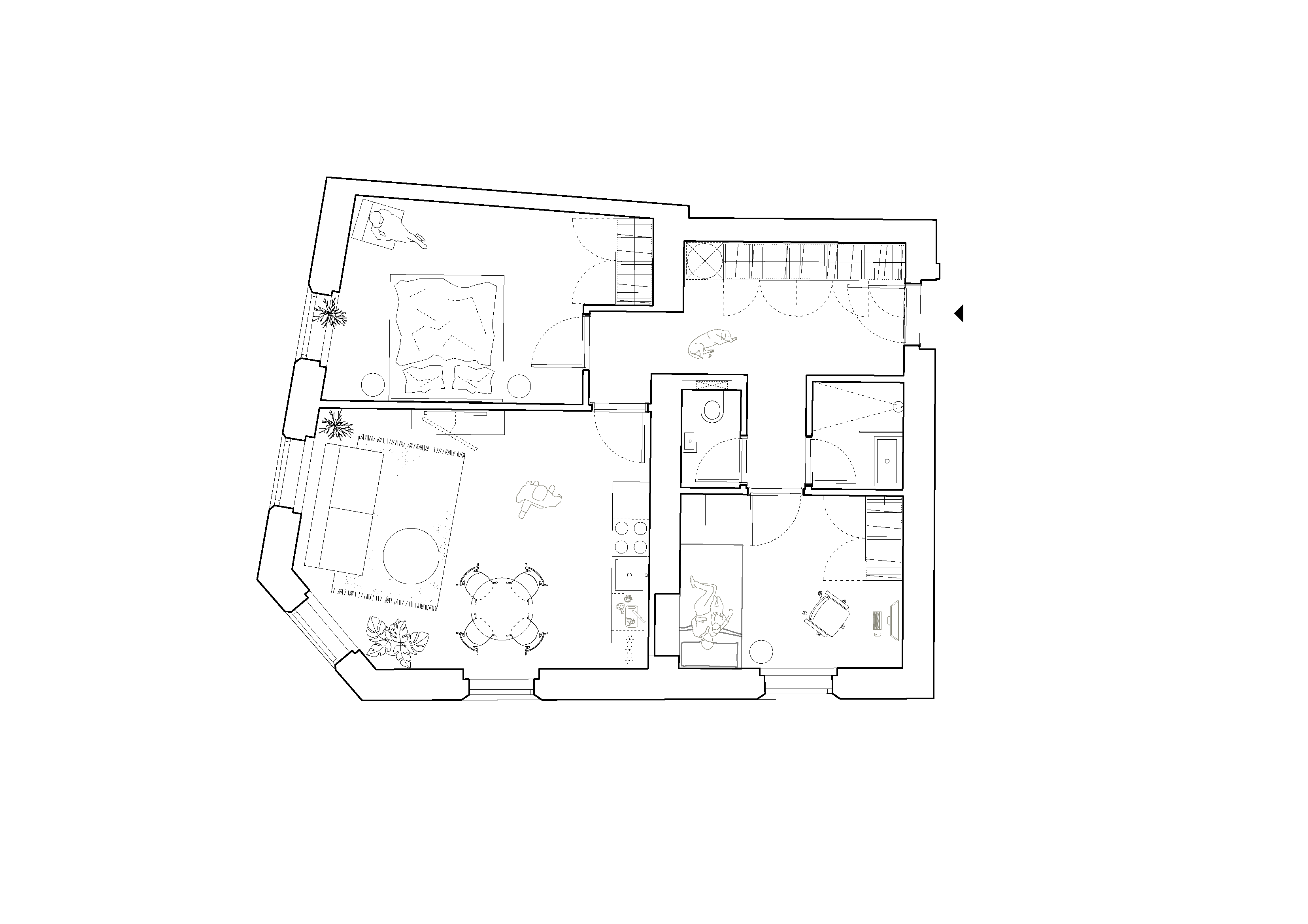각 세대는 서로 다른 평면 구조를 가지고 있다. 일부 유닛에는 발코니가 추가되었고, 1층과 2층 사이에는 독립 진입이 가능한 중층형 유닛이 있다. 가장 큰 변화는 다락층에서 이루어졌으며, 기존 로프트 공간은 4개의 유닛으로 재구성되었다. 자연 채광을 고려한 창 설계와 라운드형 채광 웰이 도입되었다.
