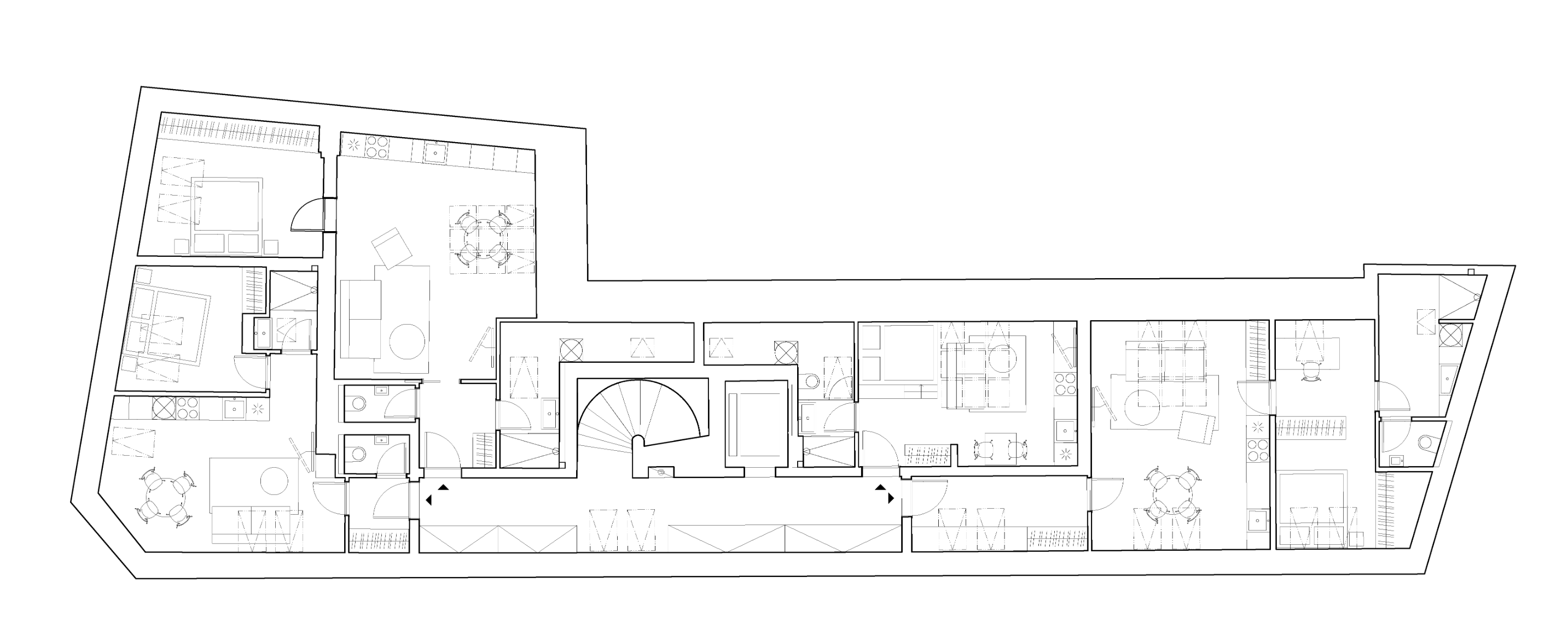 각 세대는 서로 다른 평면 구조를 가지고 있다. 일부 유닛에는 발코니가 추가되었고, 1층과 2층 사이에는 독립 진입이 가능한 중층형 유닛이 있다. 가장 큰 변화는 다락층에서 이루어졌으며, 기존 로프트 공간은 4개의 유닛으로 재구성되었다. 자연 채광을 고려한 창 설계와 라운드형 채광 웰이 도입되었다.