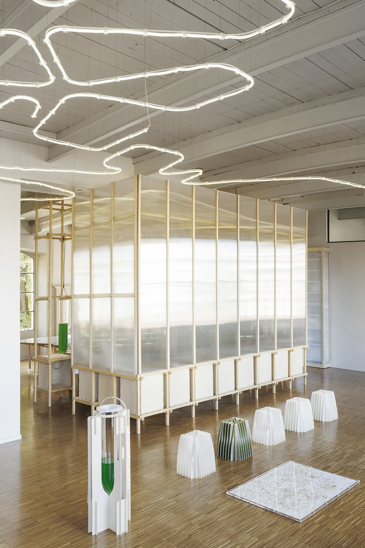Design Apothecary는 이탈리아 토리노에 위치한 생물 친화적 실험 공간이다. 이 프로젝트는 19세기 산업 유산을 창의적 허브로 전환하는 과정에서 태어났다. 중심에는 17개의 광합성 반응기로 구성된 공기 정화 조류 정원이 있으며, 이는 생명 실험실과 약용 식물 도서관이 딸린 발코니와 연결된다. 인접한 공간에는 바이오필릭 디자인 제품과 가구를 전시하는 드로잉룸과 게스트룸이 자리잡고 있다.