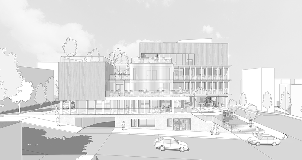 - 기존 대지의 고저차를 이용하여 인접도로에서 접근이 용이한 다양한 보행자 동선 계획