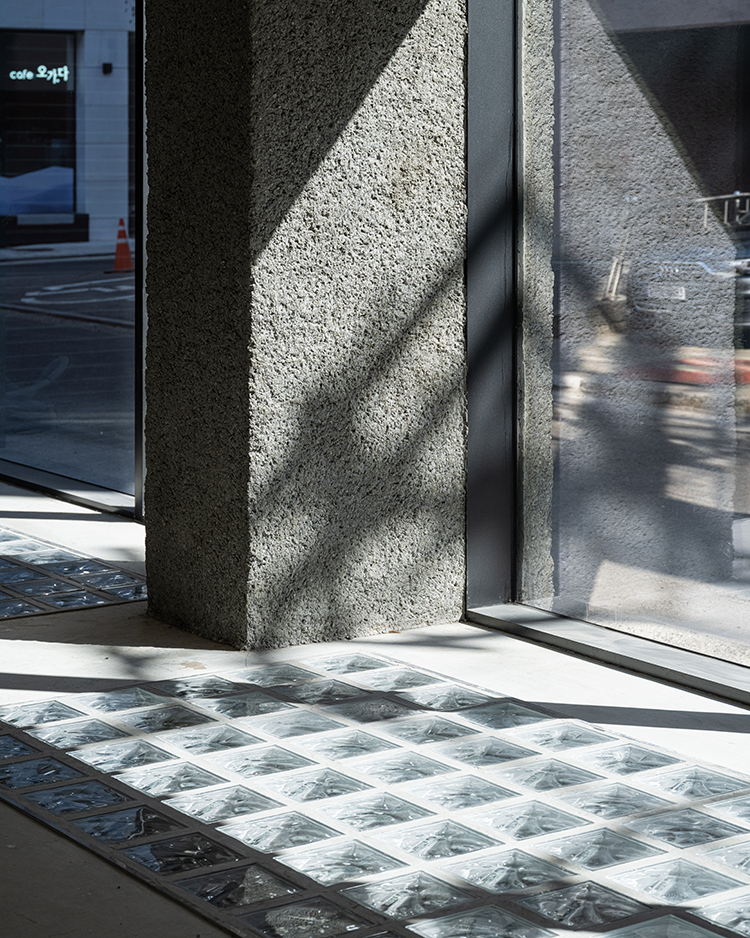 계단실은 전면 철거 후 유효 폭을 확보하여 공간의 동선을 개선했으며, 장애인용 엘리베이터를 설치하여 건축의 보편적 접근성을 강화했다. 또한, 1층 바닥 일부를 유리블록으로 마감하여 어둡고 폐쇄적이었던 지하 공간에 자연광과 조명이 확산될 수 있도록 했다.