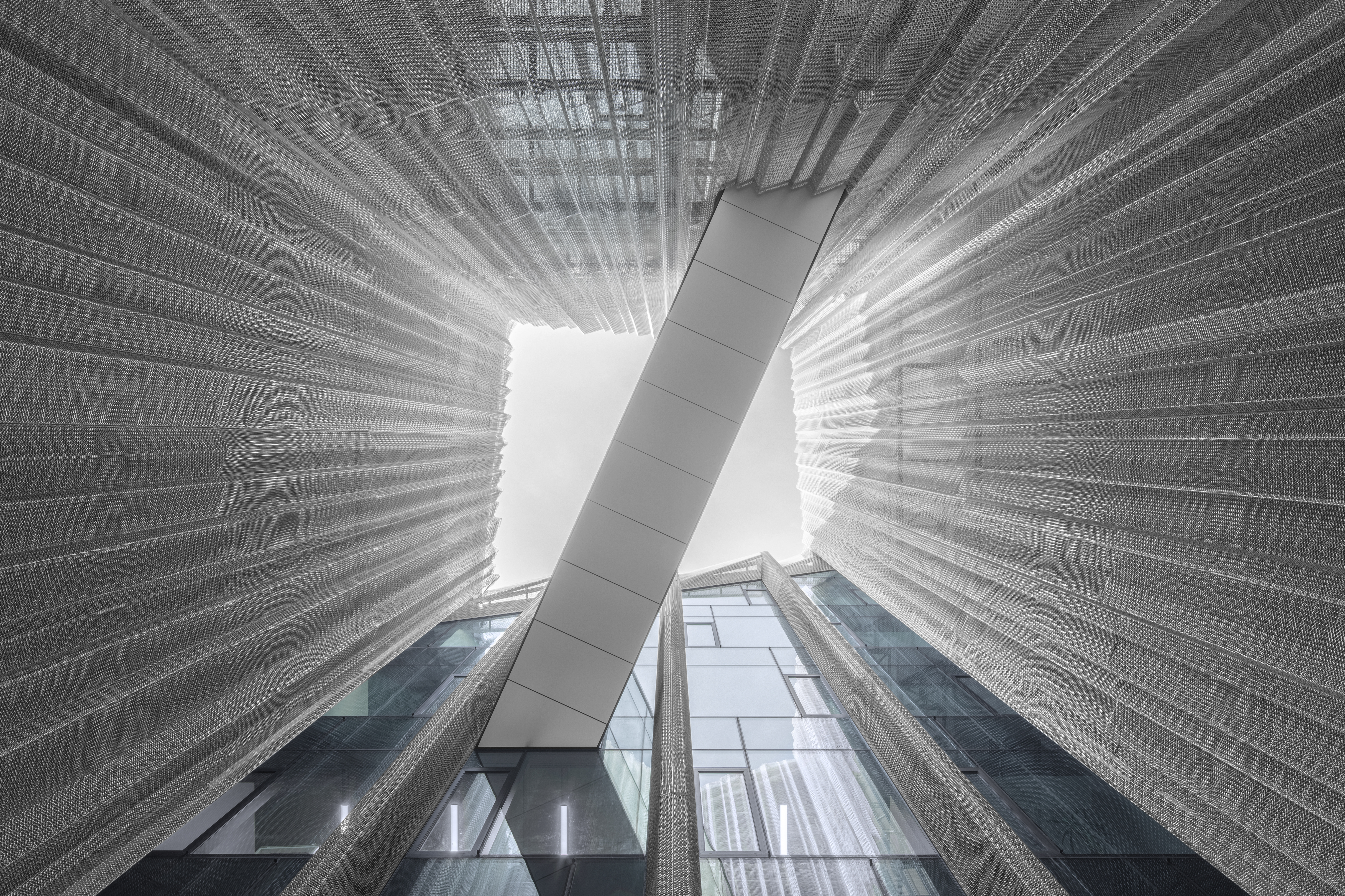 건물 내부에는 조형적인 두 개의 나선형 계단이 배치되어 있는데, 단순한 층간 연결 수단을 넘어 창의적인 아이디어 교류의 상징적 공간이 된다.