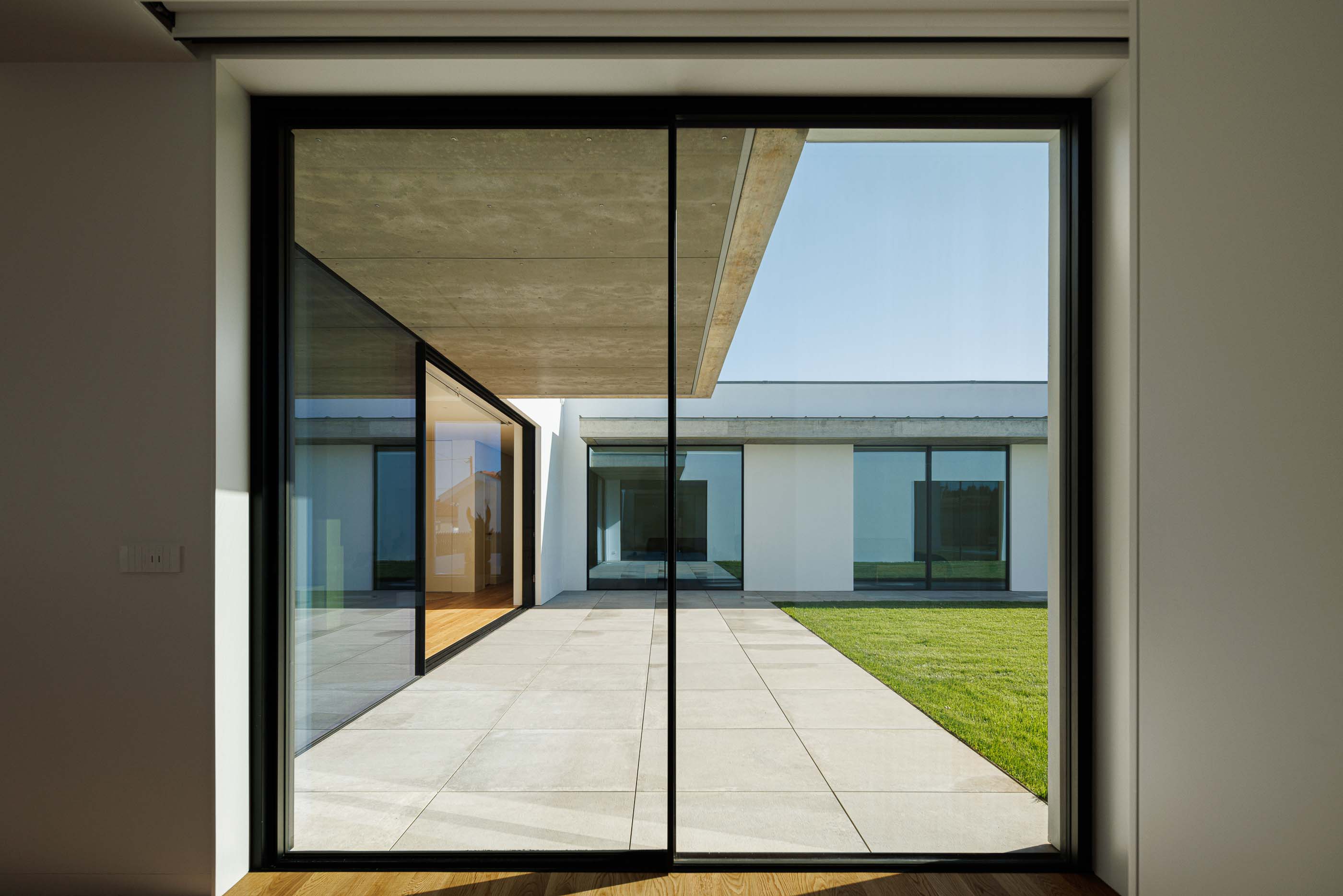 CS 하우스는 삼각형 대지 위에 지어진 젊은 가족을 위한 주택으로, 일상의 다양한 활동 속에서 가족이 어떻게 공간을 사용하는지를 합리적으로 탐색한 결과물이다. 포르투갈 아구에다 외곽의 준농촌 단독주택 지역에 위치한 이 대지는 도로보다 약간 높은 삼각형 형태이며, 그 중심에 정사각형 평면을 배치함으로써 단순한 직교형 매스를 형성하였다. 이 매스는 빛을 담는 용기로 기능하며, 특정한 위치에만 창을 내어 절제된 외관을 보인다.