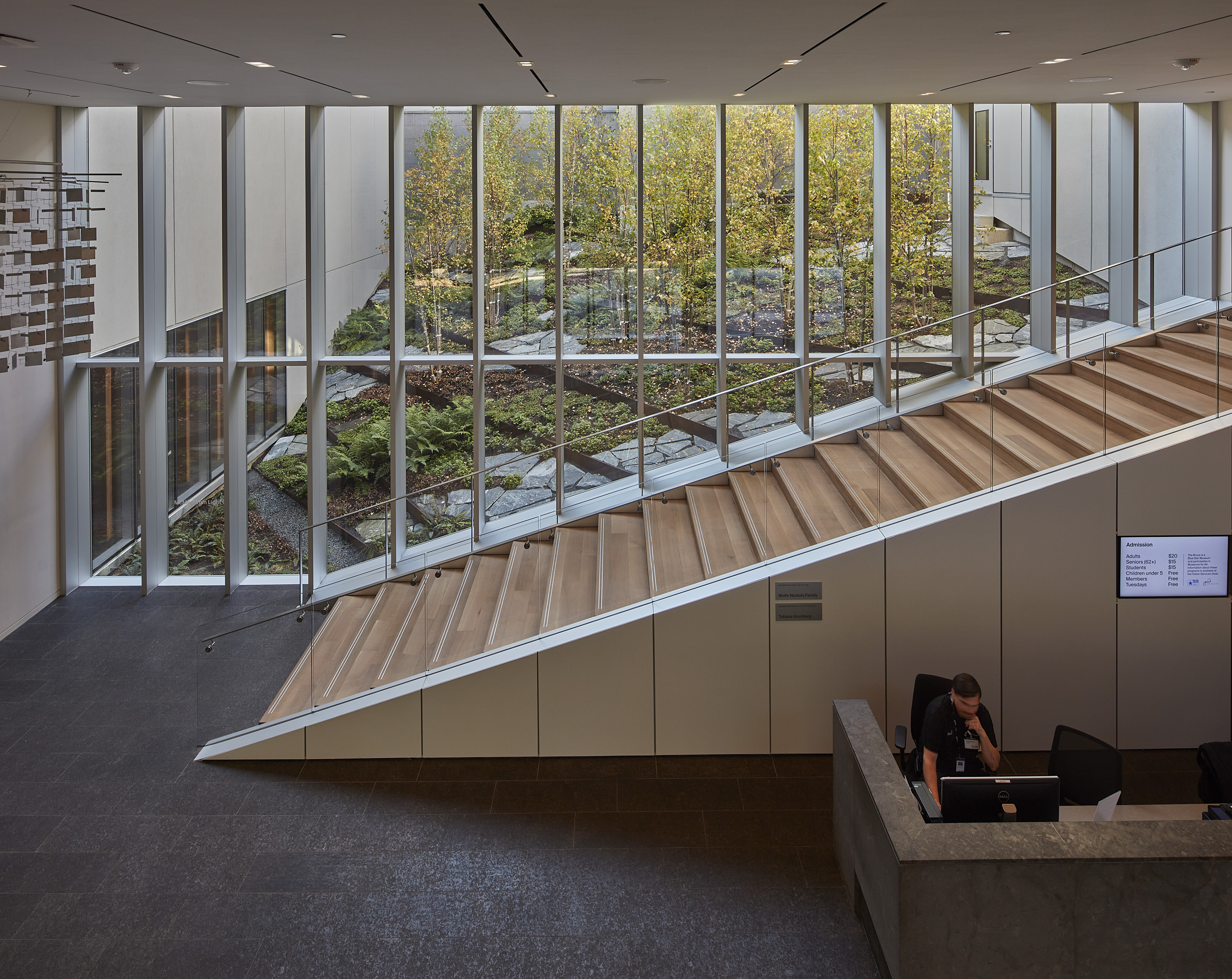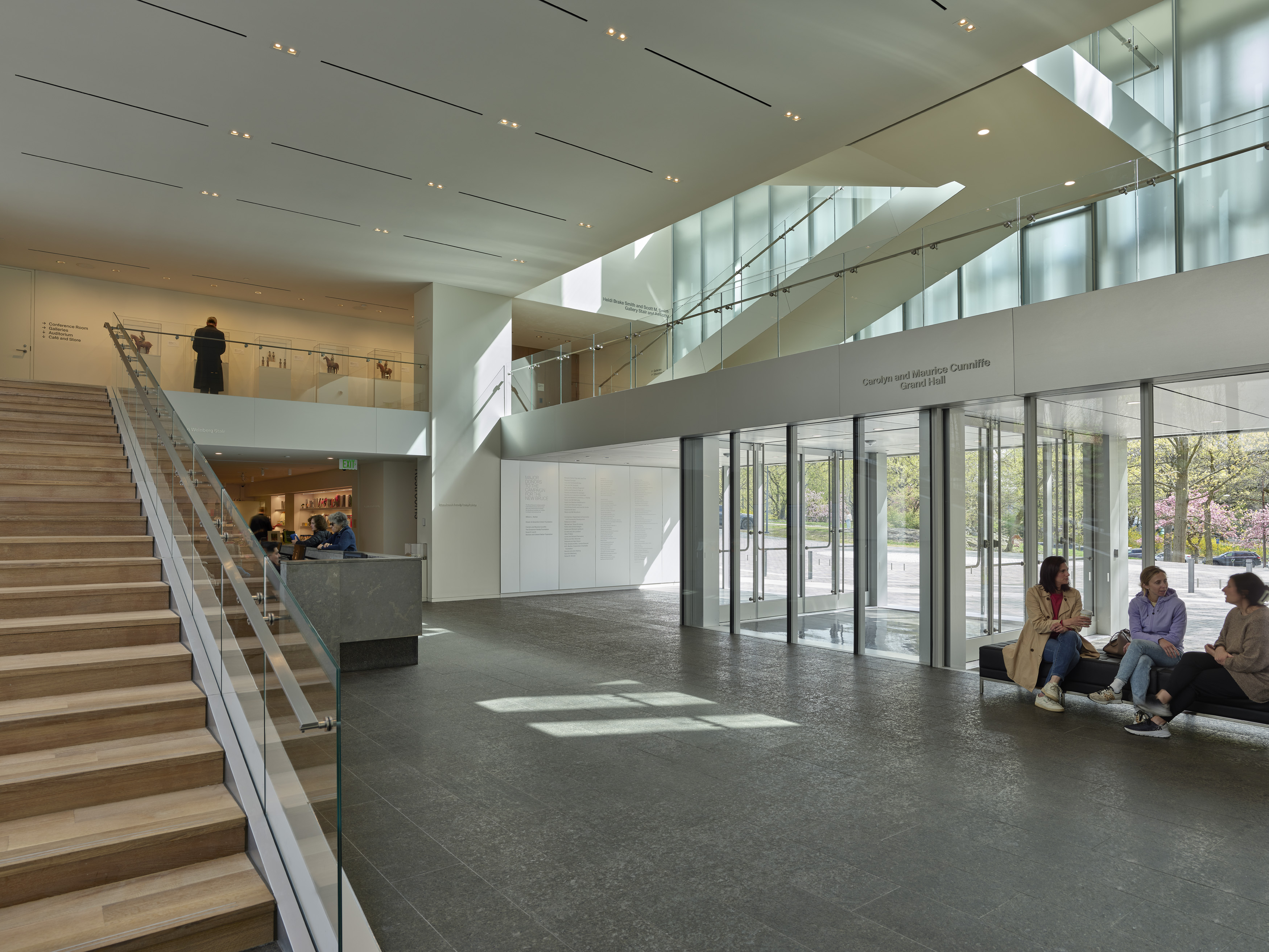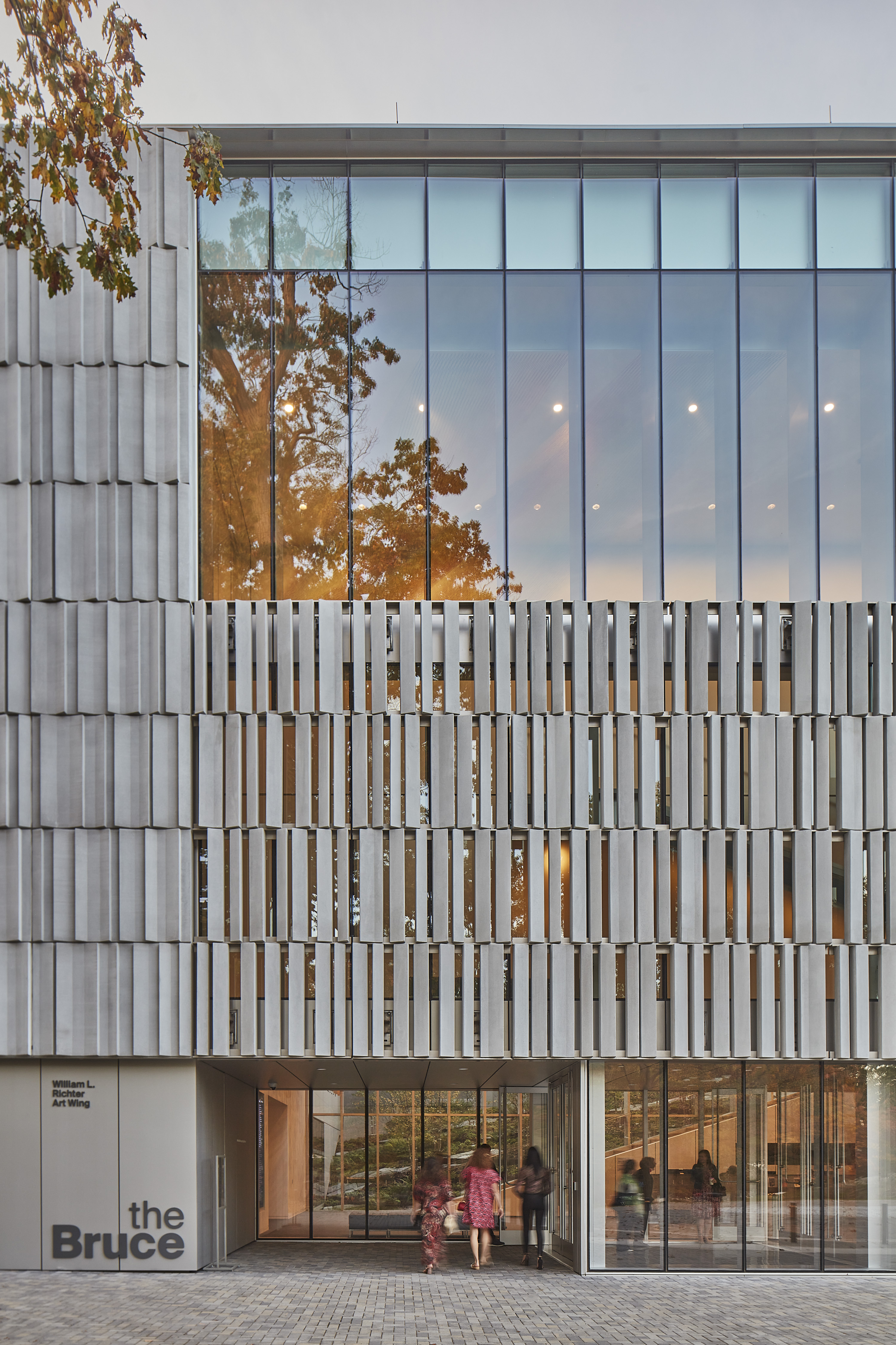 2층 높이의 로비, 카페, 기프트숍은 하나로 이어진다. 새롭게 마련된 강당은 지역 프로그램, 축하 행사, 공개 강연 및 리셉션을 위한 중심 공간으로 활용된다. 또한, 새로운 상설 및 기획 전시 공간은 박물관이 전시를 유치할 수 있는 공간으로, 시민들의 교육 및 참여 기회를 넓힌다. 브루스 뮤지엄은 심미성과 성능을 조화시킨 설계를 통해 에너지 효율 건축물로 거듭났다. ‘레이스 월(Lace Wall)’이라 불리는 외피는 구조적 열 차단재를 사용해 열교현상을 방지하며, 프리캐스트 부재로 구성되어 기밀성과 에너지 효율을 동시에 확보한다. 이처럼 박물관의 기존 에너지 소비를 대폭 절감했을 뿐 아니라, 장기적으로 성능 개선 가능성을 고려한 다양한 방안을 제시하여 지속 가능한 미래를 위한 기반을 마련했다.