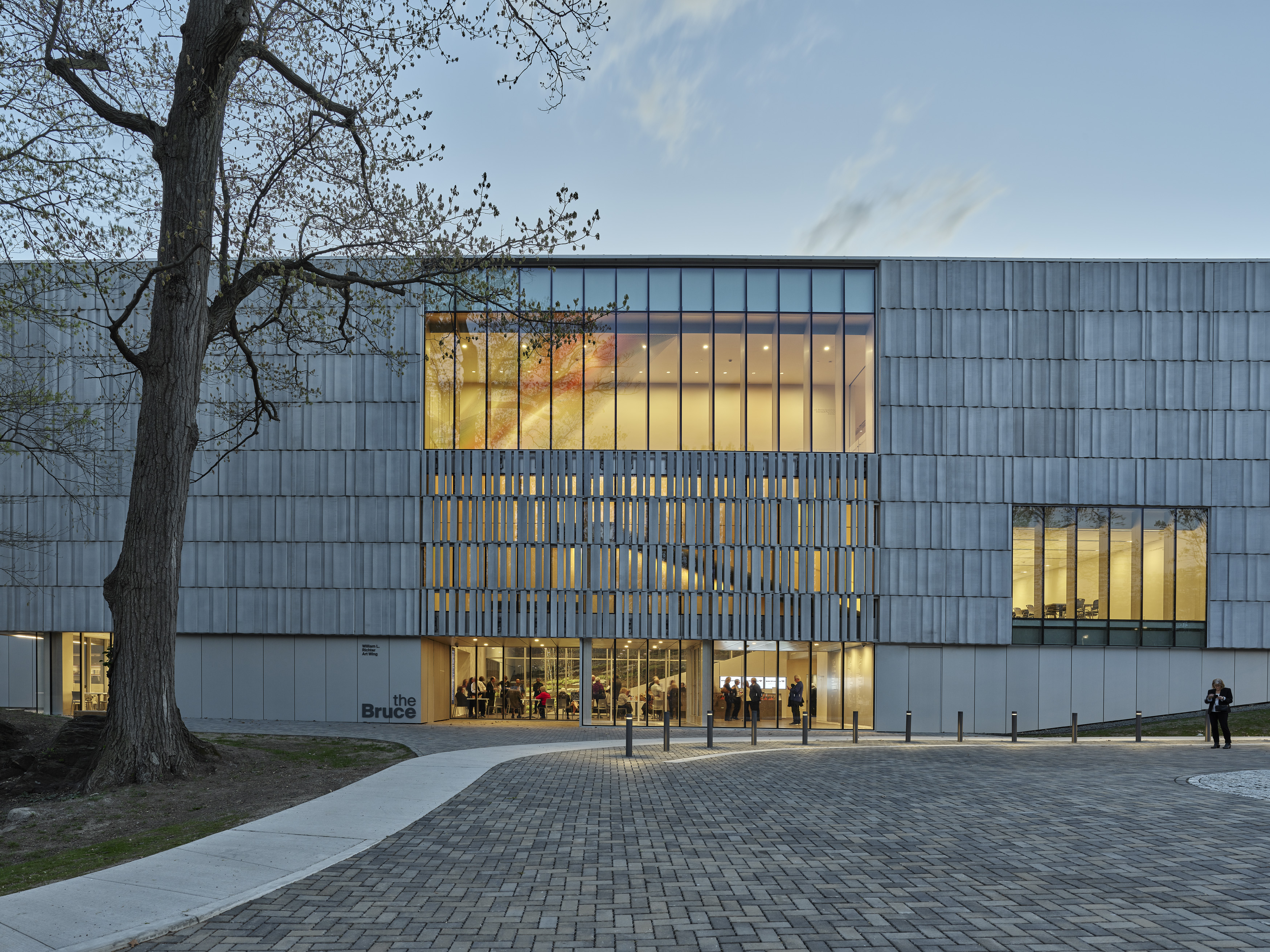 2층 높이의 로비, 카페, 기프트숍은 하나로 이어진다. 새롭게 마련된 강당은 지역 프로그램, 축하 행사, 공개 강연 및 리셉션을 위한 중심 공간으로 활용된다. 또한, 새로운 상설 및 기획 전시 공간은 박물관이 전시를 유치할 수 있는 공간으로, 시민들의 교육 및 참여 기회를 넓힌다. 브루스 뮤지엄은 심미성과 성능을 조화시킨 설계를 통해 에너지 효율 건축물로 거듭났다. ‘레이스 월(Lace Wall)’이라 불리는 외피는 구조적 열 차단재를 사용해 열교현상을 방지하며, 프리캐스트 부재로 구성되어 기밀성과 에너지 효율을 동시에 확보한다. 이처럼 박물관의 기존 에너지 소비를 대폭 절감했을 뿐 아니라, 장기적으로 성능 개선 가능성을 고려한 다양한 방안을 제시하여 지속 가능한 미래를 위한 기반을 마련했다.