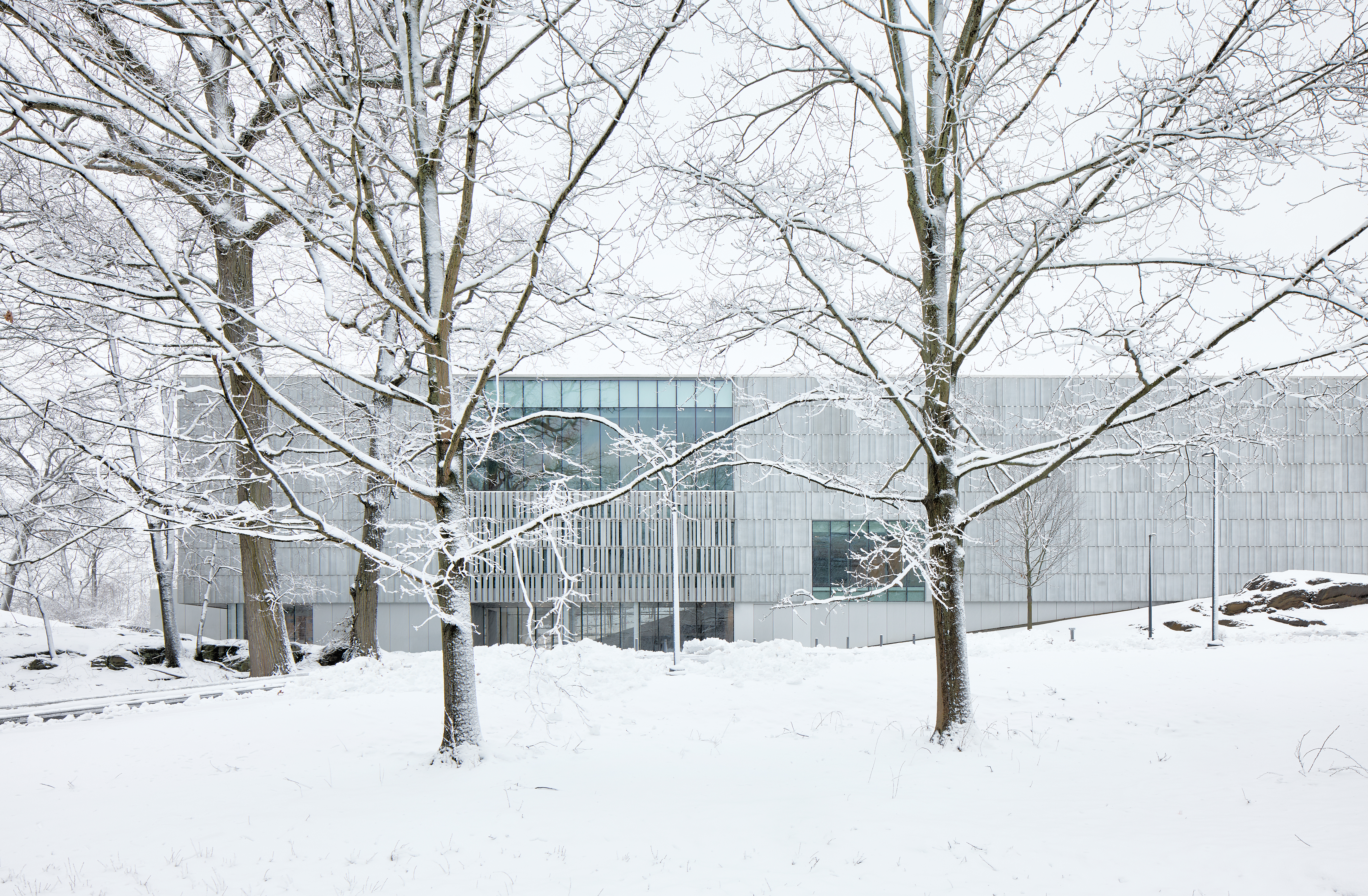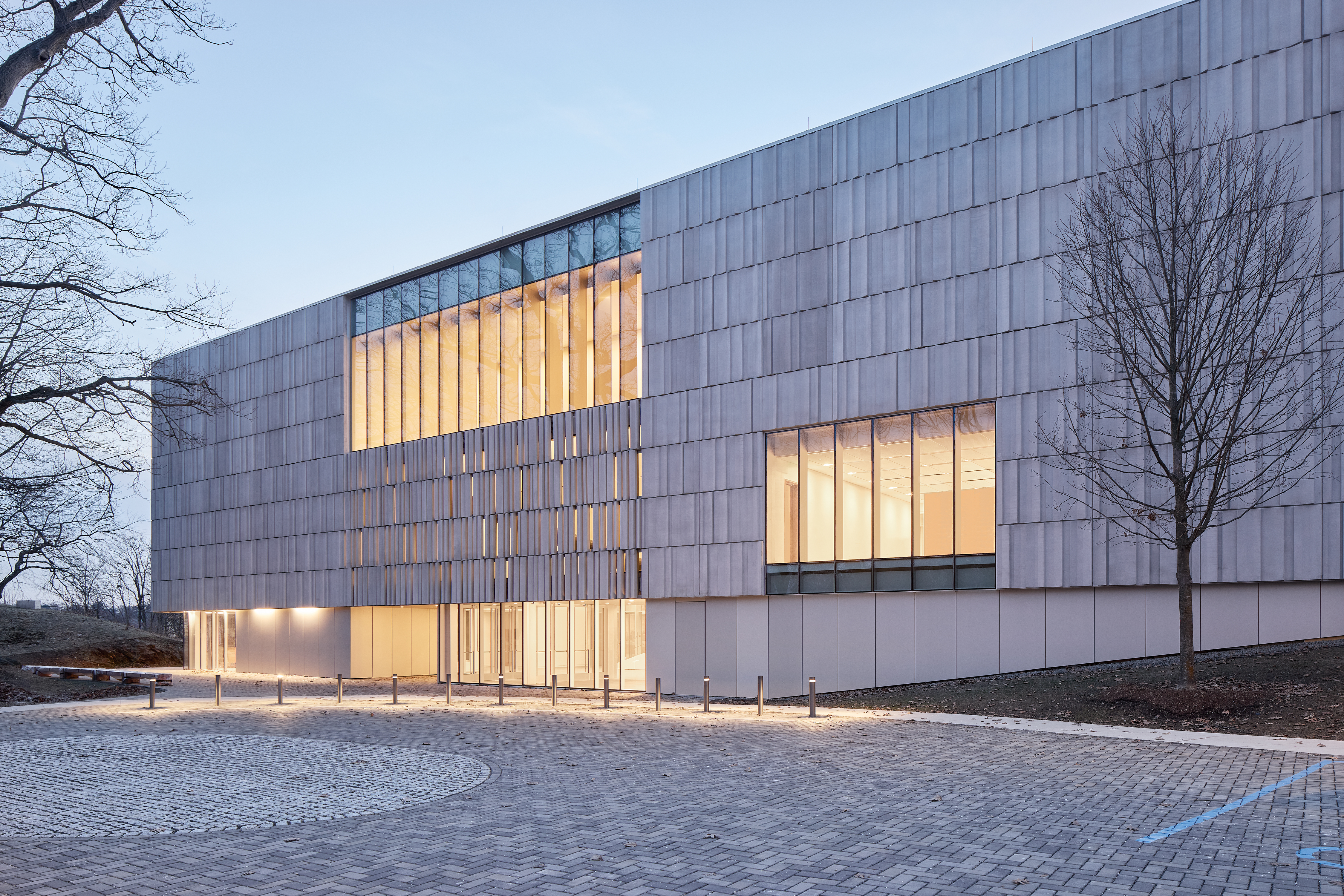 코네티컷 해안가의 채석장을 모티프로 한 섬세한 줄무늬의 석재를 유리와 함께 사용하여 커튼 월 입면으로 계획했다. 이 외벽은 하루 일과 동안 햇빛의 움직임에 따라 외관의 다양한 변화를 보여주며, 계절에 따라 시시각각 변하는 생동감을 선사한다.
