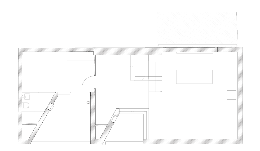 이 외부 공간은 여러 각도로 잘려 다양한 방향의 자연광을 실내로 들이고, 시간대에 따라 달라지는 분위기를 경험할 수 있게 한다. 지붕과 벽 사이의 경계는 정밀한 시공 기술을 통해 매끄럽게 연결됐으며, 건물 외부의 우편함, 난간 등은 금속으로 섬세하게 장식됐다. 실내로 들어가면 깊이감과 높이감을 더한 이중 높이의 천장이 개방감을 주며, 각각의 방은 포근한 느낌을 주는 스케일로 구성됐다. 특히 2층의 사무실과 욕실에 마련된 개구부는 액자처럼 풍경을 담는다.