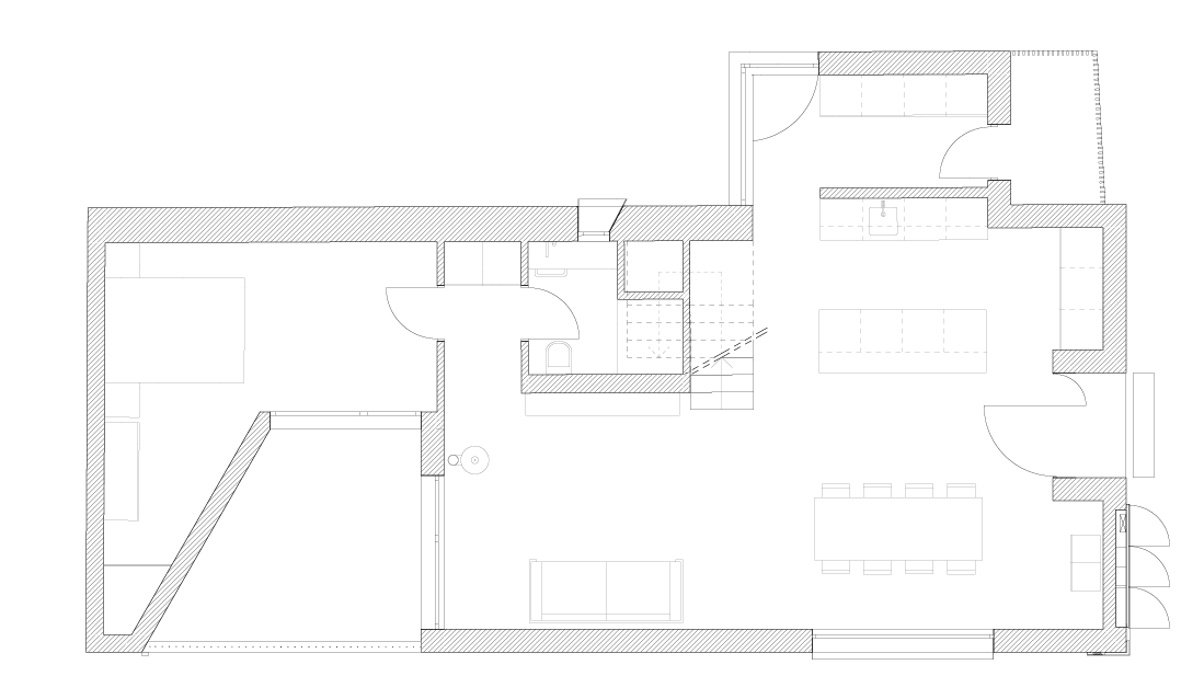 카지냐 다 멜호에이라는 기존의 구조를 일부 보존하여 지어진 주택이다. 옛 주택의 구조적인 형태를 대부분 유지하면서 좁은 대지에서도 활용할 수 있는 다양한 외부 공간을 만들기 위해 매스의 일부를 도려냈다.