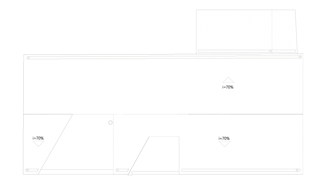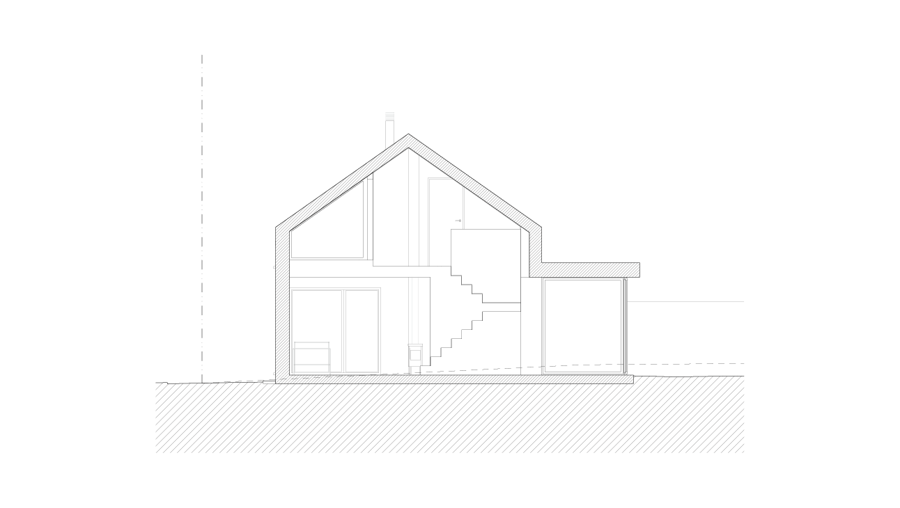 이 외부 공간은 여러 각도로 잘려 다양한 방향의 자연광을 실내로 들이고, 시간대에 따라 달라지는 분위기를 경험할 수 있게 한다. 지붕과 벽 사이의 경계는 정밀한 시공 기술을 통해 매끄럽게 연결됐으며, 건물 외부의 우편함, 난간 등은 금속으로 섬세하게 장식됐다. 실내로 들어가면 깊이감과 높이감을 더한 이중 높이의 천장이 개방감을 주며, 각각의 방은 포근한 느낌을 주는 스케일로 구성됐다. 특히 2층의 사무실과 욕실에 마련된 개구부는 액자처럼 풍경을 담는다.