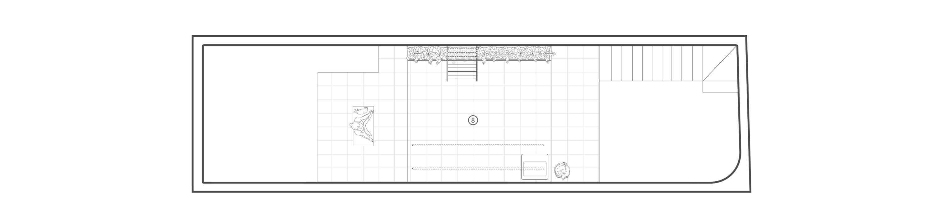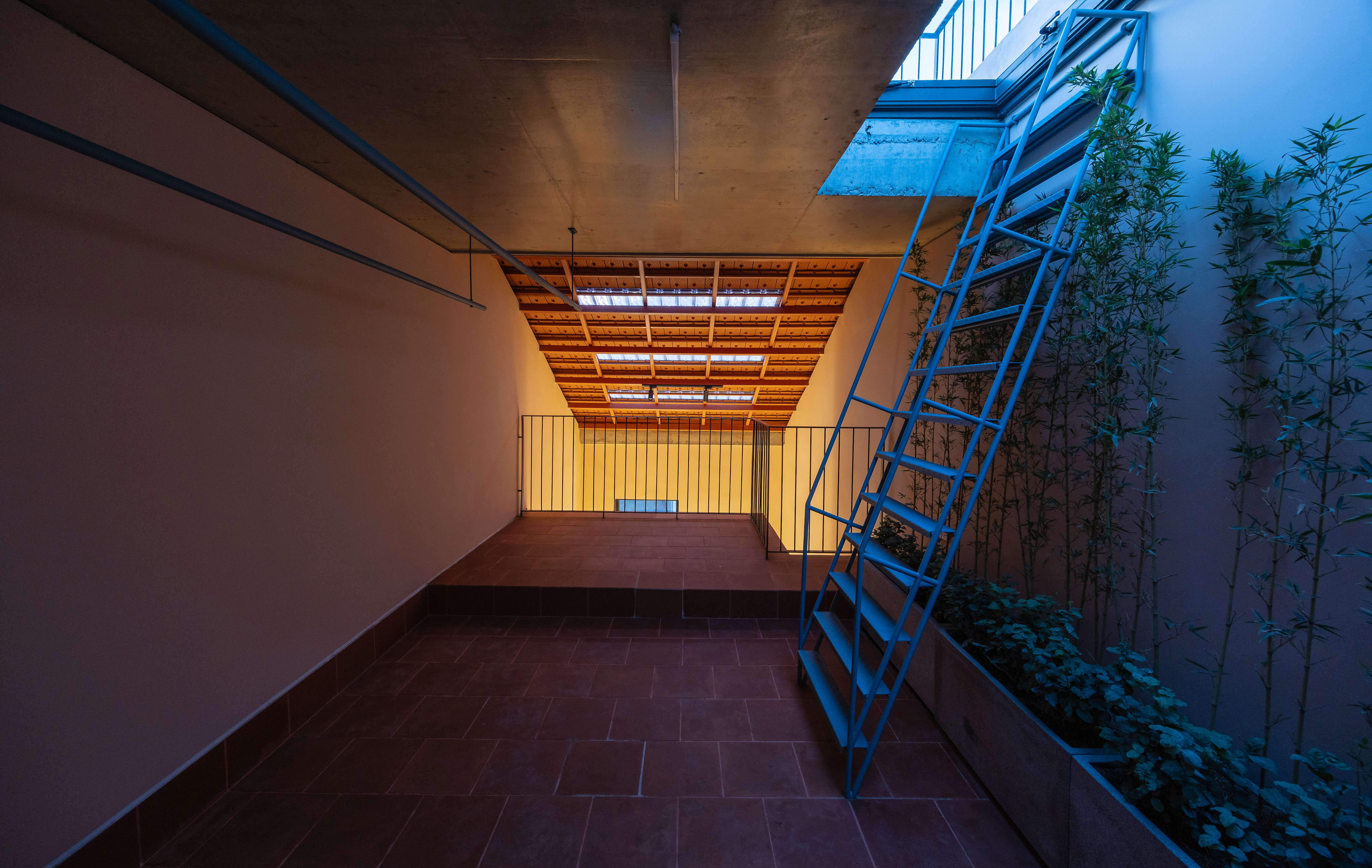 1층은 상업 활동을 위한 개방형 공간으로 설계되어 통풍이 잘 되도록 구성되었다. 비록 대지가 협소하고 전망에 제약이 있으나, 상부의 개방부를 통해 자연광과 바람을 충분히 유입하도록 했다. 건물 외장에는 베트남 전통 건축에서 흔히 사용되는 붉은 점토 타일과 고온 소성 벽돌을 활용해 따뜻하고 아늑한 분위기를 형성하였으며, 이러한 재료는 새롭게 입주한 가족의 삶과 지역의 문화적 정체성을 이어주는 상징적 요소로 기능한다. Quan Nhân 하우스는 한정된 도시 조건 속에서도 전통성과 현대적 실용성을 균형 있게 결합한 주거 건축 사례이다.