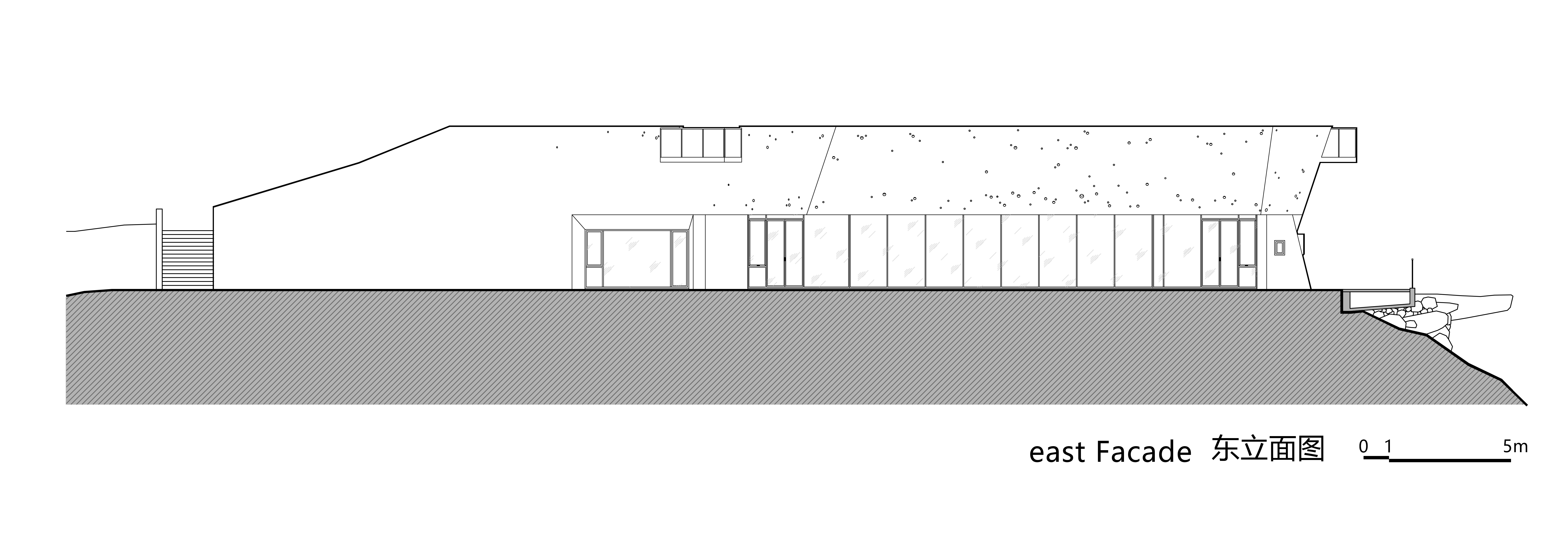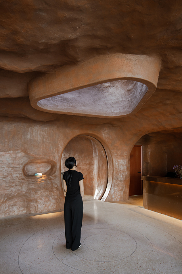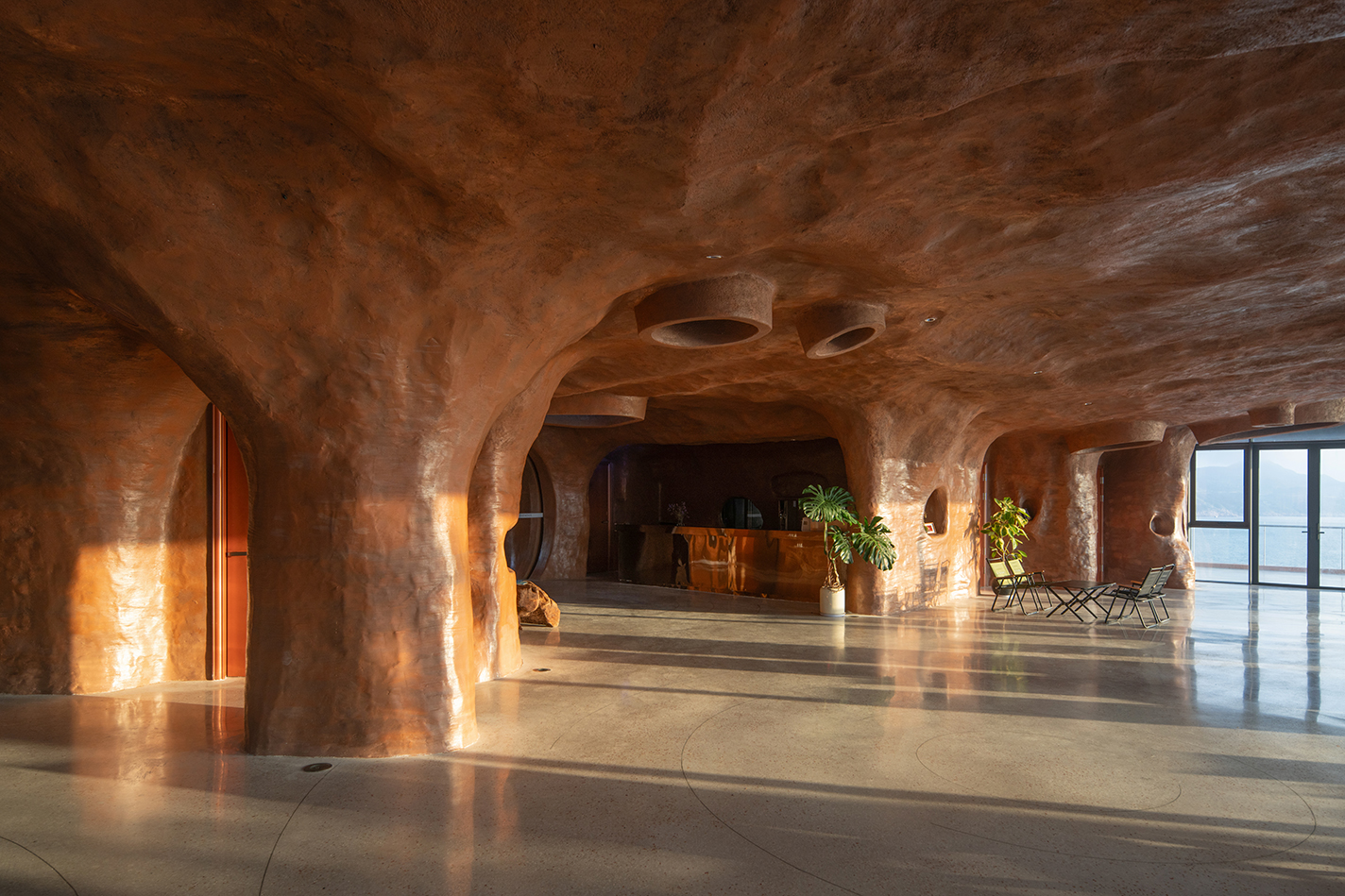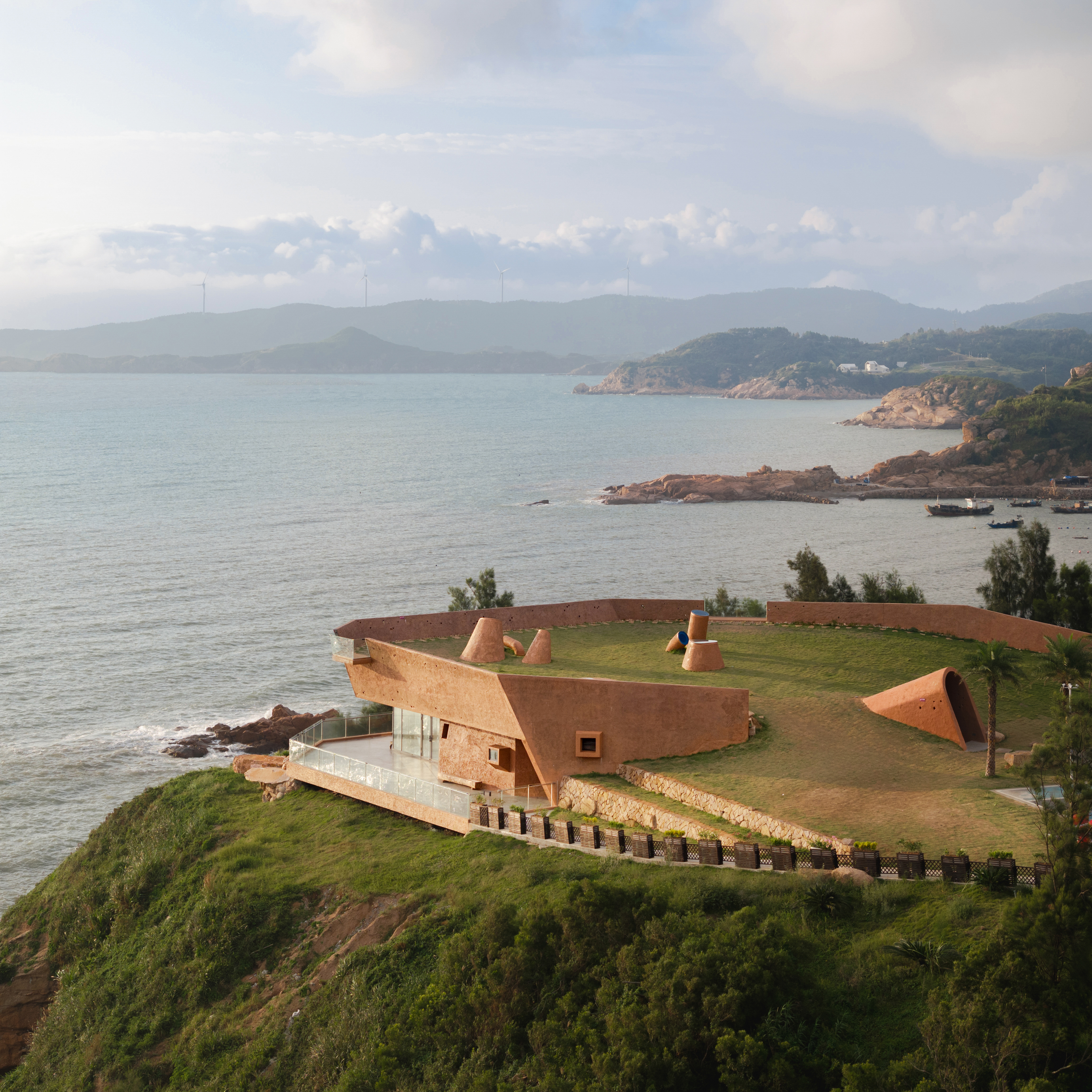 건축가는 ‘절벽성, 은신성, 통합성’을 핵심 원칙으로 삼고, 대지에 최대한 숨겨진 유기적 구조를 통해 건축물이 땅에서 솟아오른 듯한 인상을 구현했다. 건물은 대부분 지하에 위치하며, 식재가 심겨진 지붕은 열 부하를 줄이고 옥상 전망대 역할을 한다. 내부는 입구홀, 메인 공간, 물류 공간으로 구성되며, 살롱과 갤러리는 바다를 향한 전면 유리 파사드를 통해 탁 트인 조망을 제공한다.