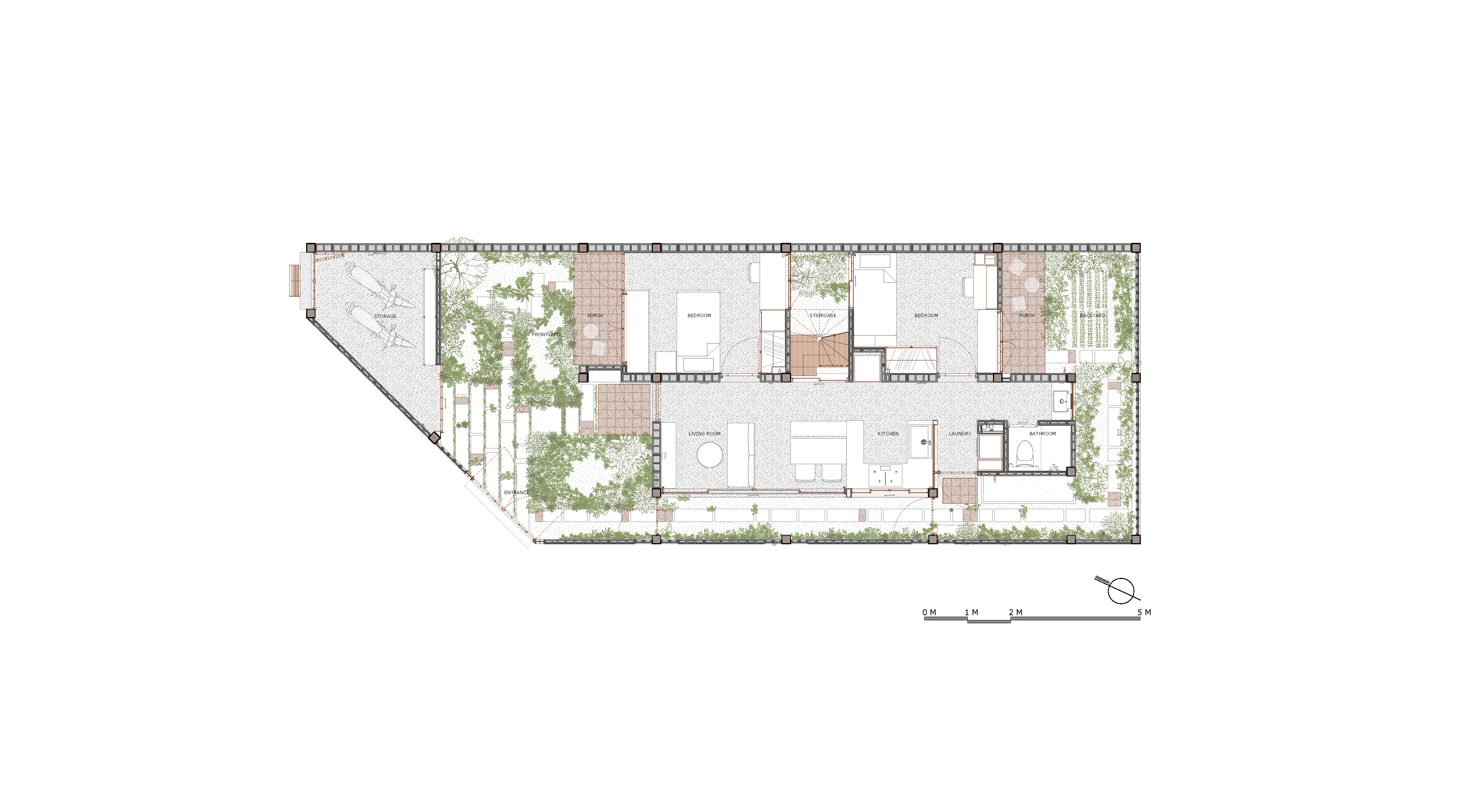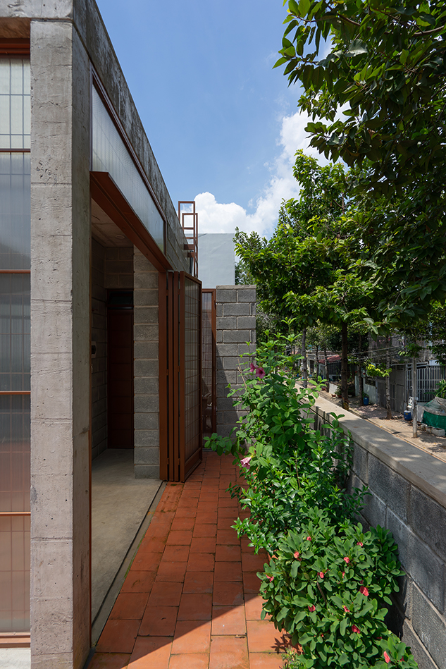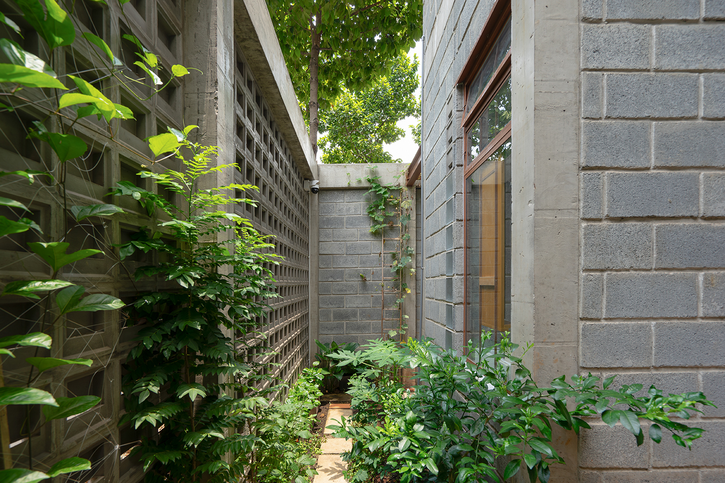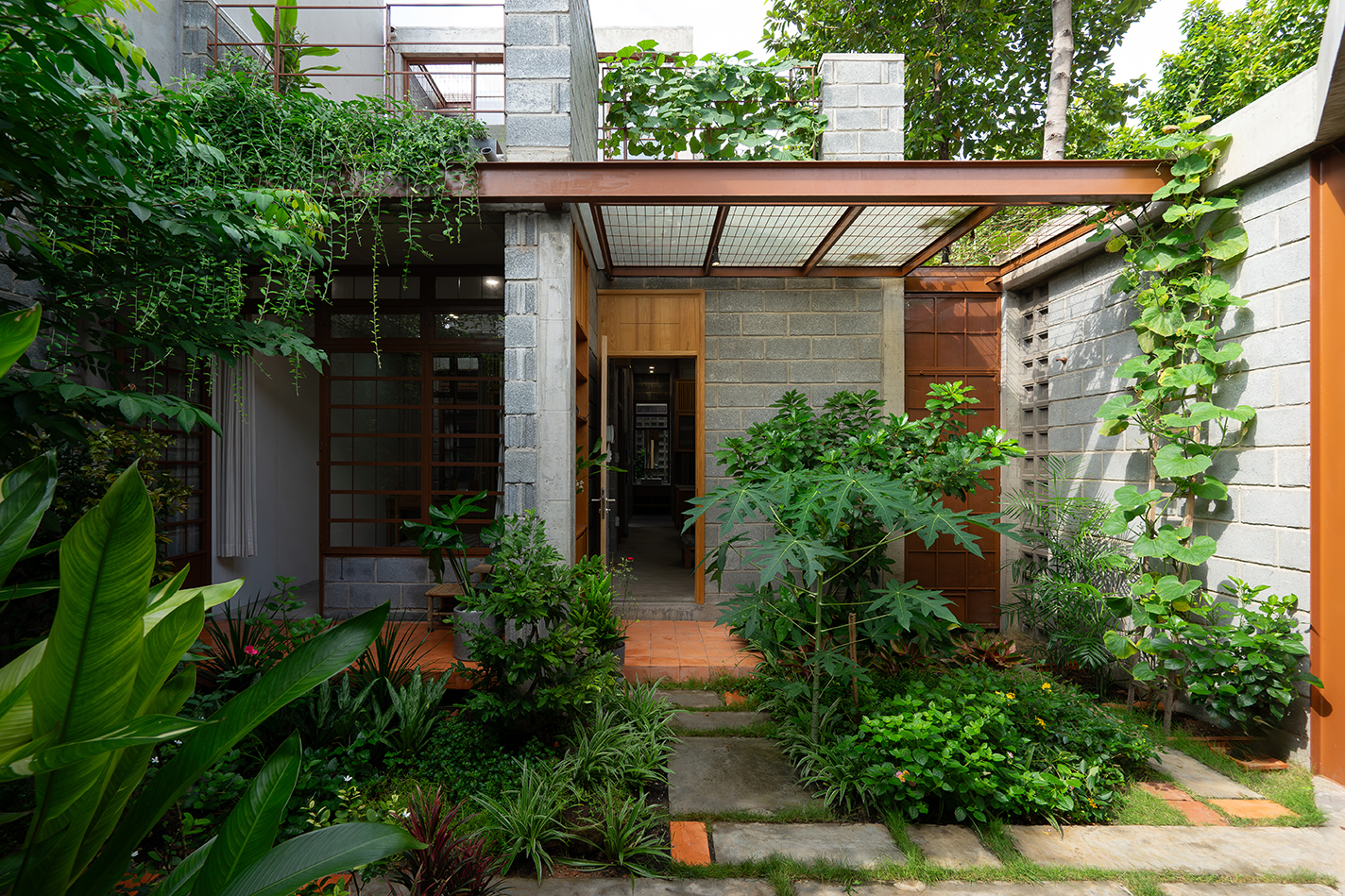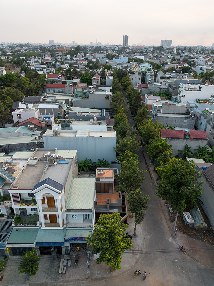 빈즈엉 하우스는 베트남 빈즈엉의 산업지대 인근 주거 지역에 위치한 소규모 단독주택으로, 거주와 원격 근무를 모두 수용하도록 설계되었다. 건축가는 단순함, 충분함, 소박함, 자연과의 조화를 핵심 개념으로 삼고, 채식과 명상을 일상으로 삼는 가족의 삶에 맞춰 평온한 공간을 구성했다.