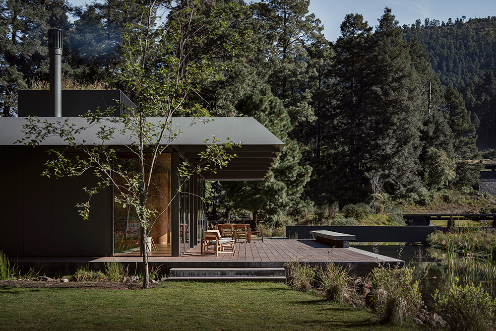 Pabellón de la Reserva는 멕시코시티 인근 산타페 보호구역에 위치한 건축물로, 자연과 긴밀히 연결된 삶의 방식을 제안한다. 차가운 기후와 호수, 숲이 어우러진 환경 속에서 건축가는 자연의 질서와 조화를 공간 속에 구현하고자 했다.