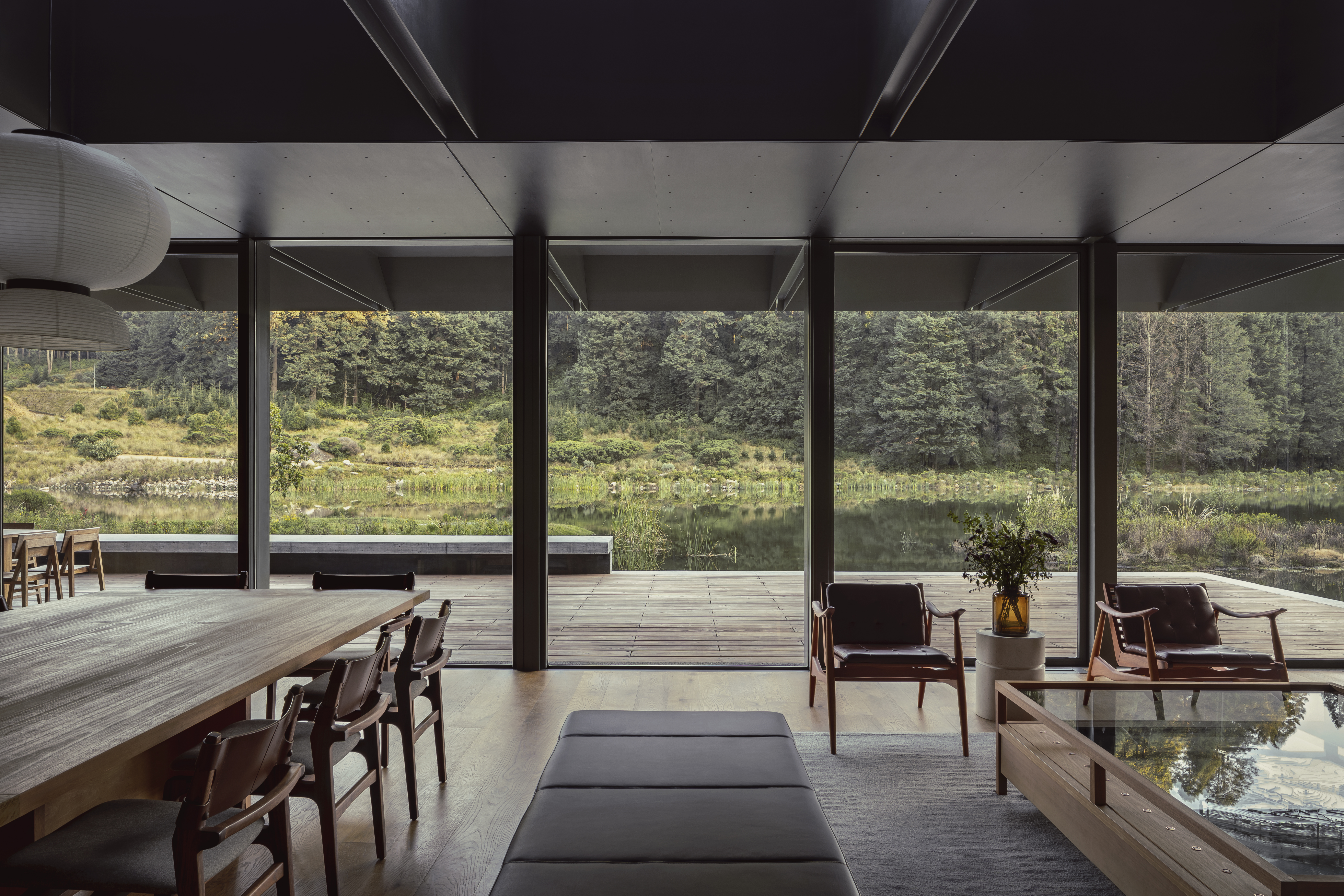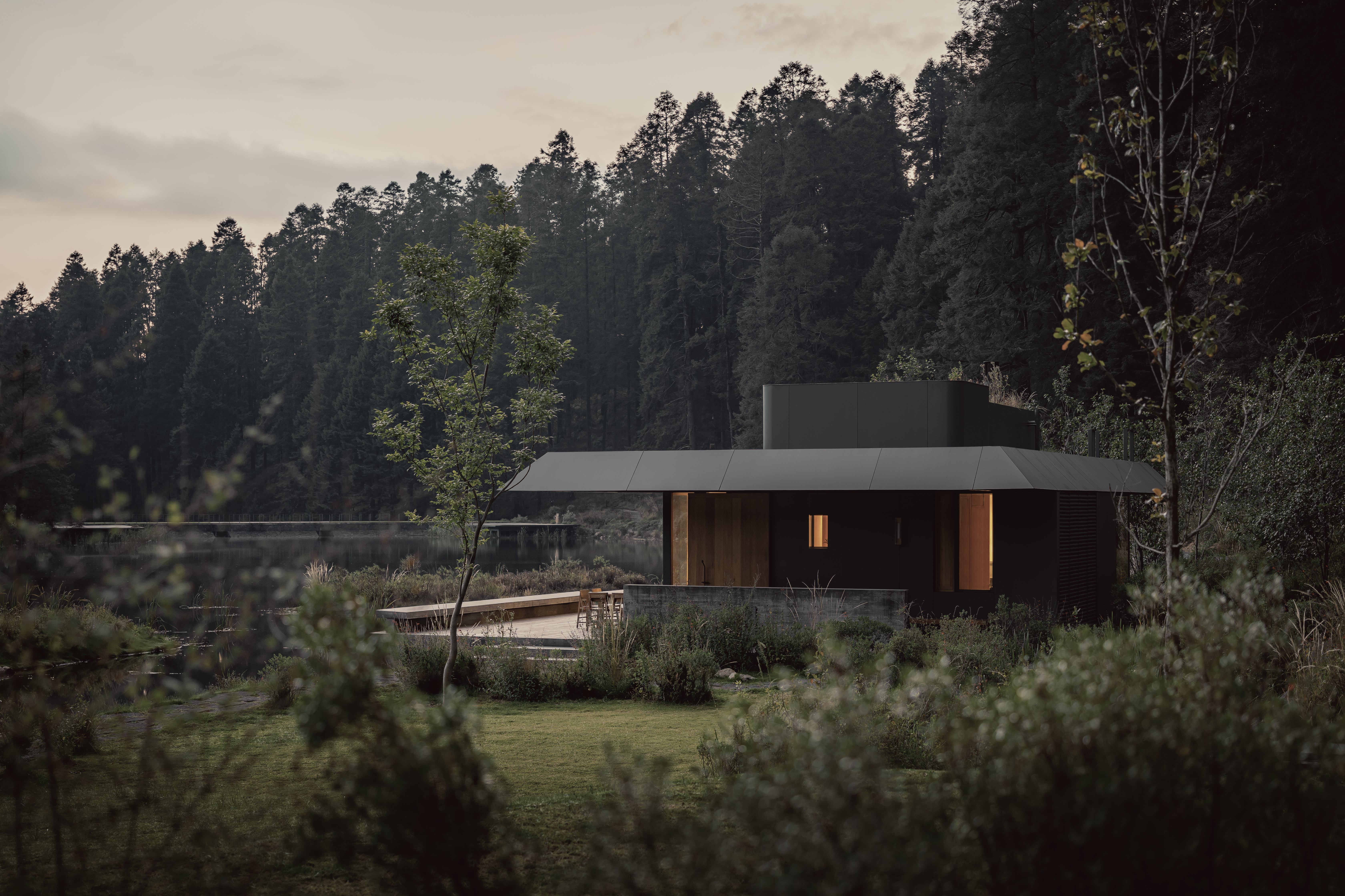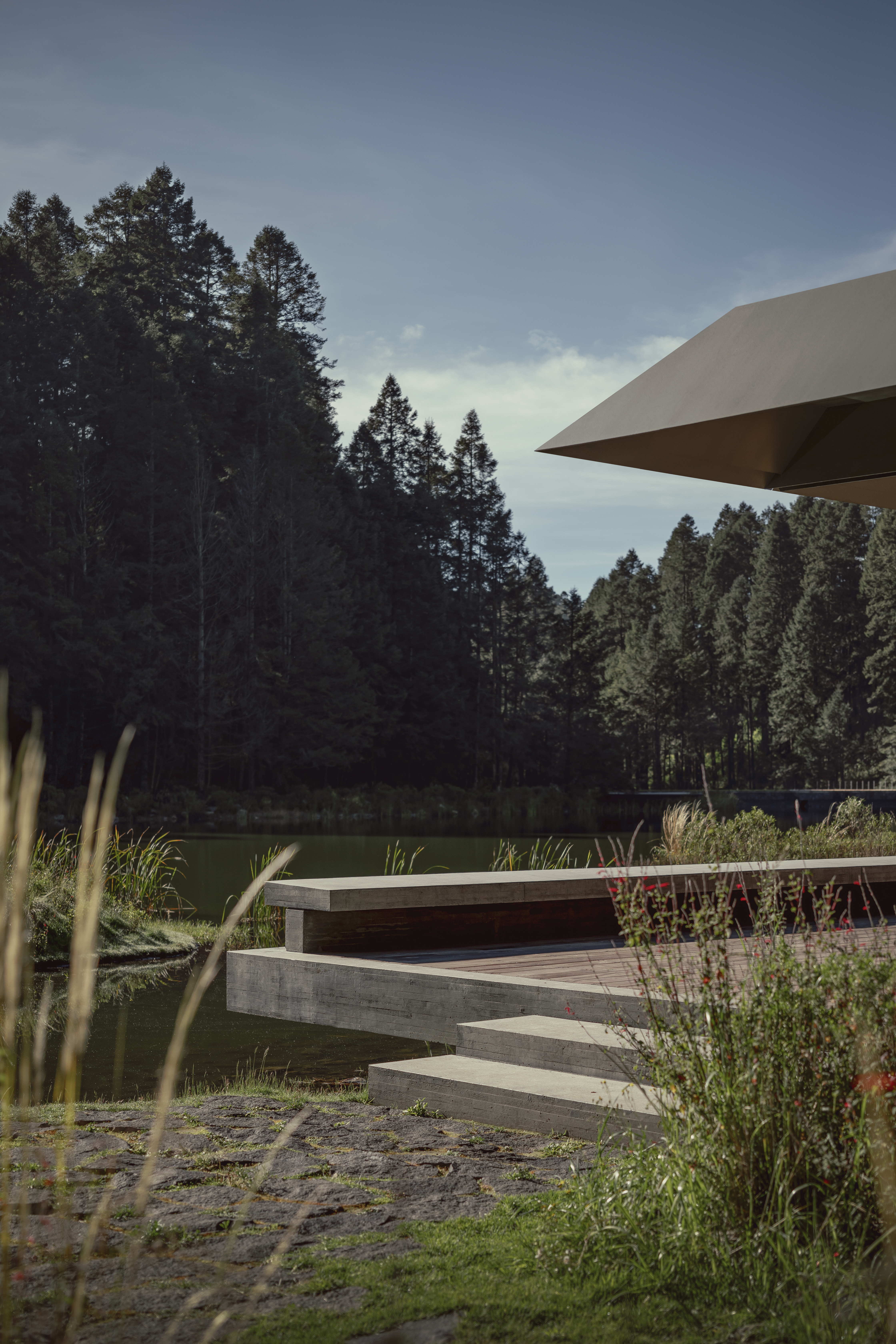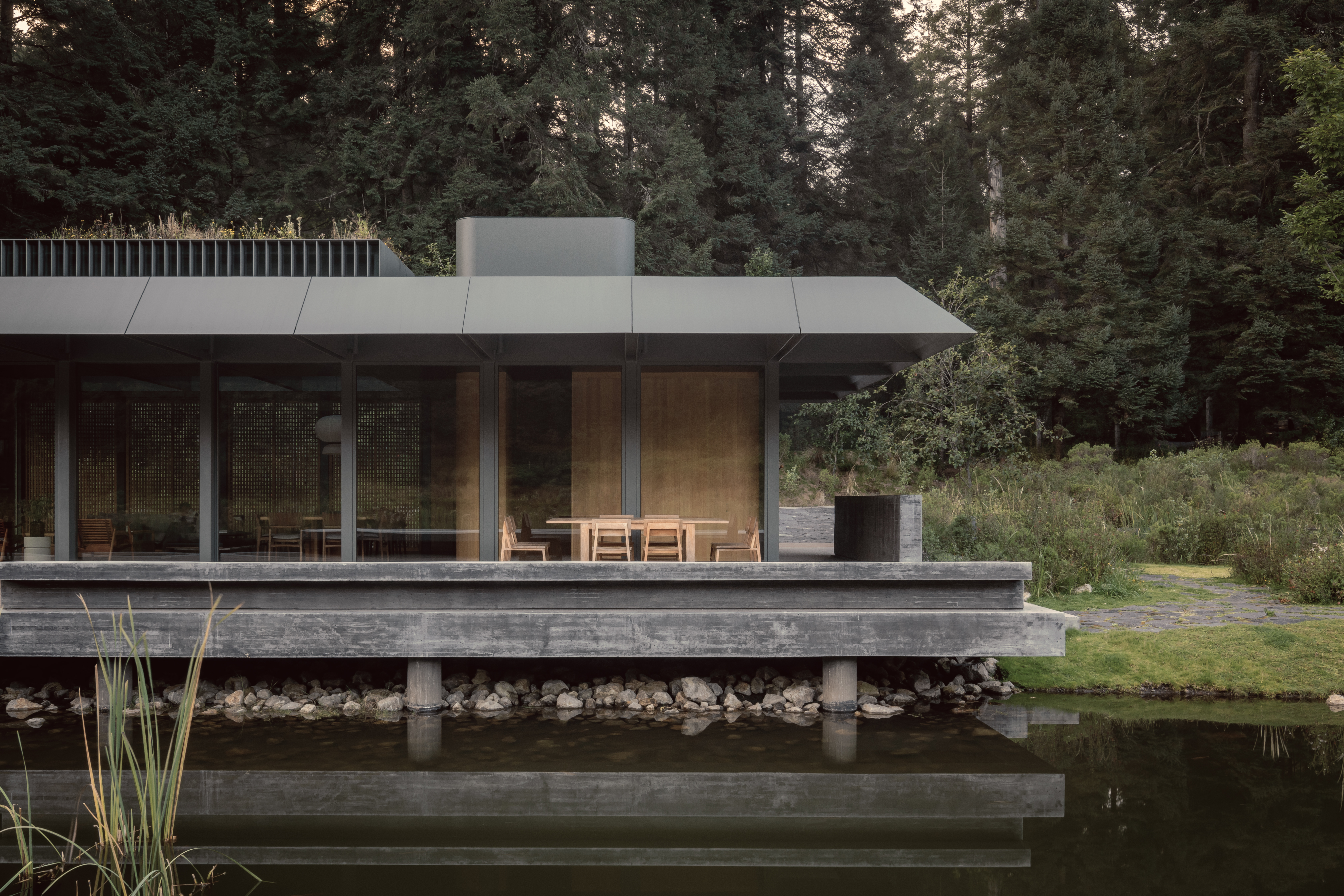 Pabellón de la Reserva는 멕시코시티 인근 산타페 보호구역에 위치한 건축물로, 자연과 긴밀히 연결된 삶의 방식을 제안한다. 차가운 기후와 호수, 숲이 어우러진 환경 속에서 건축가는 자연의 질서와 조화를 공간 속에 구현하고자 했다.
