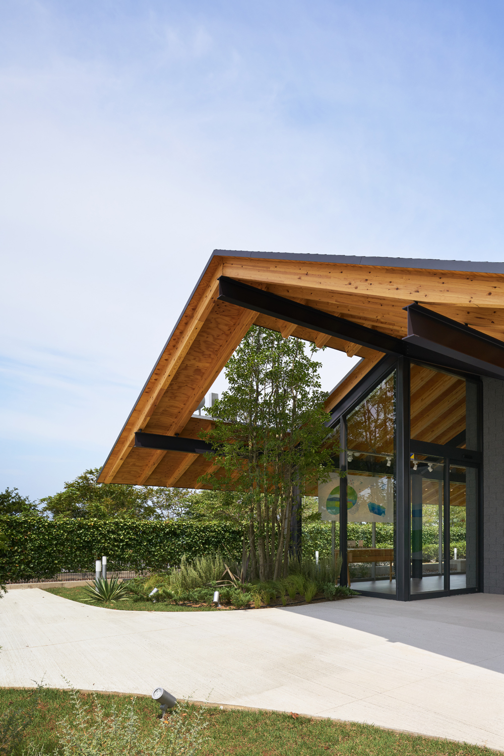 건축가는 비와호의 자연환경을 반영하여 대규모의 매장을 긴 지붕으로 덮었다. 큰 지붕을 지닌 건물은 공원의 정자와 같은 쉼터를 연상시키며, 심플한 박공지붕은 매장의 통풍을 원활하게 한다. 건축물은 투명성을 높이기 위해 철골과 창호 프레임을 사용하여 고정 모듈에 맞춰 지어졌다.